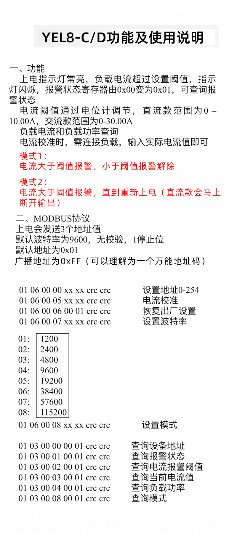 YEL8-A (определить постоянный ток); YEL8-B Обнаружение переменного тока (источник питания 12 В); YEL8-B Обнаружение переменного тока (источник питания 24 В); YEL8-C Обнаружение DC 7-27V (серийная версия 232); YEL8-C Обнаружение постоянного тока (7-27 В) (серийная версия 485); YEL8-D Обнаружение 220 В переменного тока (источник питания 12 В) (версия с последовательным портом 232); YEL8-D Обнаружение (220 В переменного тока) Источник питания 12 В (последовательная версия 485); YEL8-D Обнаружение AC AC220v (источник питания 24 В/последовательный порт 232; YEL8-D Обнаружение AC (AC220V) Источник питания 24V (серийная версия 485)