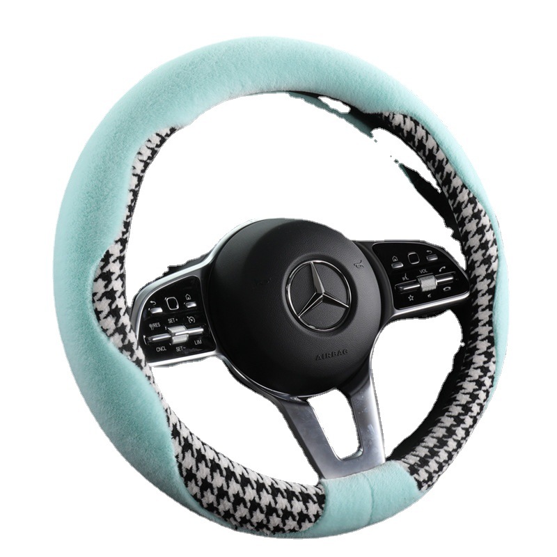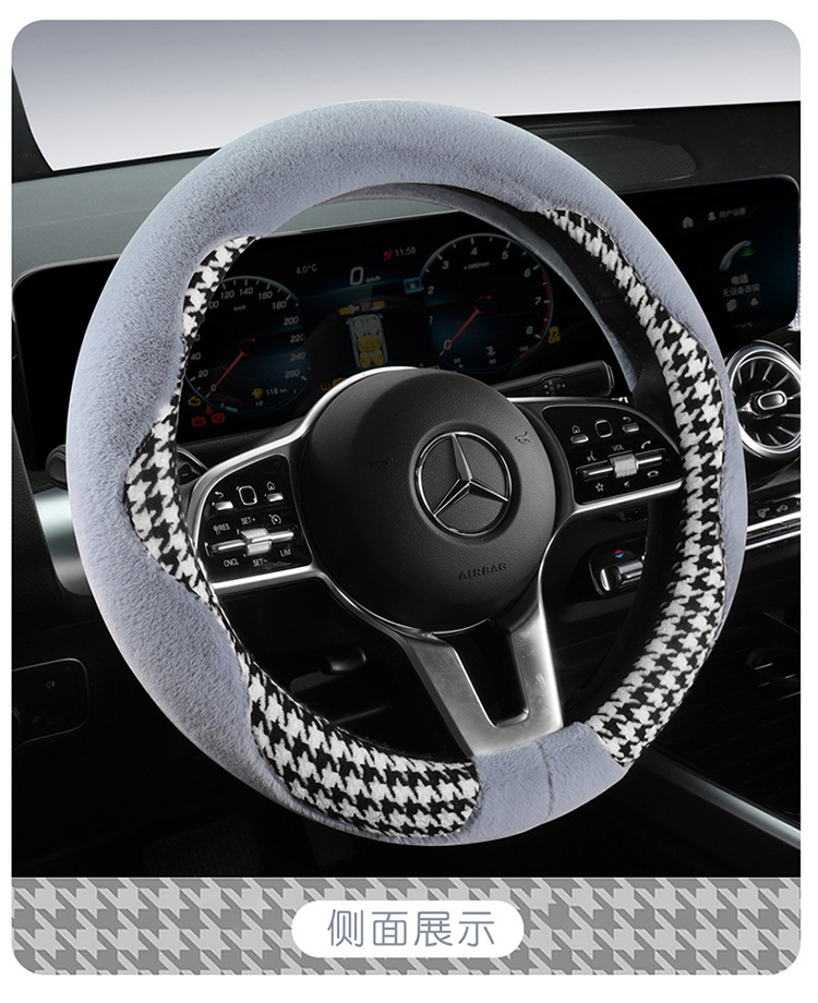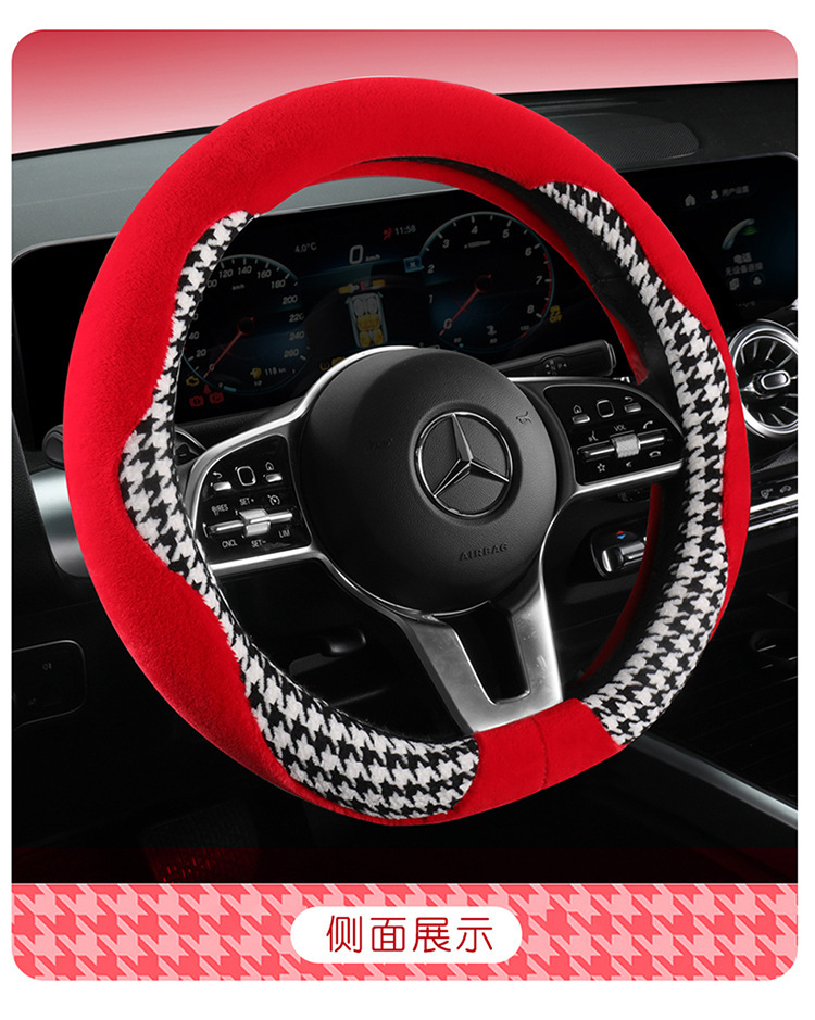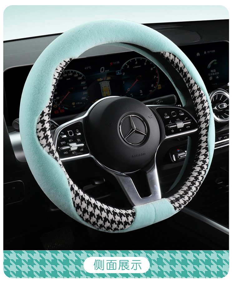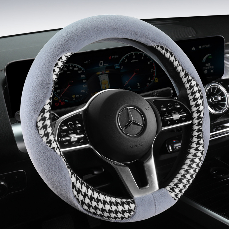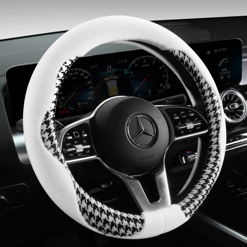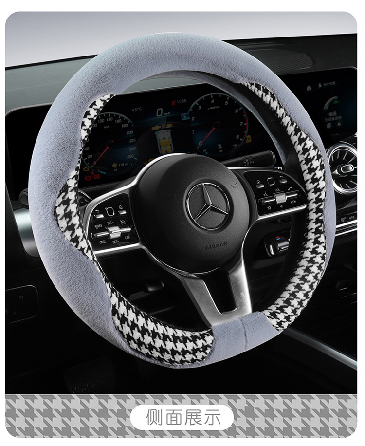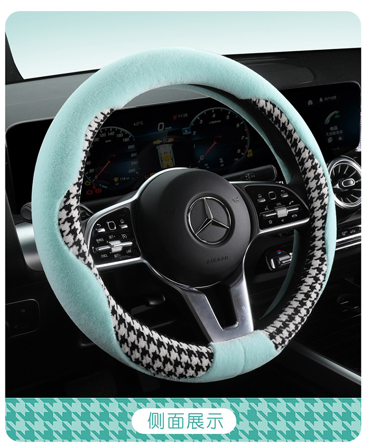 Чехол на руль автомобиля, женский зимний плюшевый нескользящий Модный чехол для ручки автомобиля в ломаную клетку, зимние теплые аксессуары для интерьера