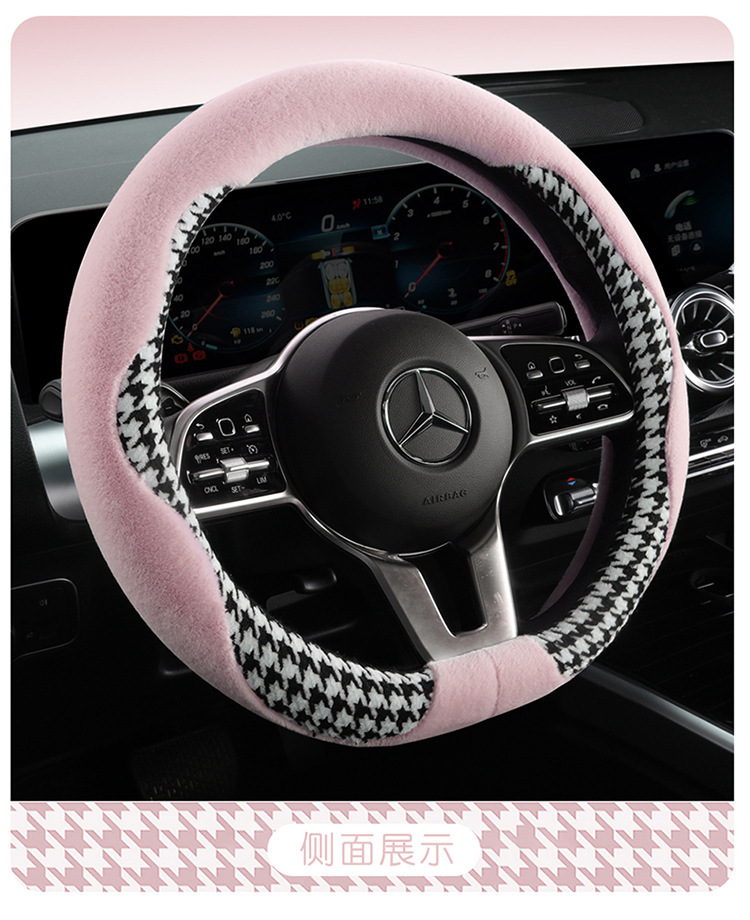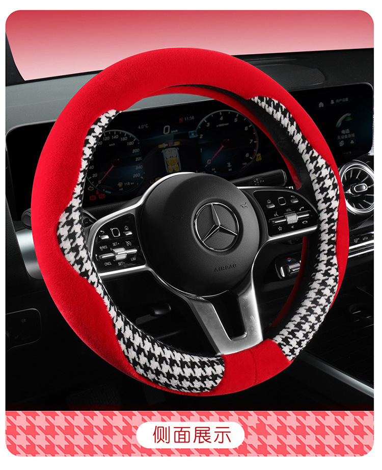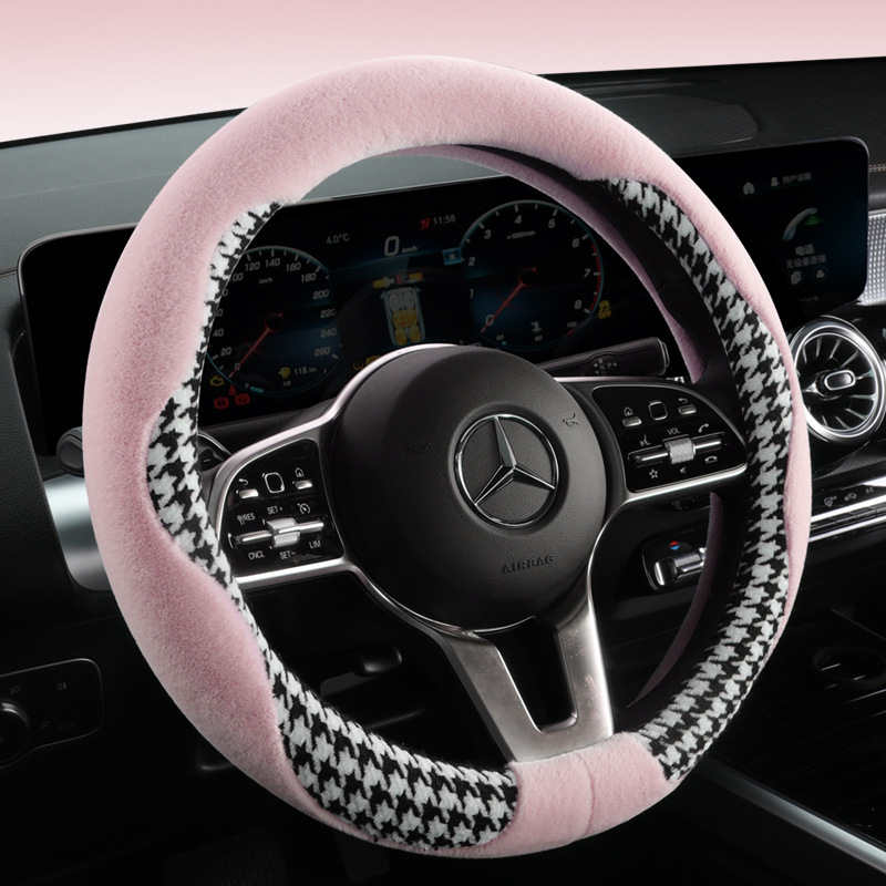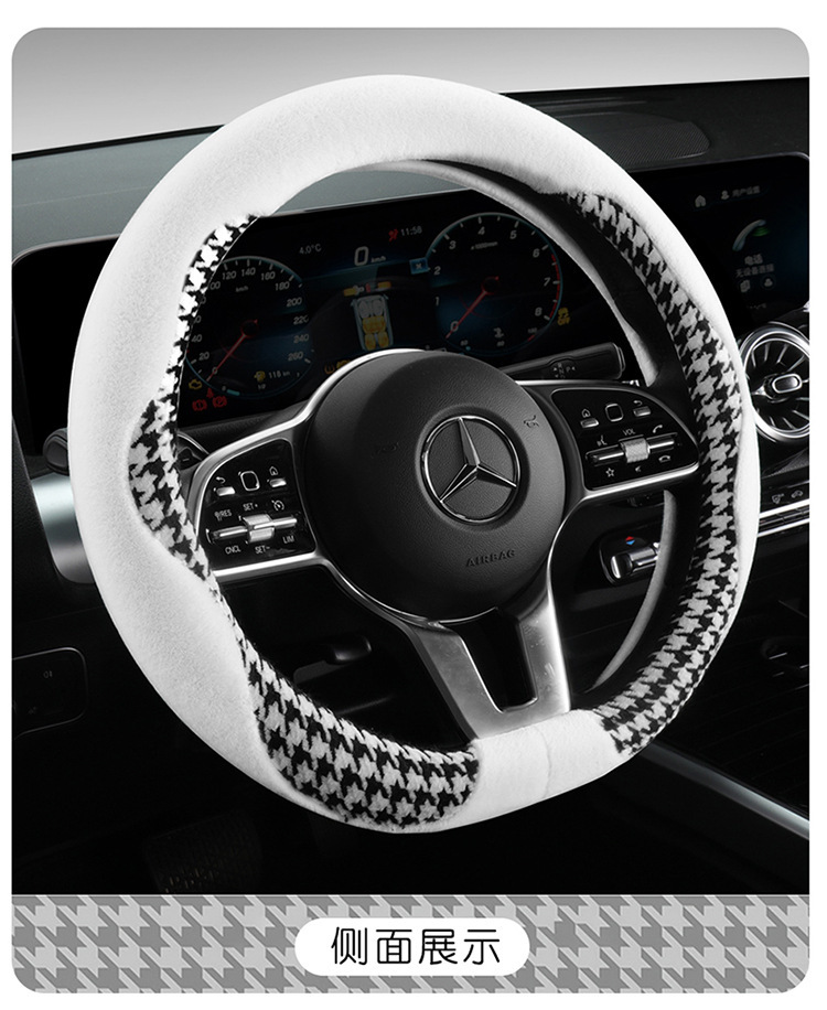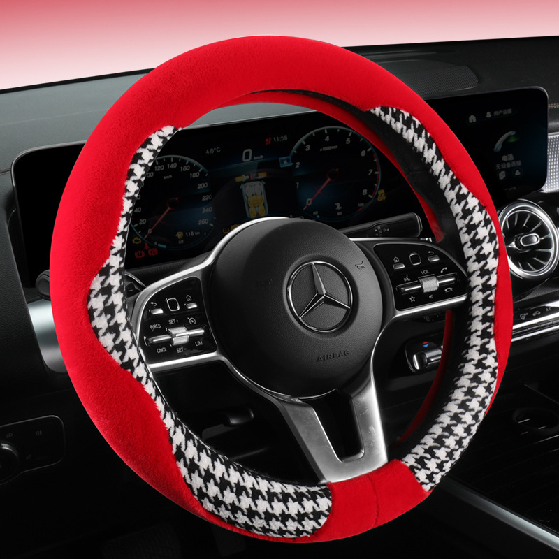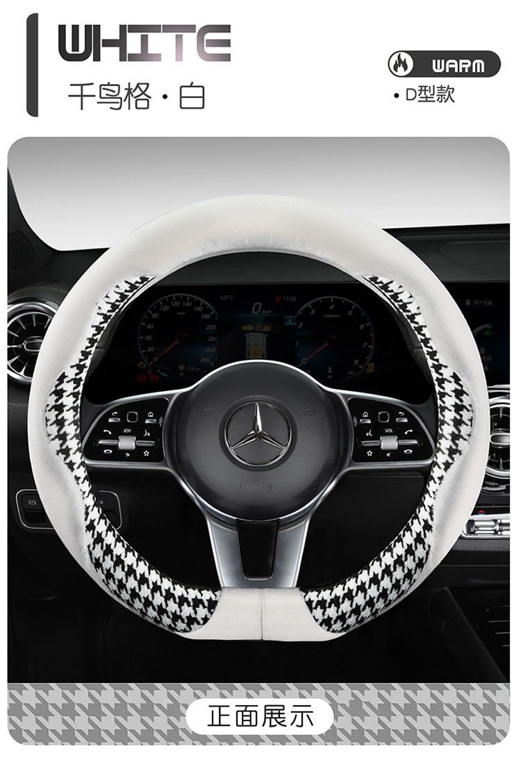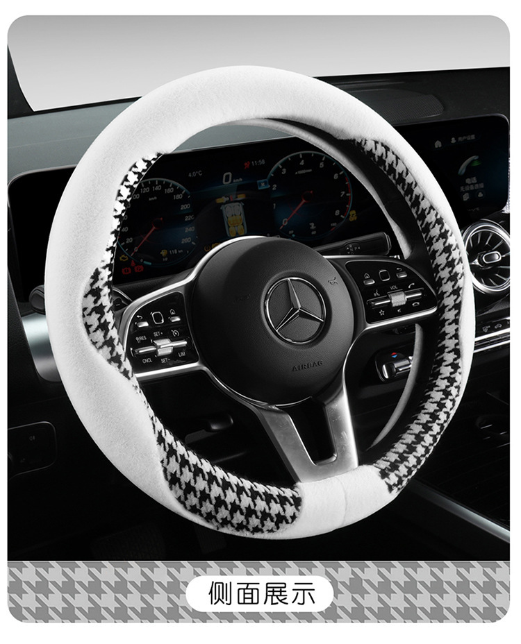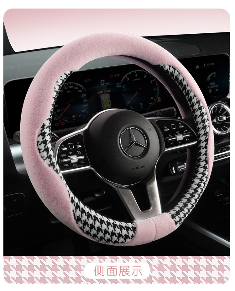 Чехол на руль автомобиля, женский зимний плюшевый нескользящий Модный чехол для ручки автомобиля в ломаную клетку, зимние теплые аксессуары для интерьера