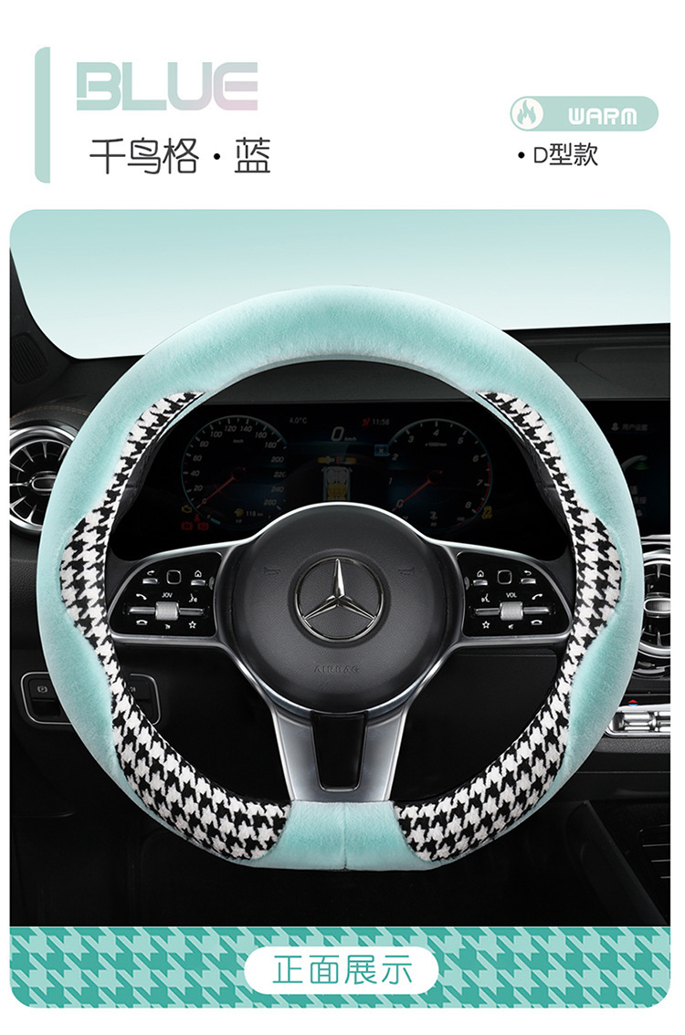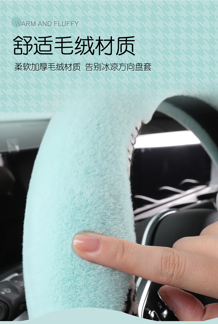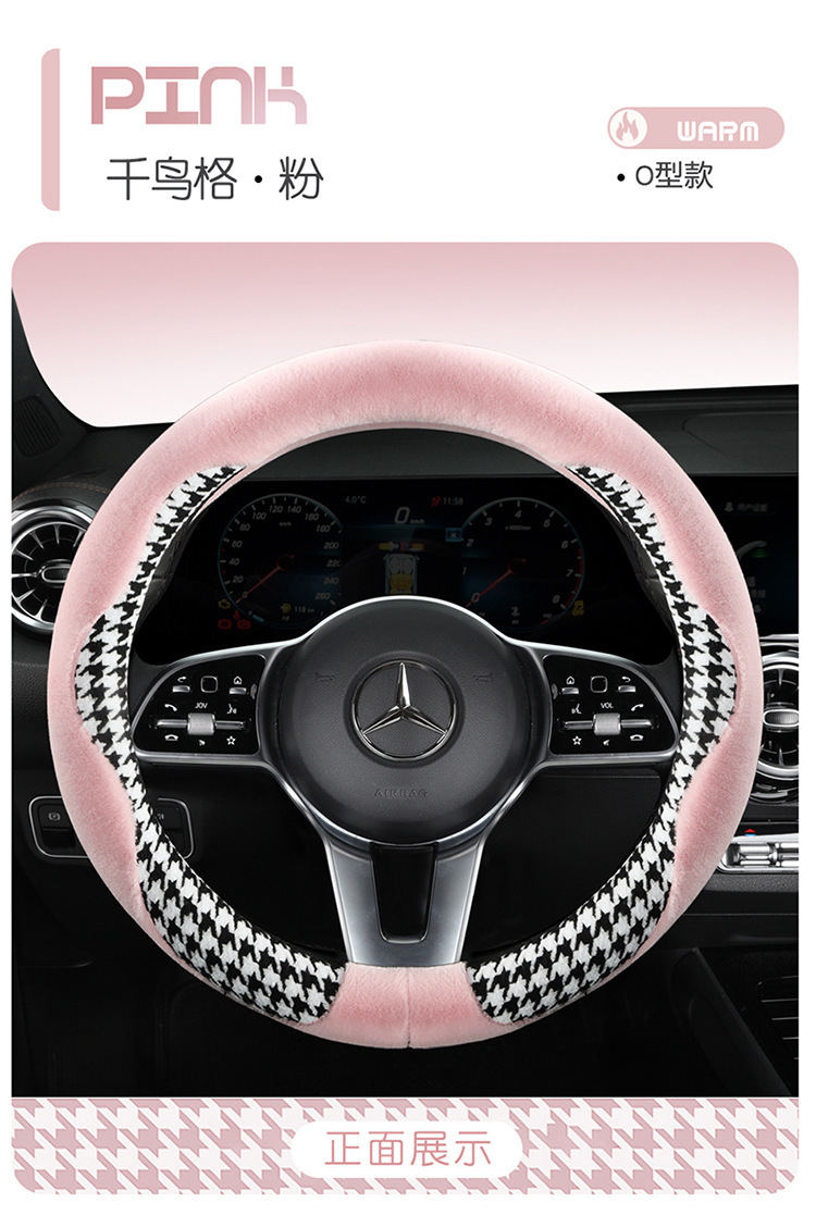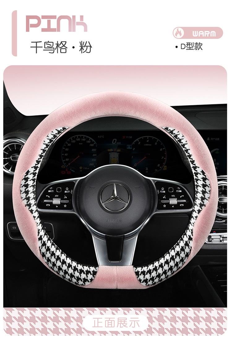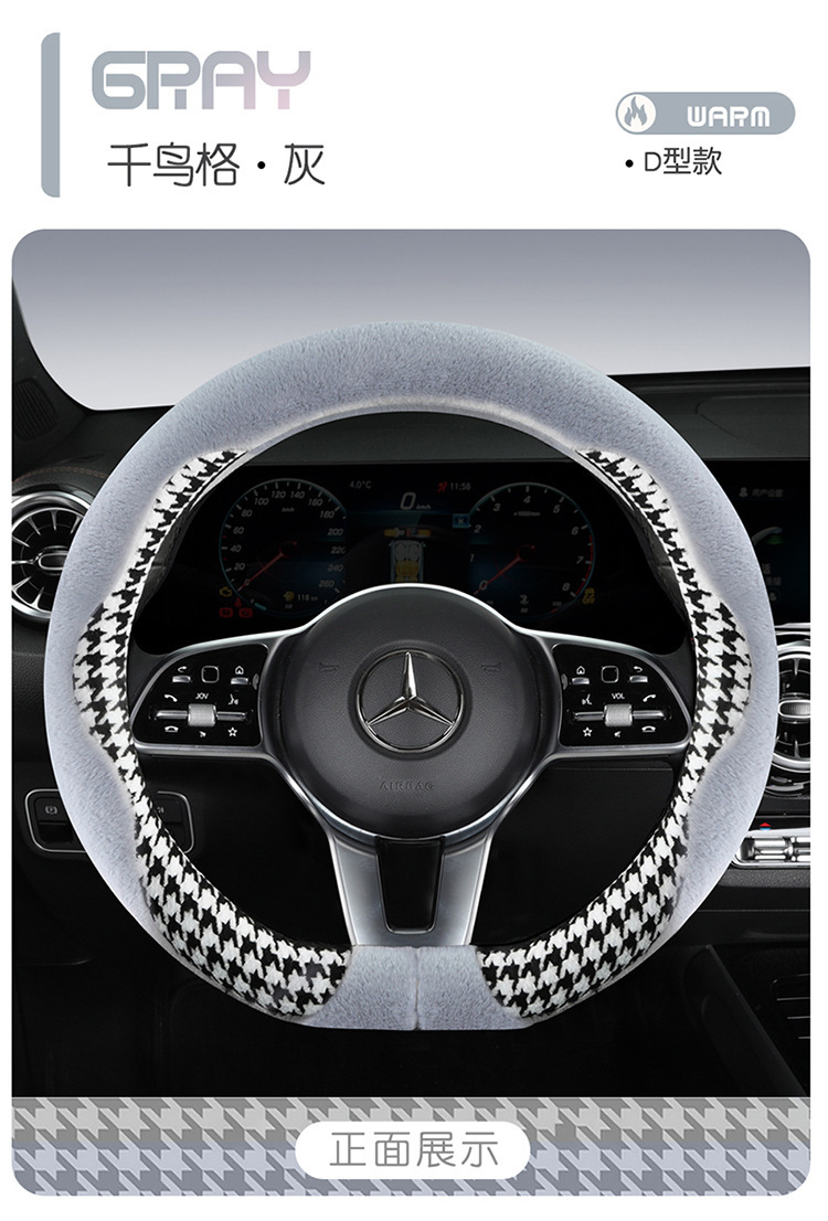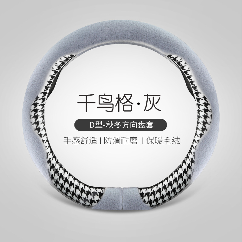 Чехол на руль автомобиля, женский зимний плюшевый нескользящий Модный чехол для ручки автомобиля в ломаную клетку, зимние теплые аксессуары для интерьера
