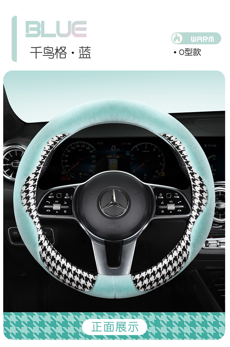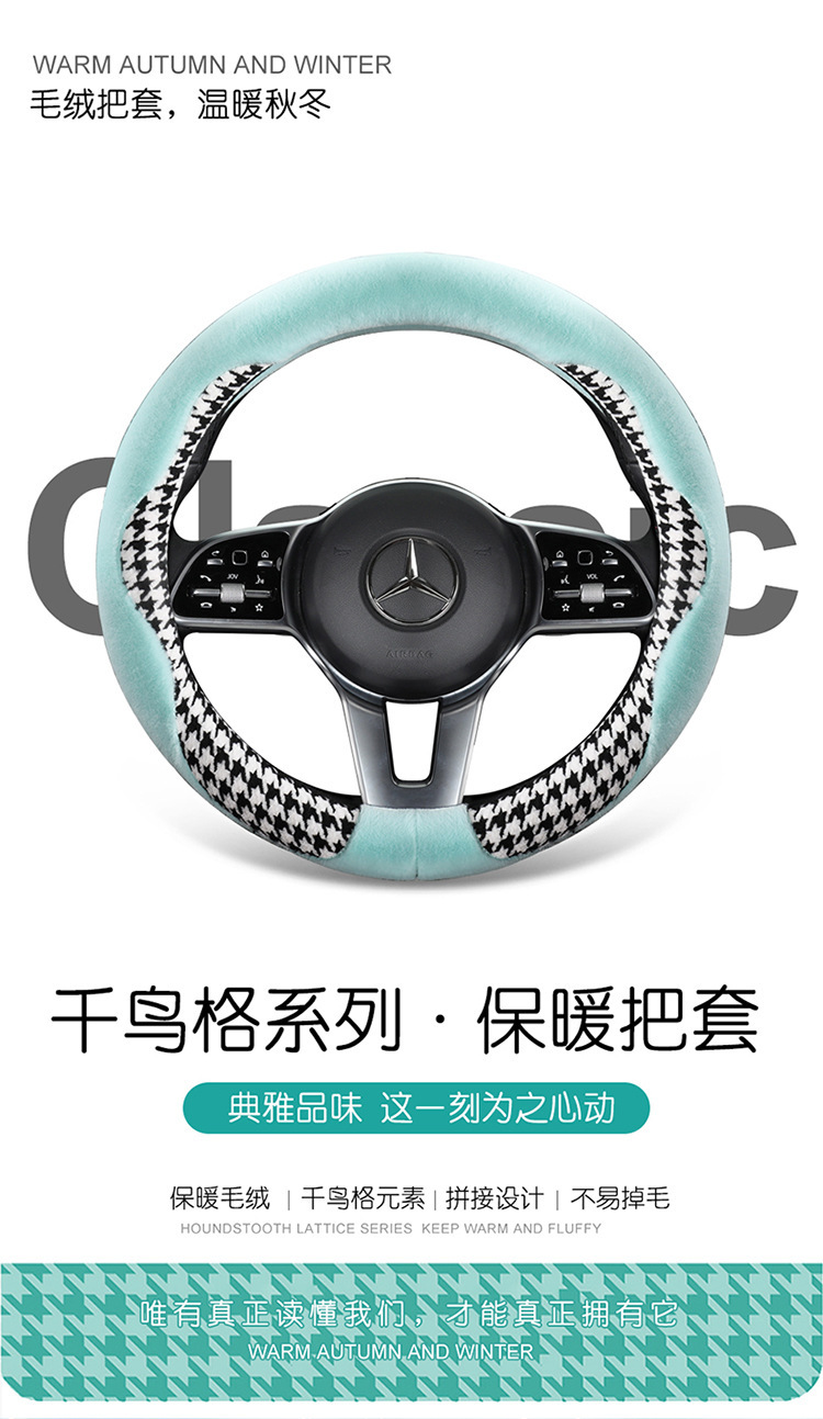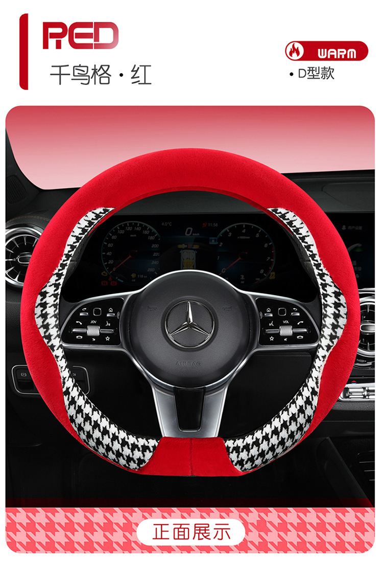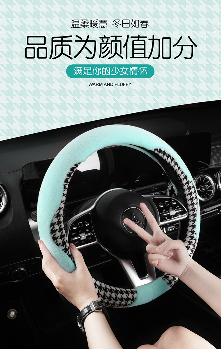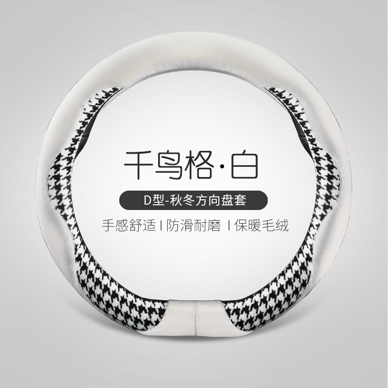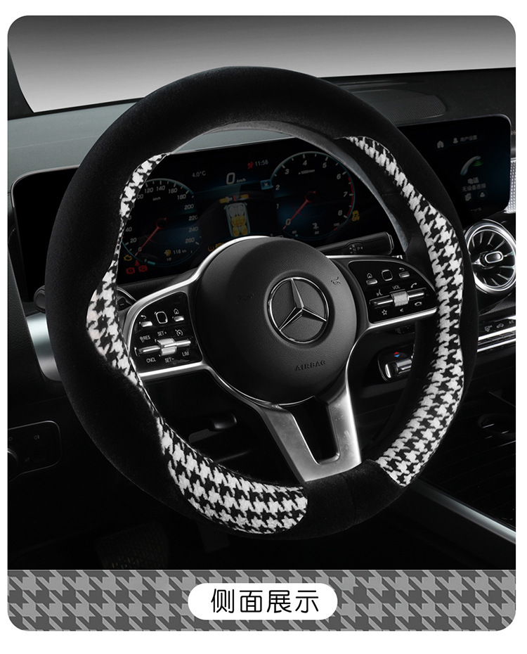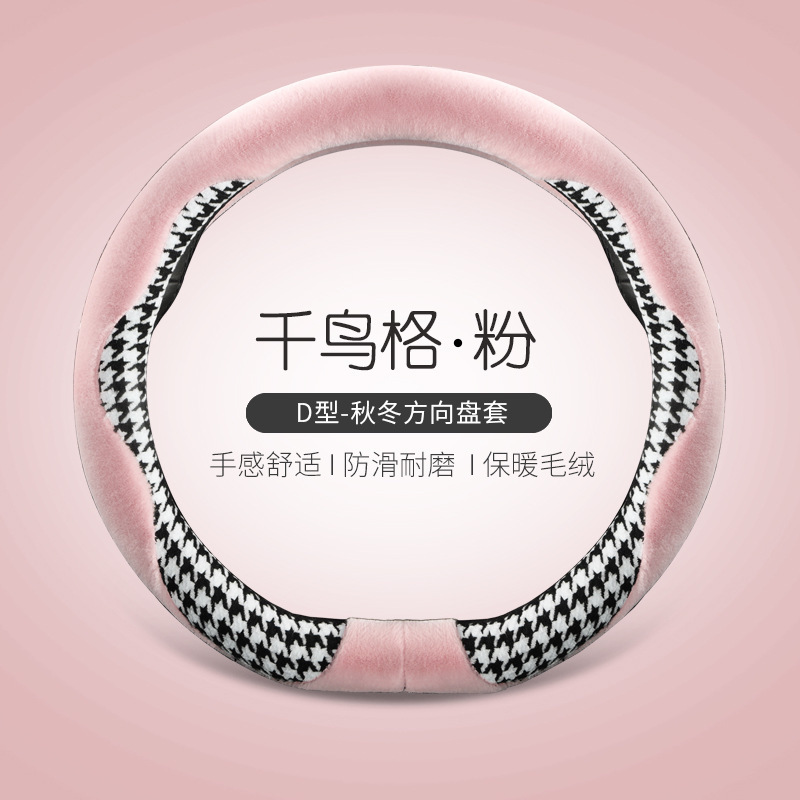 Чехол на руль автомобиля, женский зимний плюшевый нескользящий Модный чехол для ручки автомобиля в ломаную клетку, зимние теплые аксессуары для интерьера
