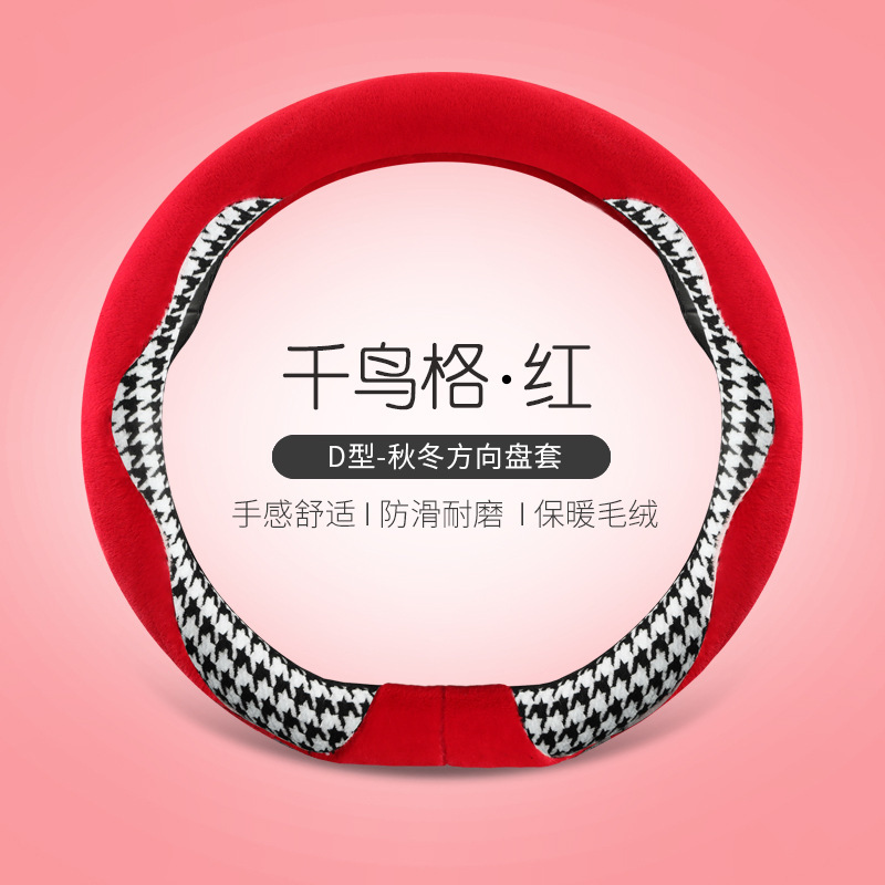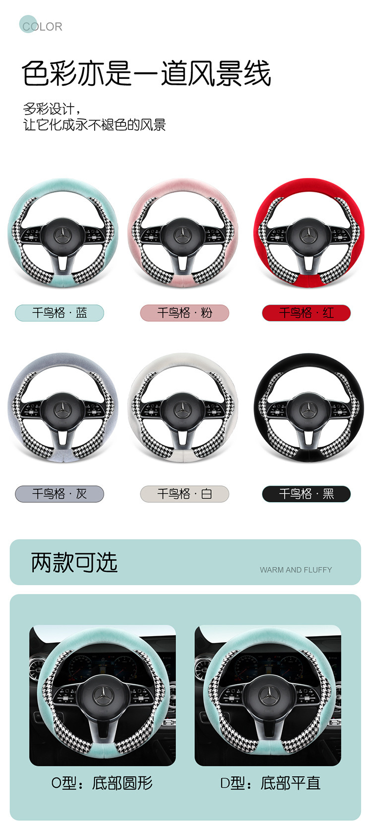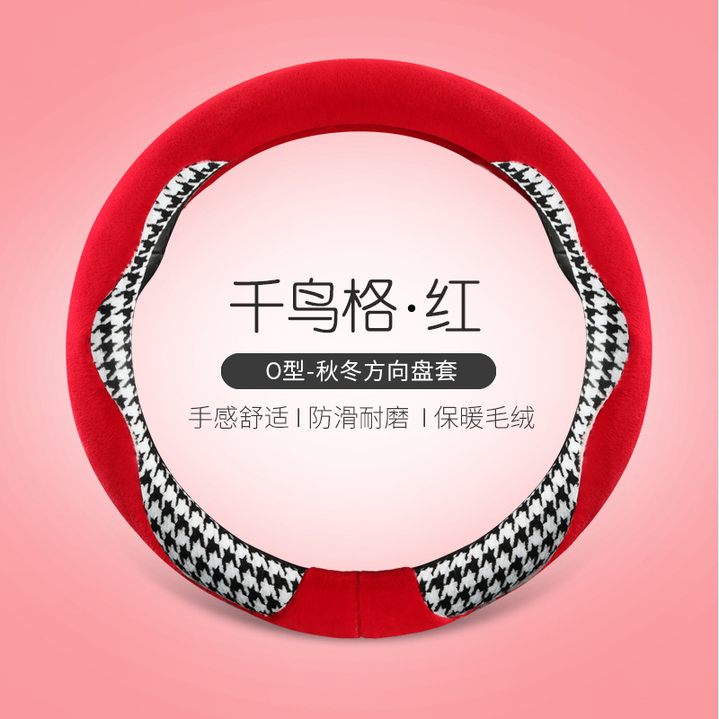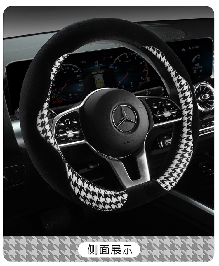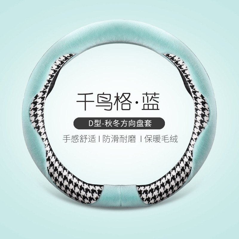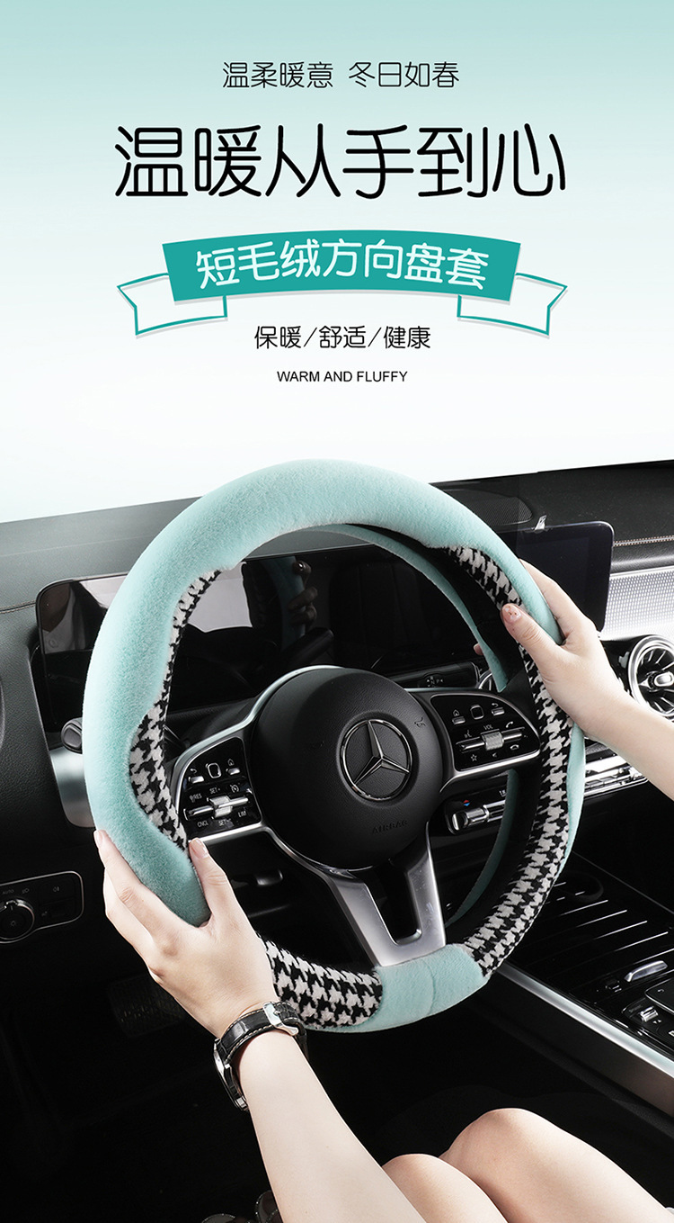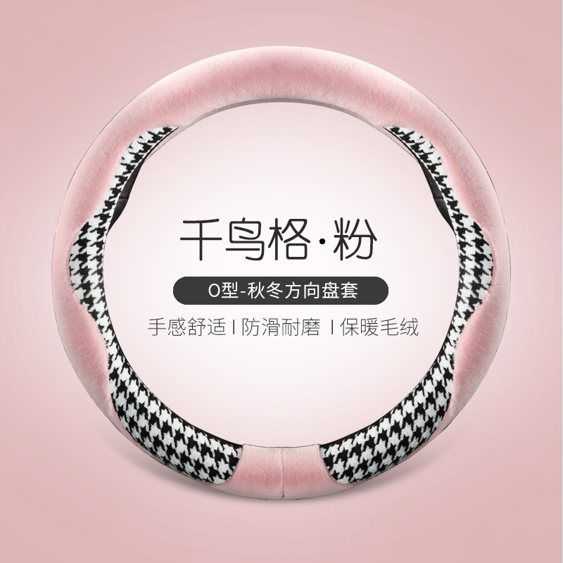 Чехол на руль автомобиля, женский зимний плюшевый нескользящий Модный чехол для ручки автомобиля в ломаную клетку, зимние теплые аксессуары для интерьера