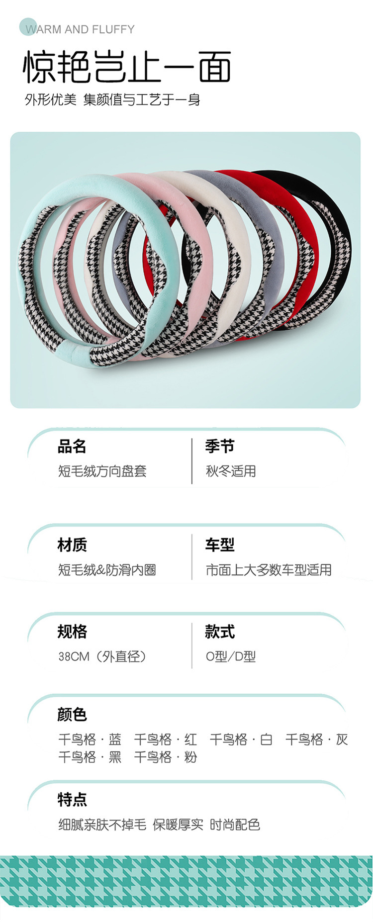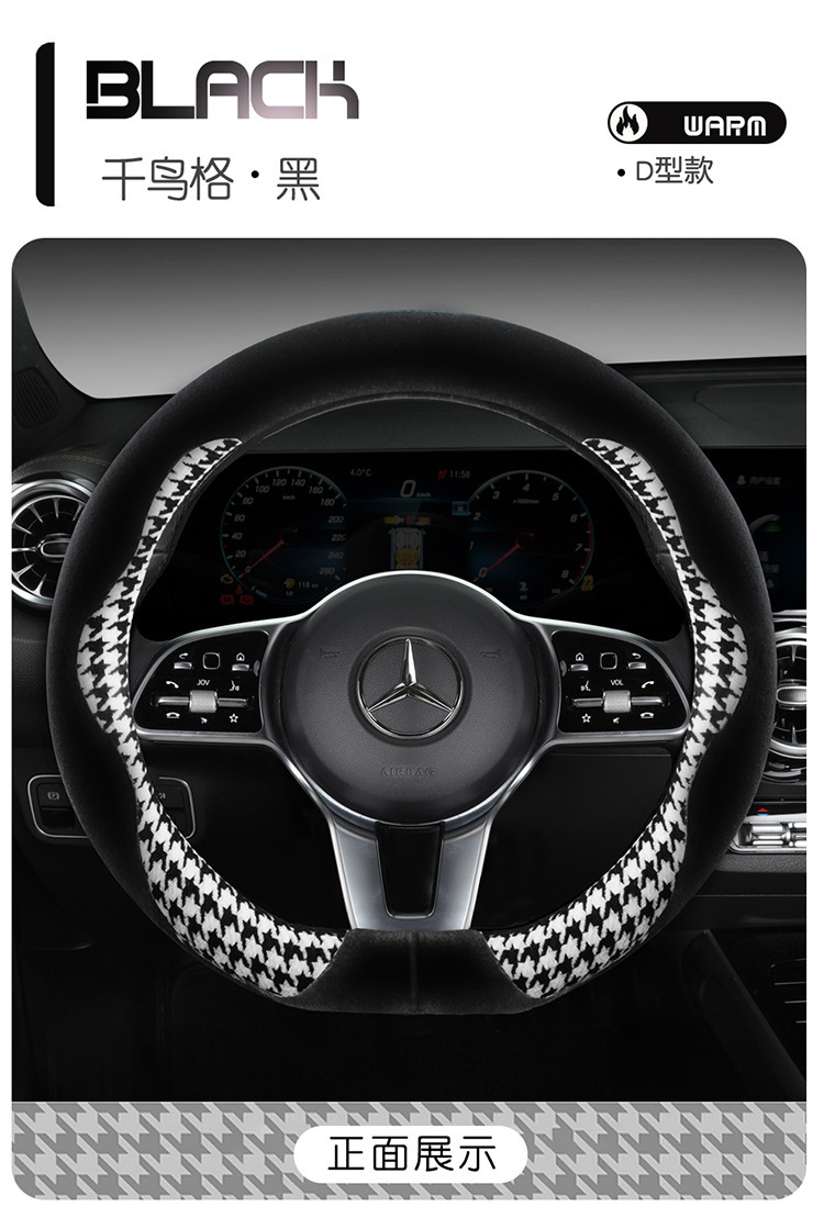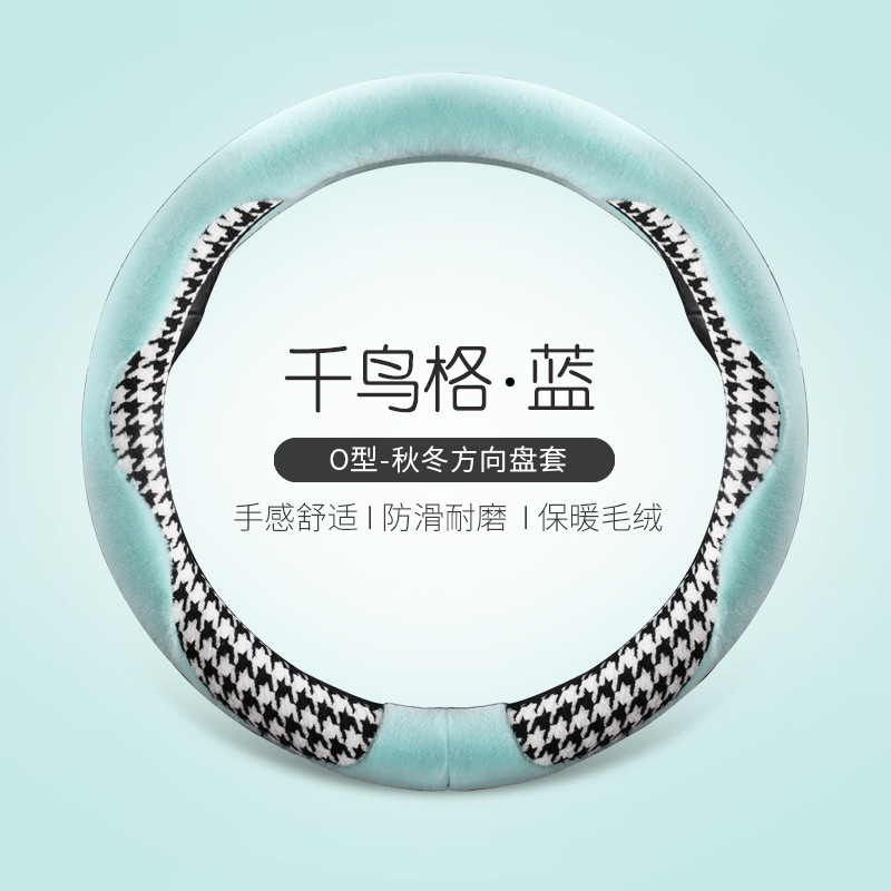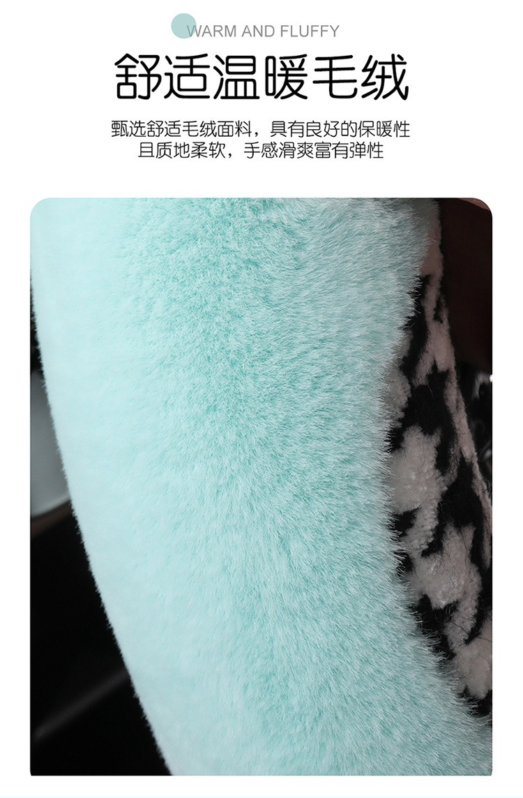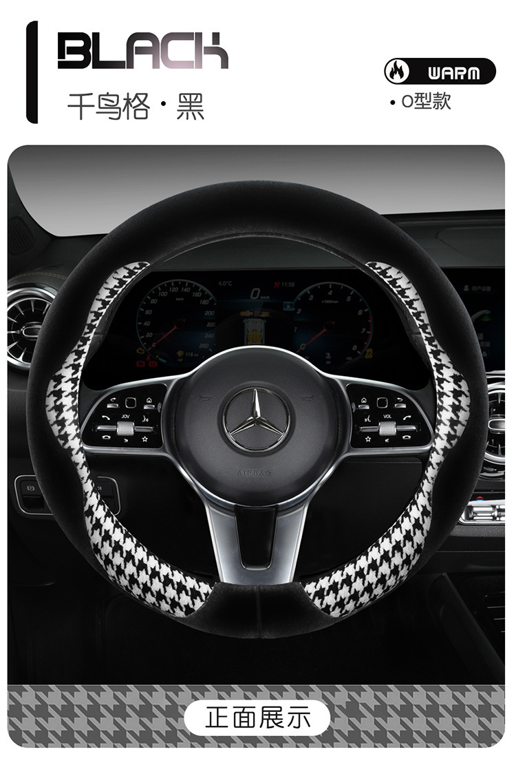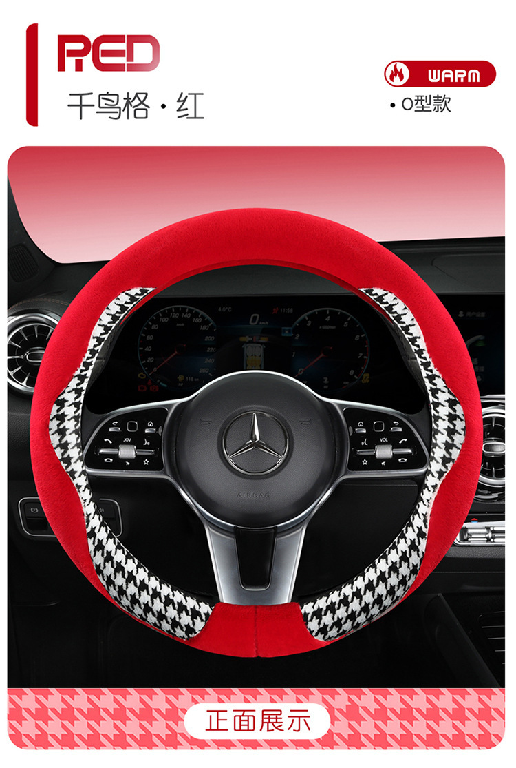 Чехол на руль автомобиля, женский зимний плюшевый нескользящий Модный чехол для ручки автомобиля в ломаную клетку, зимние теплые аксессуары для интерьера