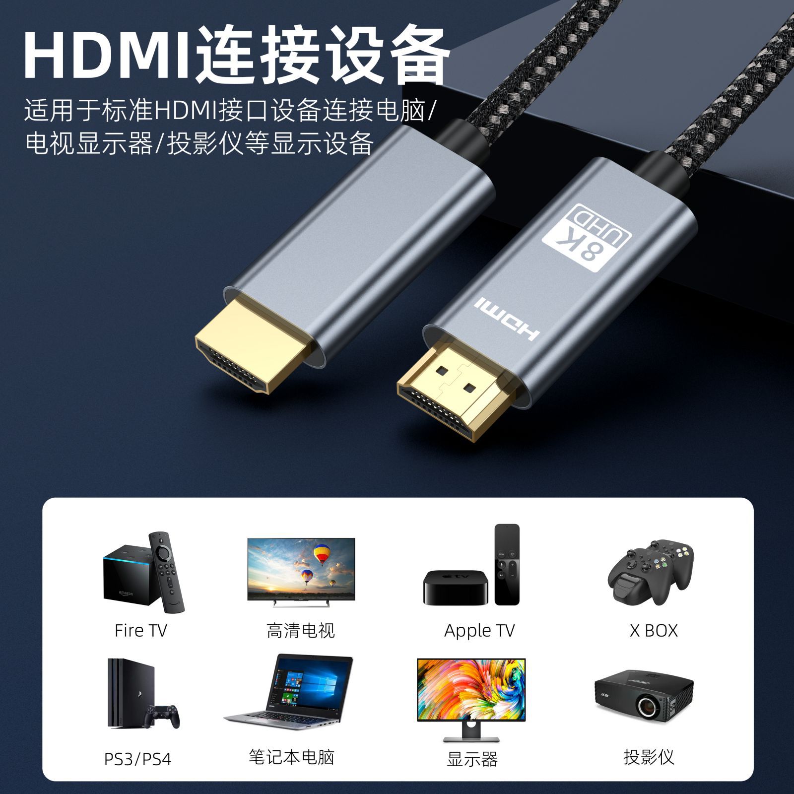 8K HD кабель hdmi2.1 кабель для передачи данных компьютер ТВ проекционный кабель PS5 плетеный кабель hdmi завод оптом
