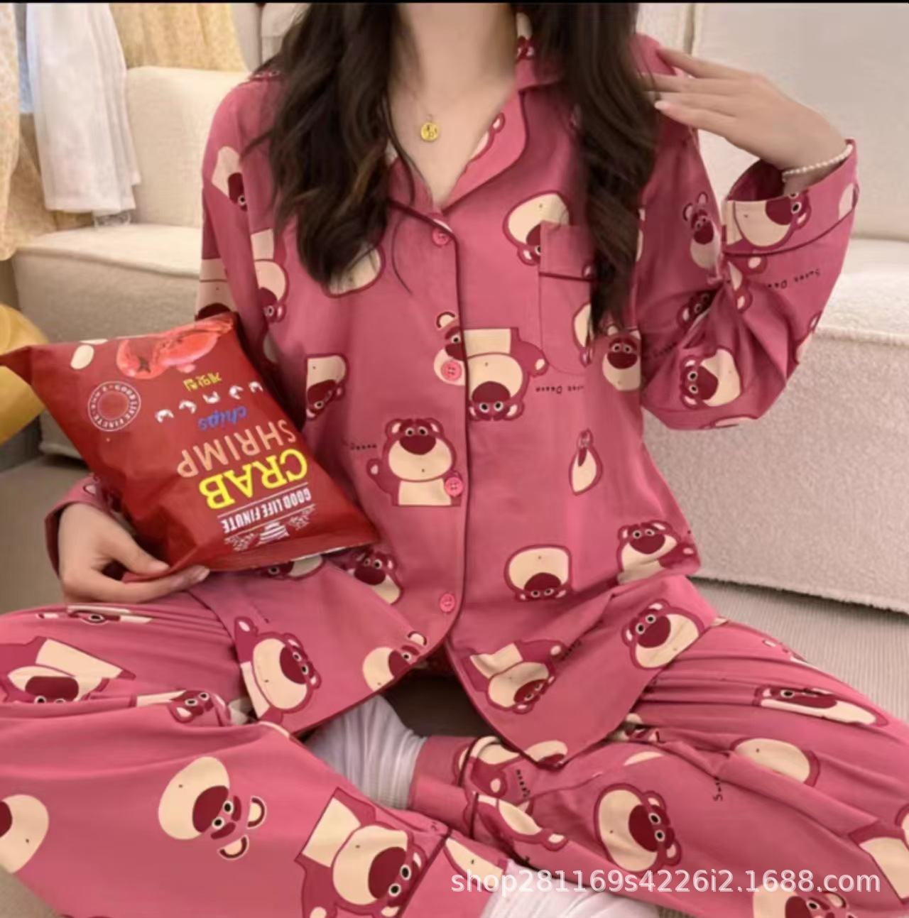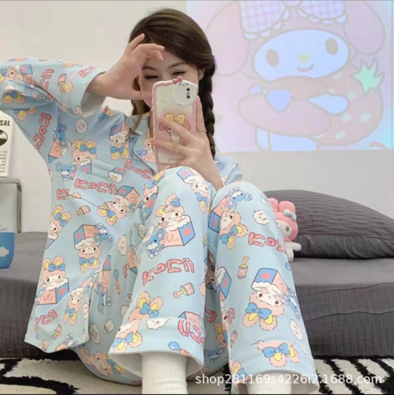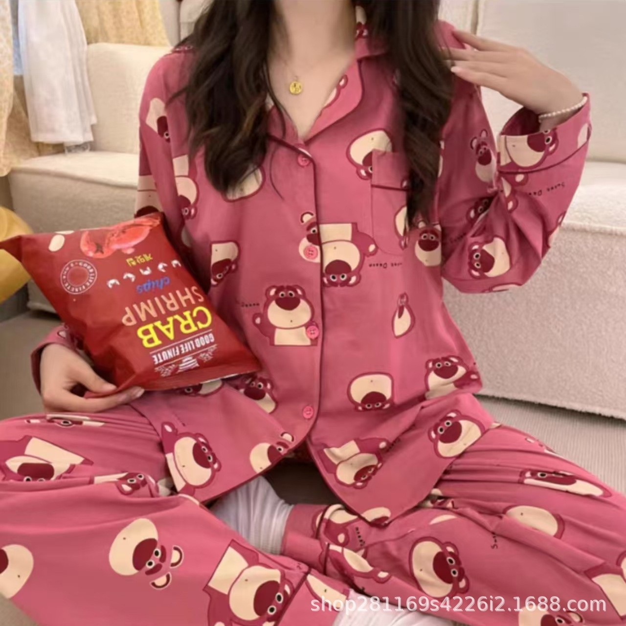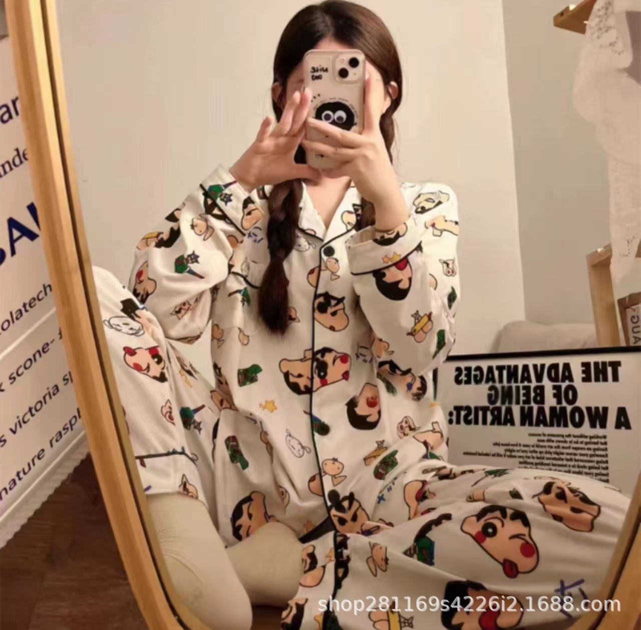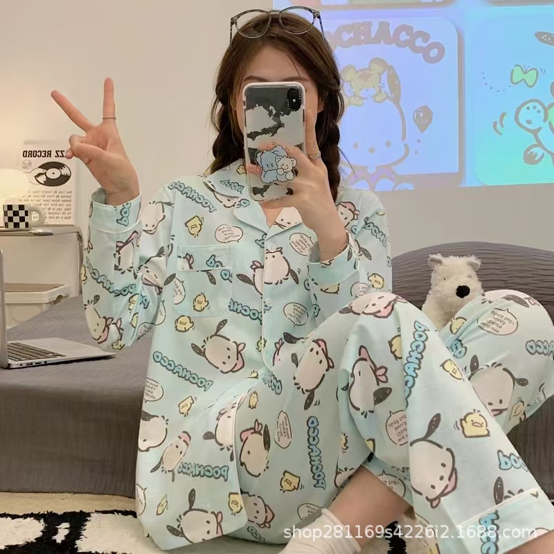 Корейские пижамы для женщин 2025, новая коллекция Shopee, женская одежда для сна, весна-осень, женский кардиган с лацканами, длинные брюки, костюм