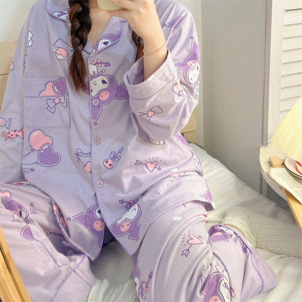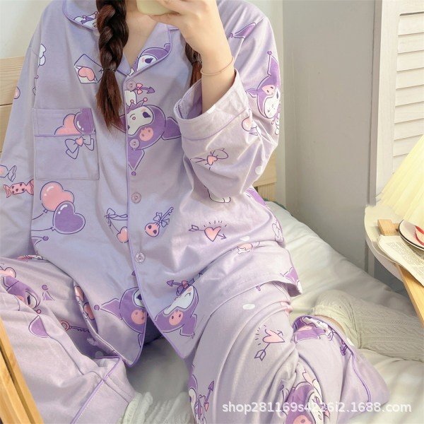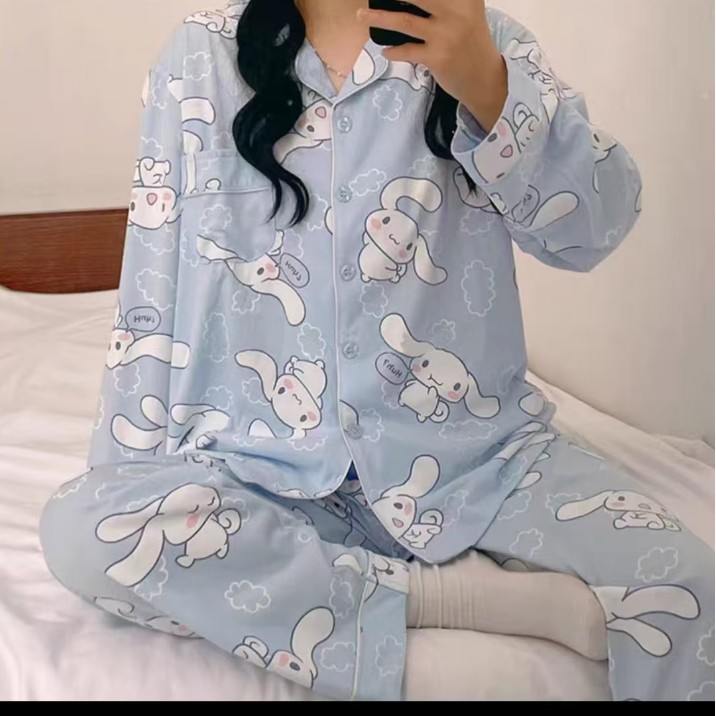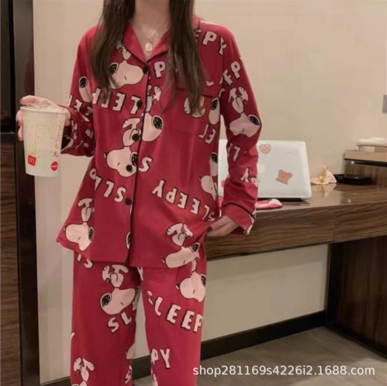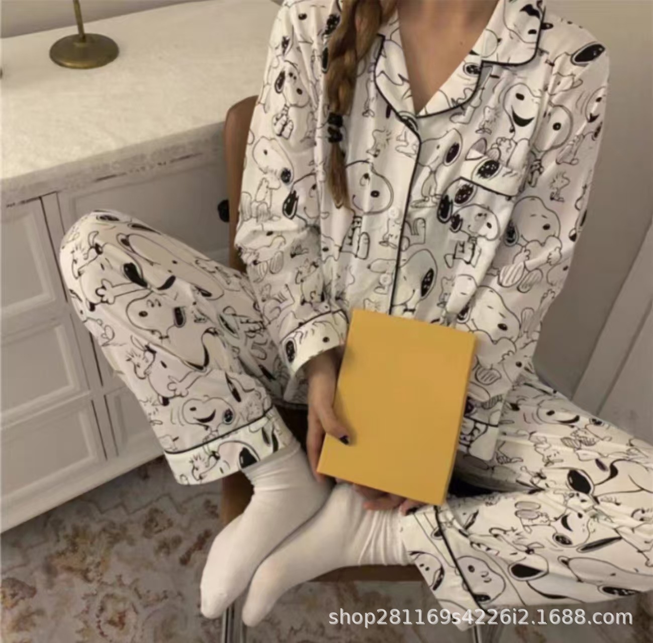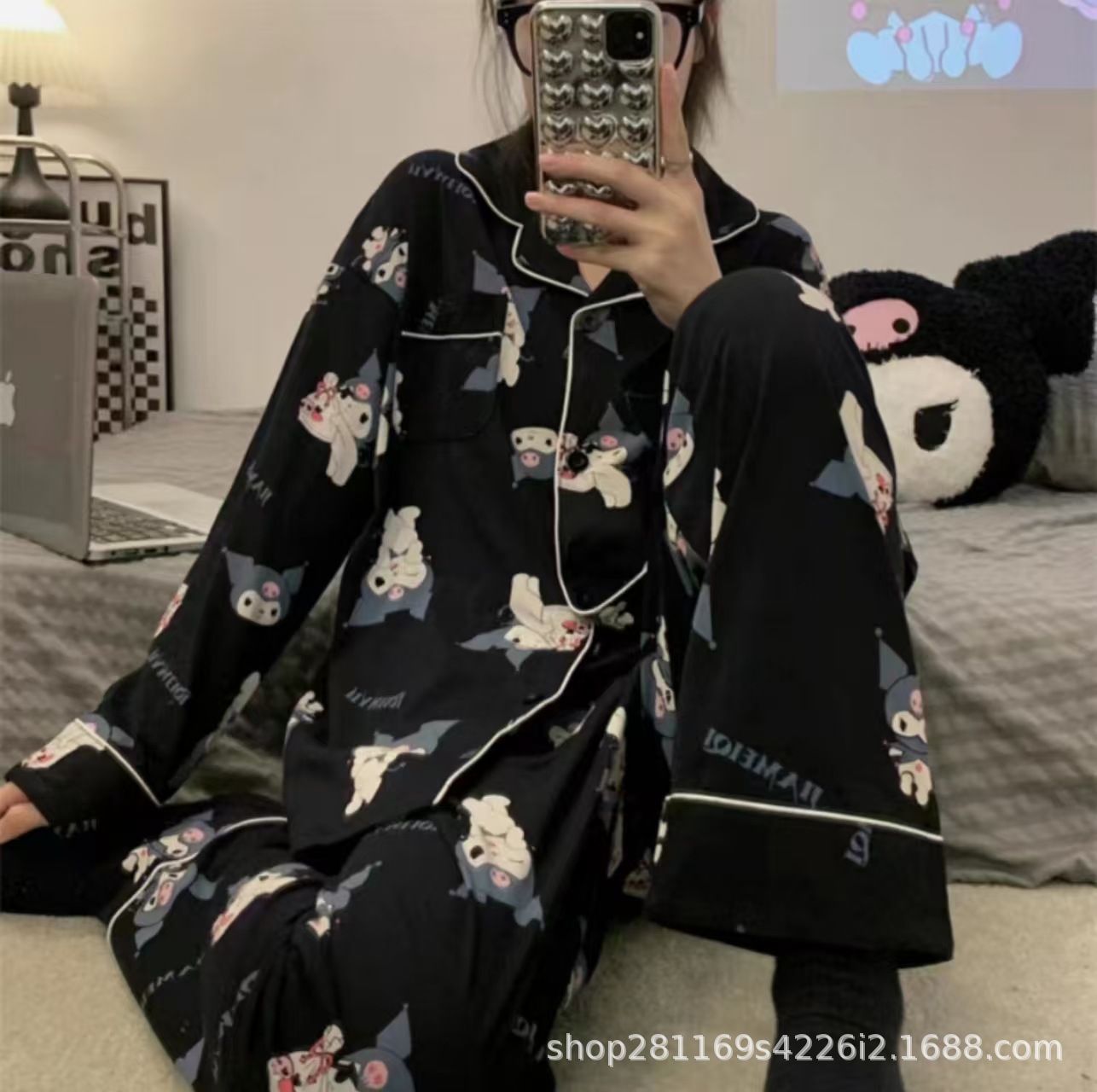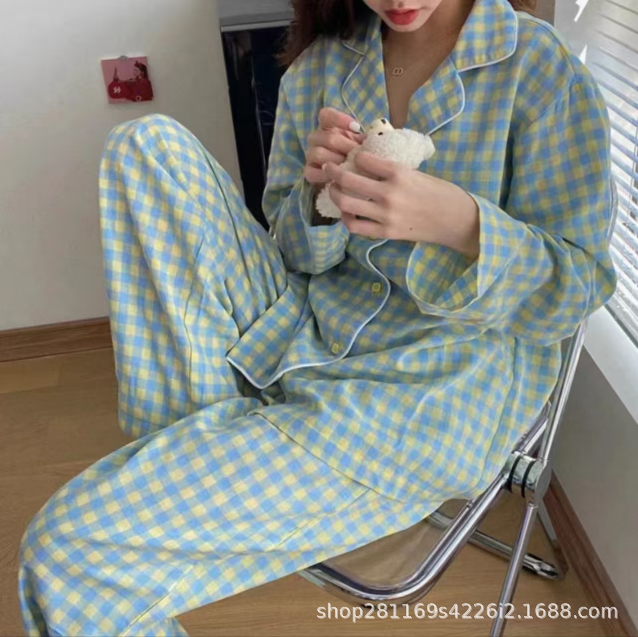 Корейские пижамы для женщин 2025, новая коллекция Shopee, женская одежда для сна, весна-осень, женский кардиган с лацканами, длинные брюки, костюм
