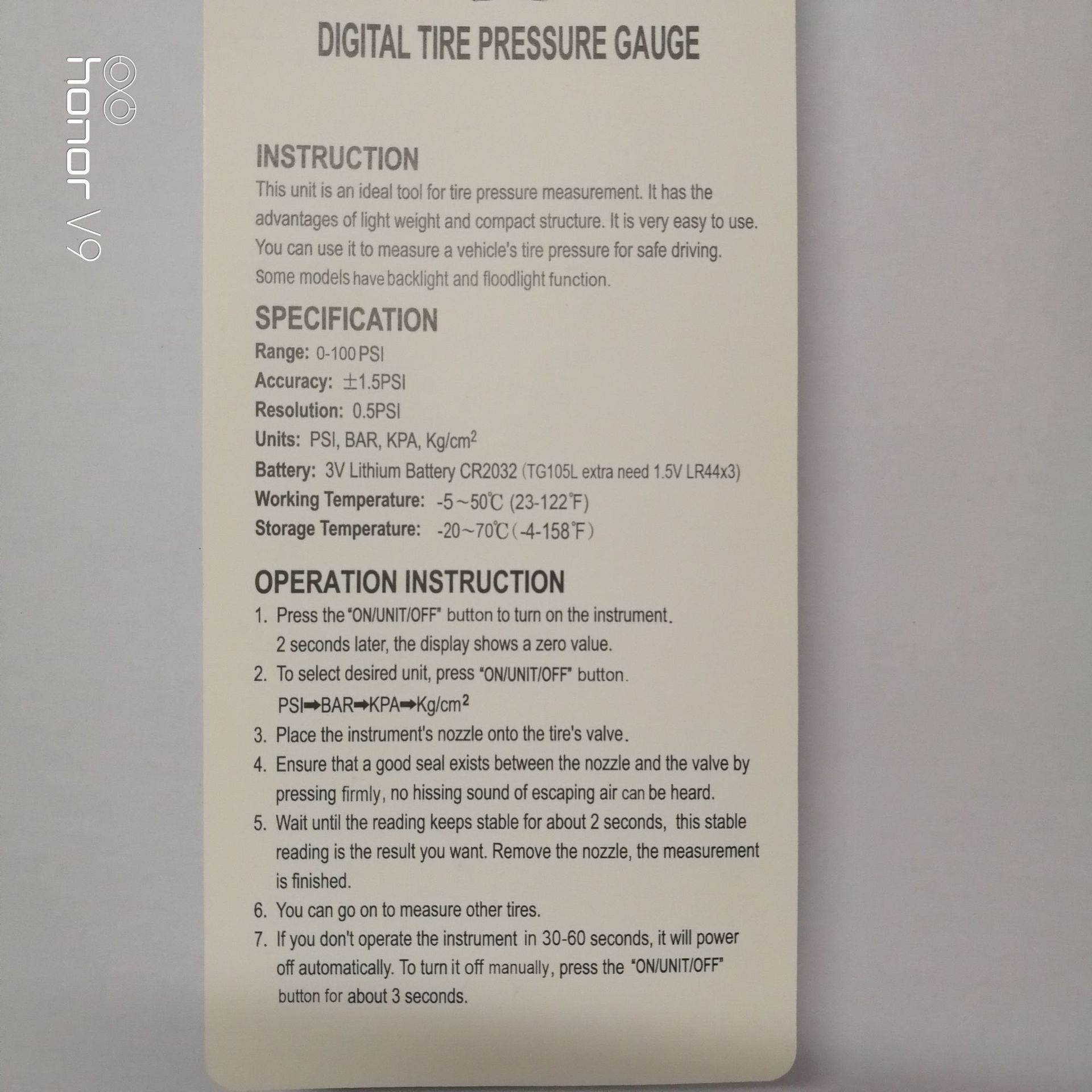 Многофункциональный цифровой манометр для шин TG105L с подсветкой и функцией измерения давления в шинах