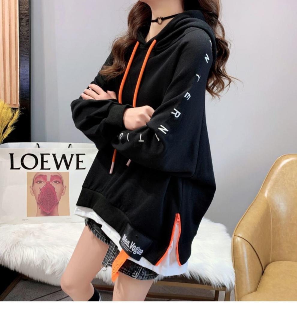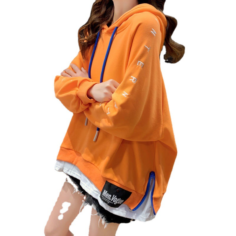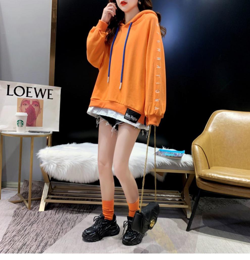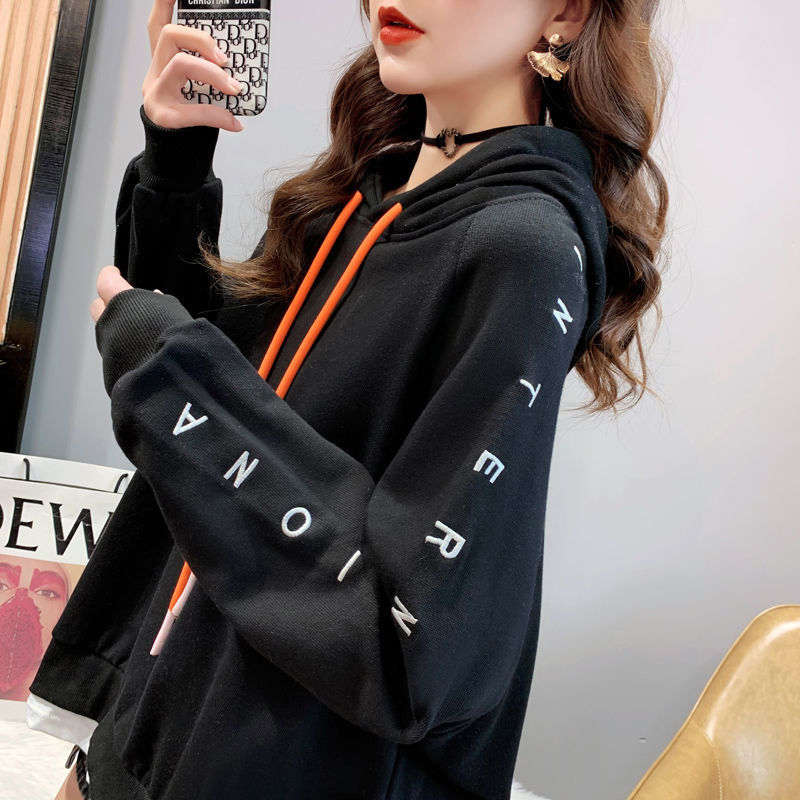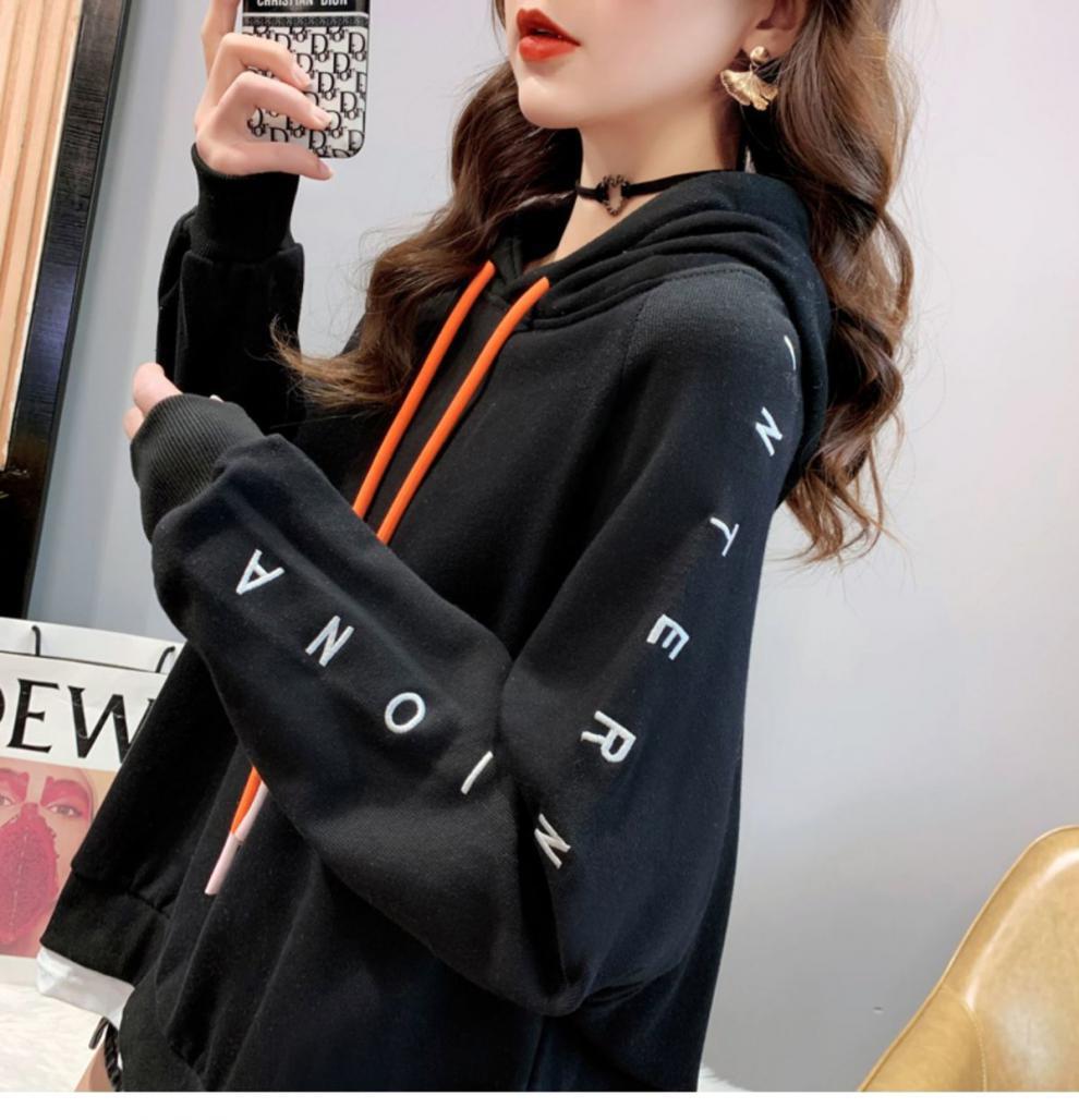 Поддельный свитер из двух частей с вышивкой, женский свободный темперамент с капюшоном, буквы для похудения, универсальный темперамент, тонкая верхняя одежда, топ, оптовая продажа