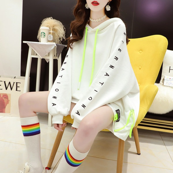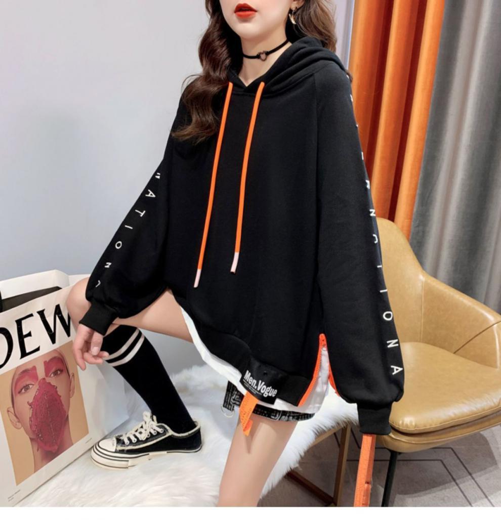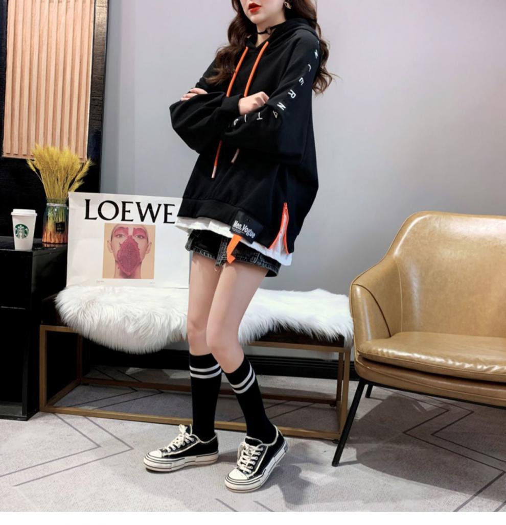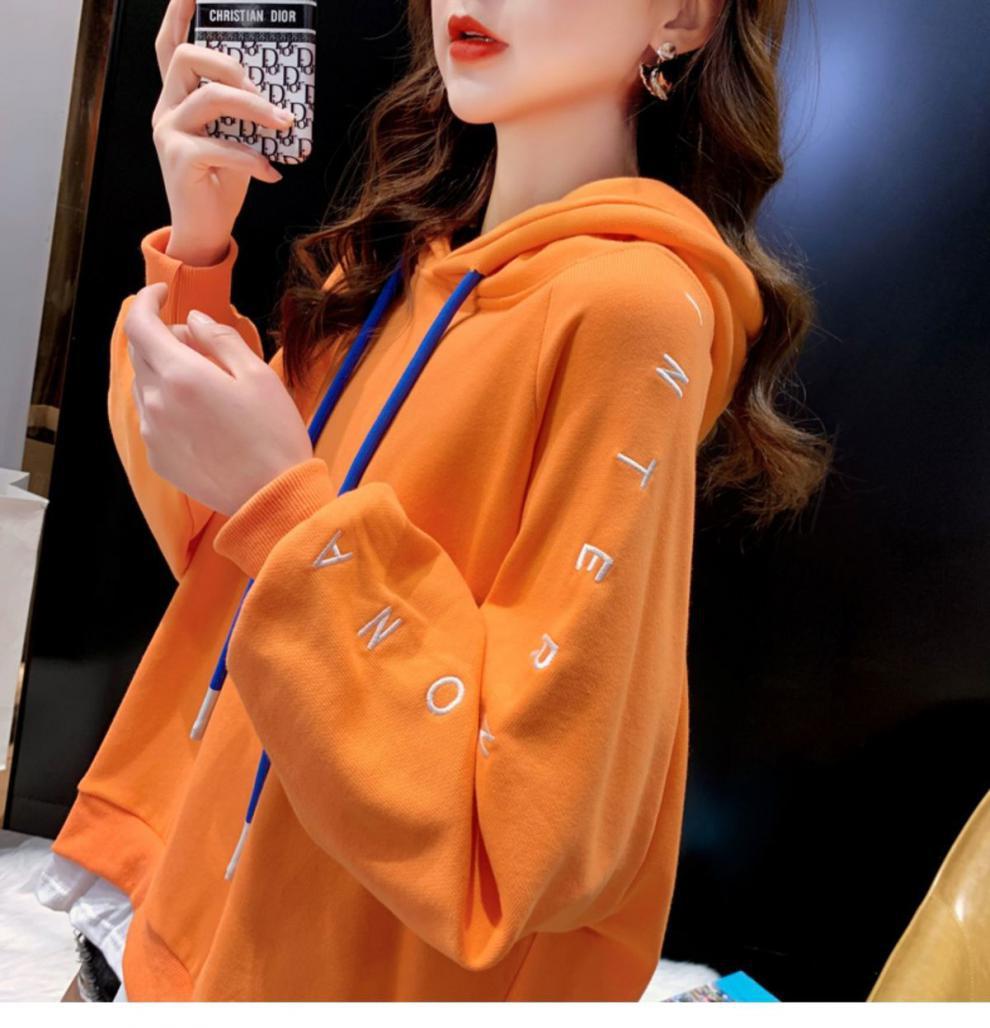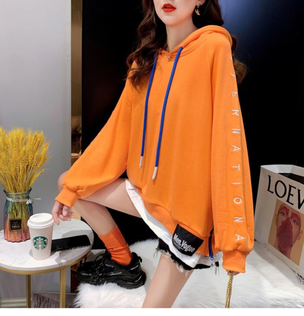 Поддельный свитер из двух частей с вышивкой, женский свободный темперамент с капюшоном, буквы для похудения, универсальный темперамент, тонкая верхняя одежда, топ, оптовая продажа