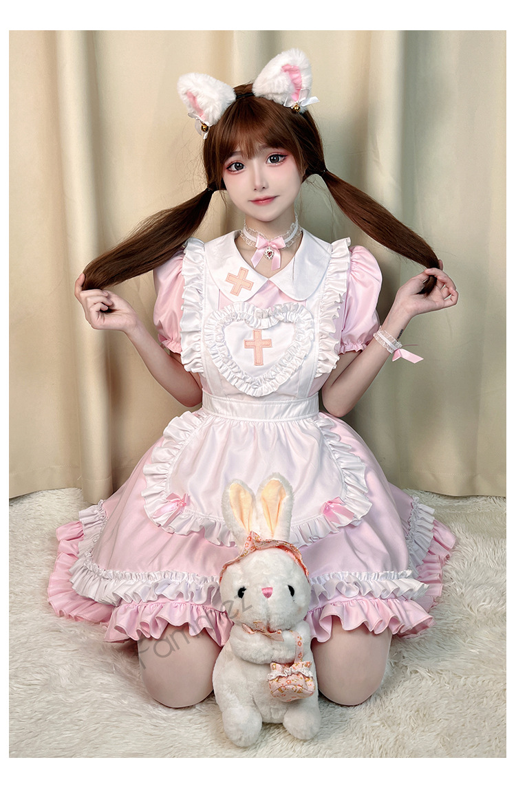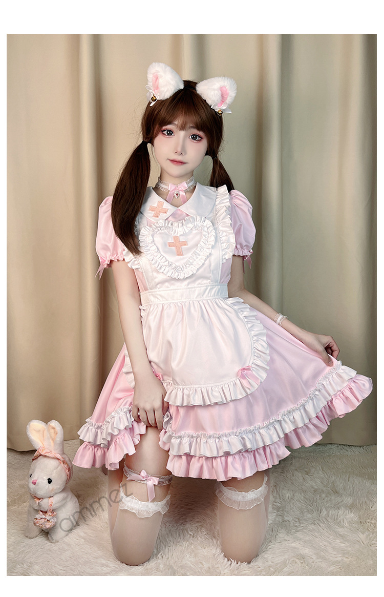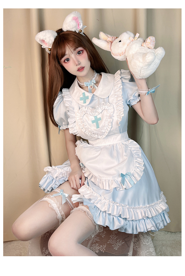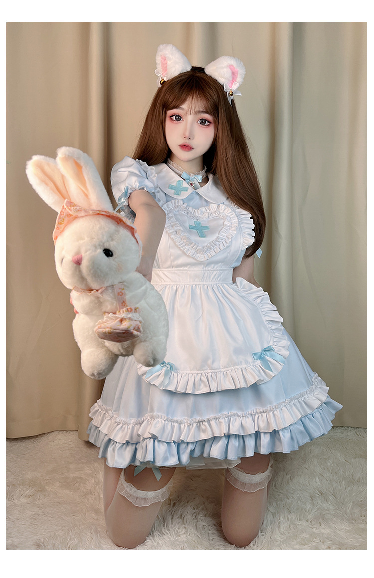 Костюм японской горничной COS аниме крем Милая Лолита мягкая девушка горничная униформа с коротким рукавом платье костюм