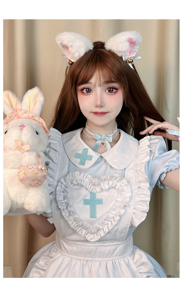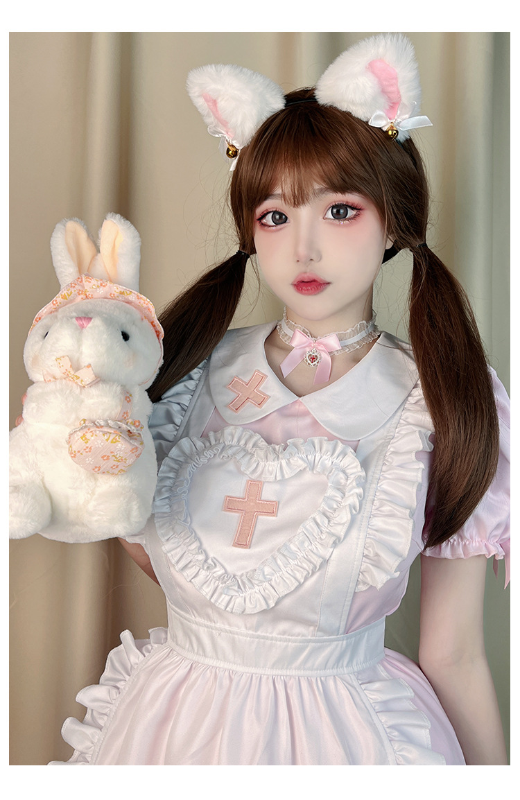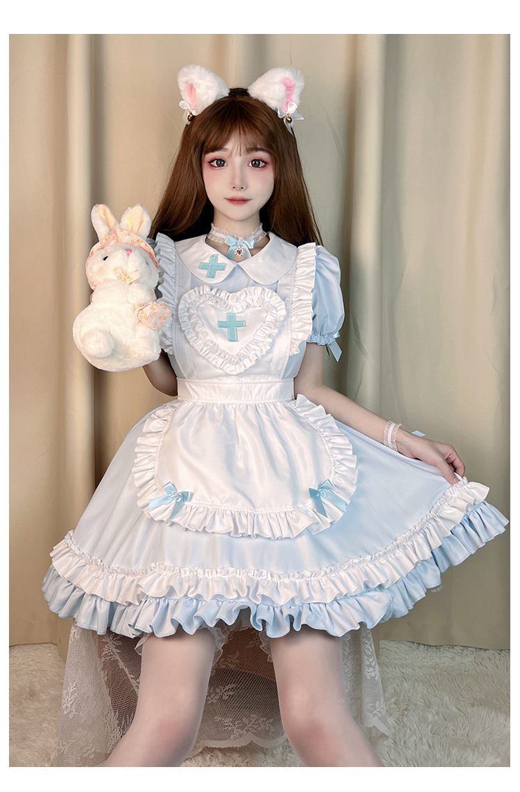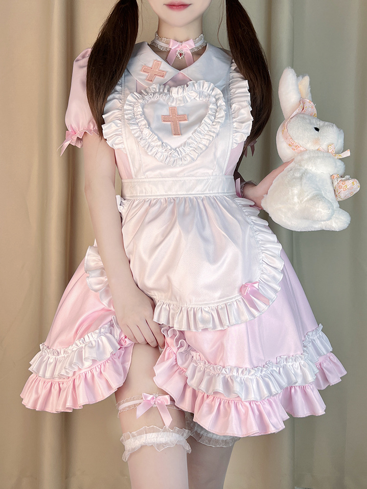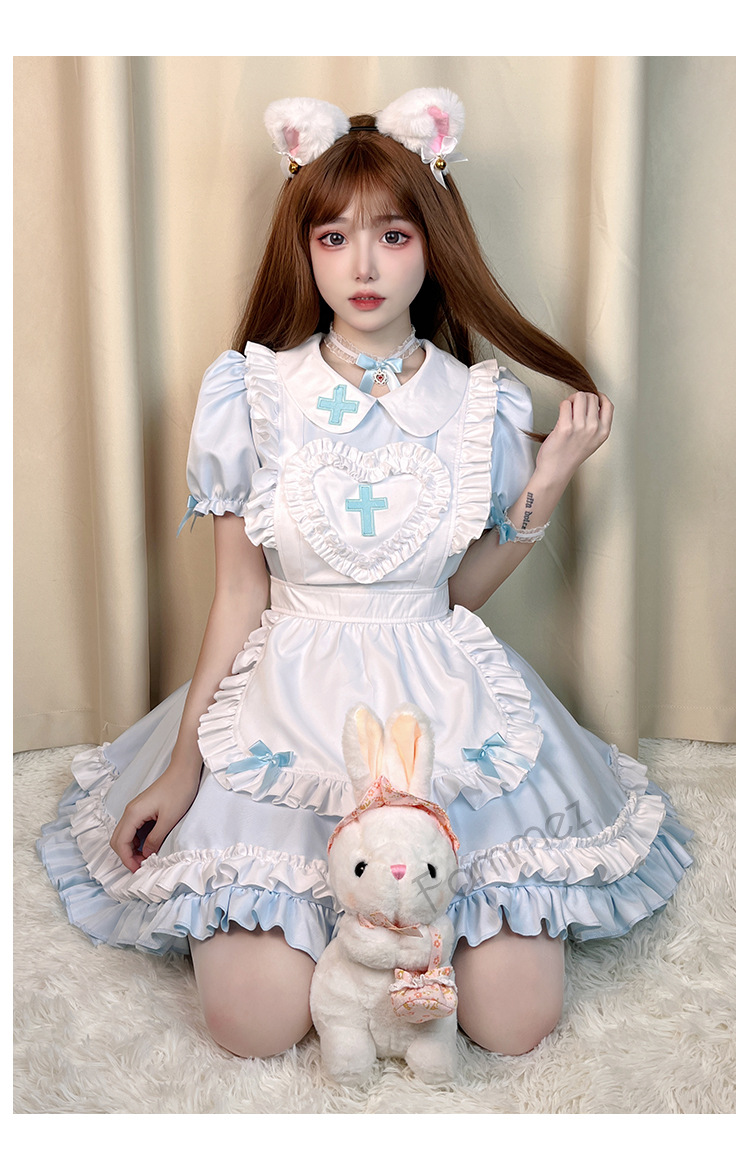 Костюм японской горничной COS аниме крем Милая Лолита мягкая девушка горничная униформа с коротким рукавом платье костюм