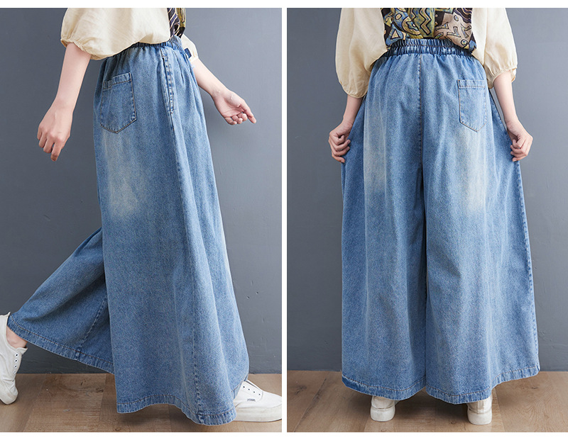 Реальный снимок в наличии, новый стиль, джинсы с широкими штанинами, винтажные свободные брюки на шнуровке больших размеров с эластичной талией, трендовая юбка