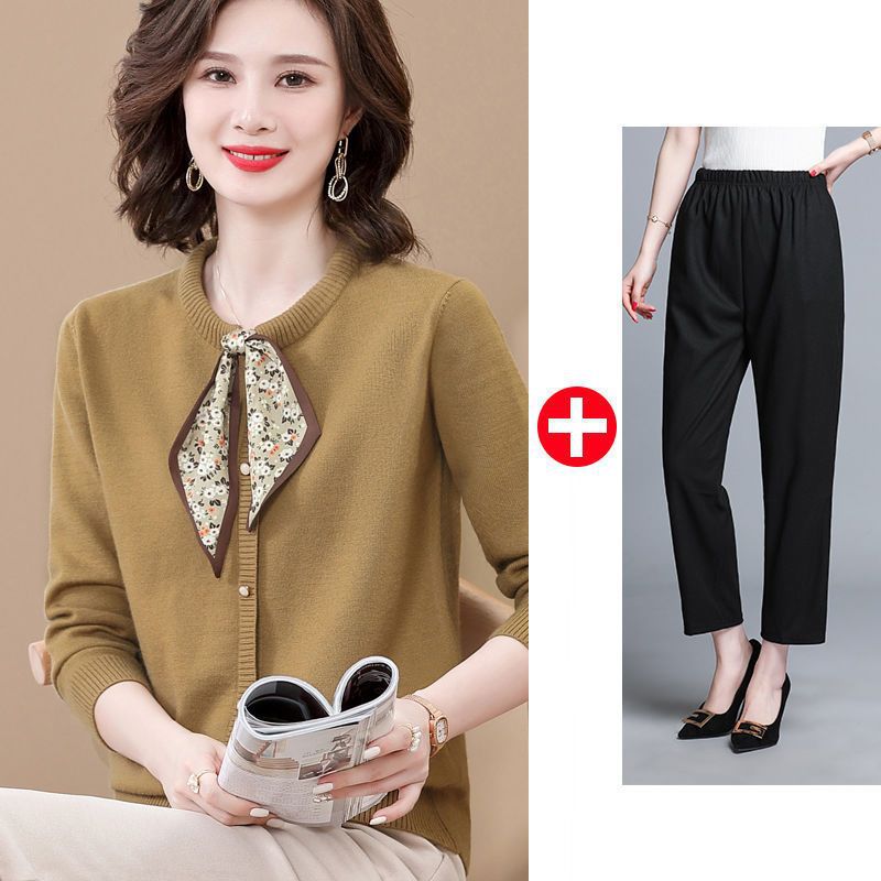 Осенний вязаный топ для мам, тонкий свитер для женщин среднего возраста, верхняя одежда для женщин среднего и пожилого возраста, скрывающая живот, стильная базовая рубашка.