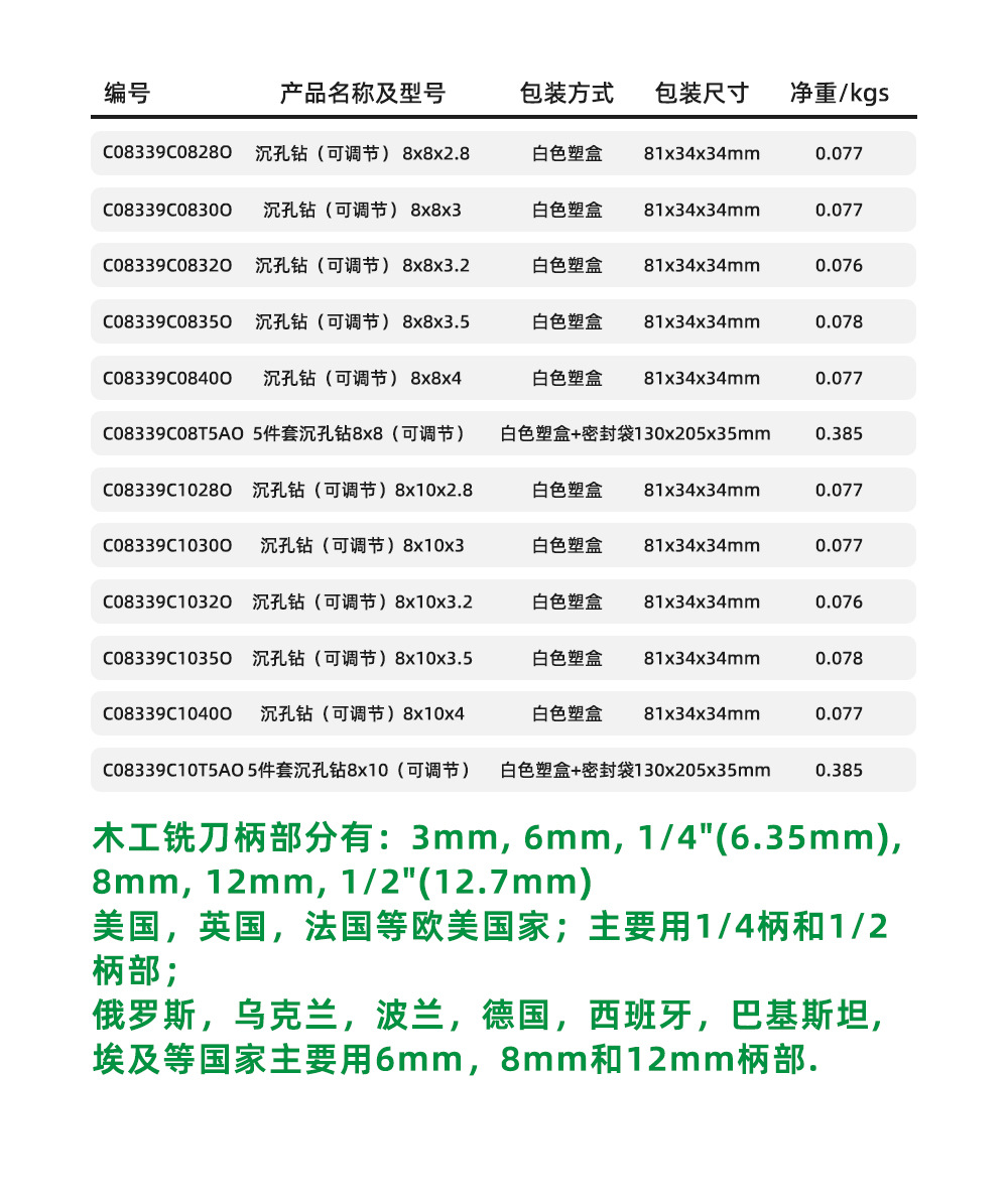 Сверло зенкерное (регулируемое) 8х8х2,8; Сверло зенкерное (регулируемое) 8х8х3; Сверло зенкерное (регулируемое) 8х8х3,2; Сверло зенкерное (регулируемое) 8х8х3,5; Сверло зенкерное (регулируемое) 8х8х4; Набор из 5 предметов: зенкерная дрель с 8 ручками 8x8 (регулируемая); Сверло зенкерное (регулируемое) 8х10х2,8; Сверло зенкерное (регулируемое) 8х10х3; Сверло зенкерное (регулируемое) 8х10х3,2; Сверло зенкерное (регулируемое) 8х10х3,5; Сверло зенкерное (регулируемое) 8х10х4; Набор из 5 предметов: зенкер с 8 ручками 8*10 (регулируемый)