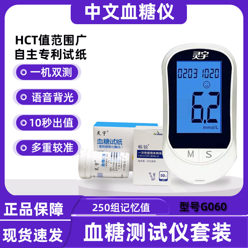 Медицинский глюкометр для людей среднего и пожилого возраста для измерения уровня сахара в крови, тест-полоски, игла для забора крови, одиночный прибор Lingyu G060 для диагностики диабета