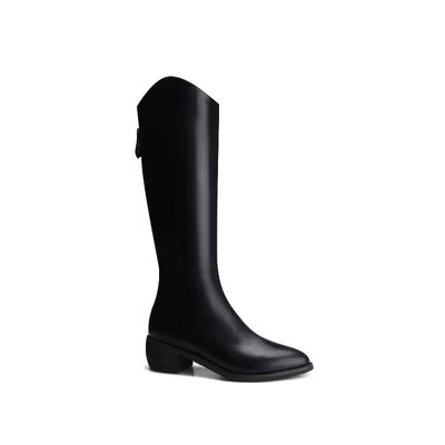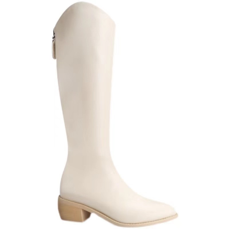 Высокие сапоги с увеличенной внутренней высотой, женские сапоги для верховой езды, ботинки в британском стиле с острым носком, женские ботинки-мартинсы с V-образным вырезом, зимние женские сапоги с молнией сзади.
