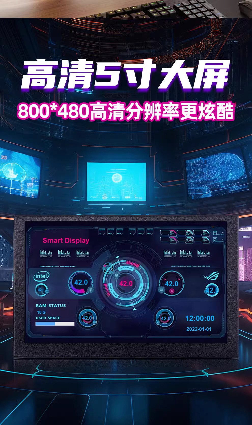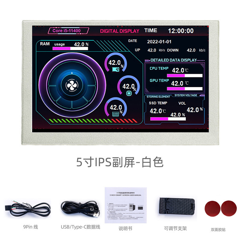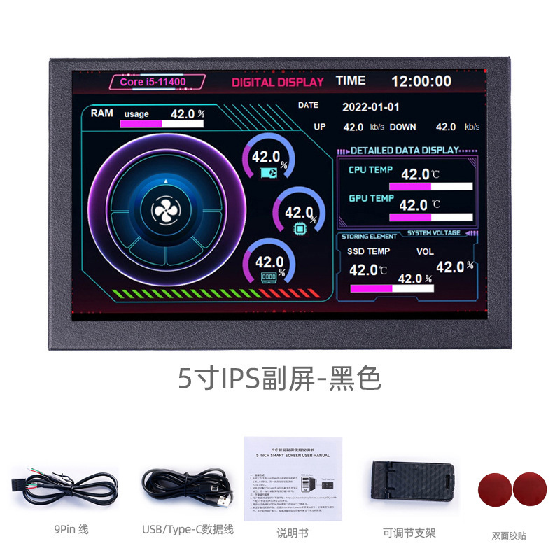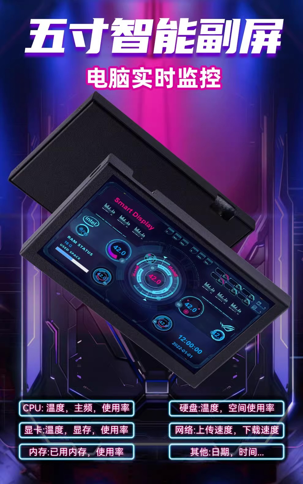 5inch USB-C корпус для вторичного экрана IPS, корпус для компьютера с вторичным экраном, мониторинг температуры видеокарты, настраиваемый тематический дизайн