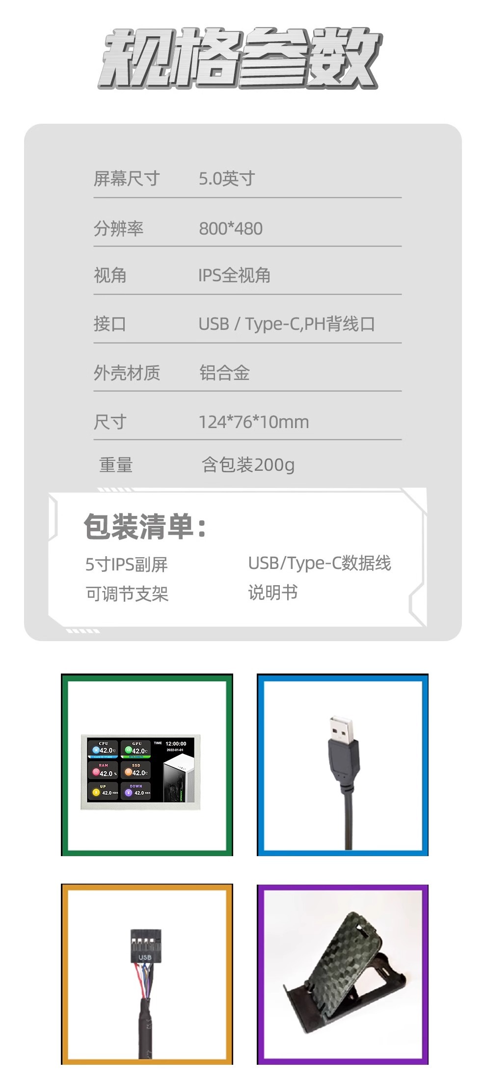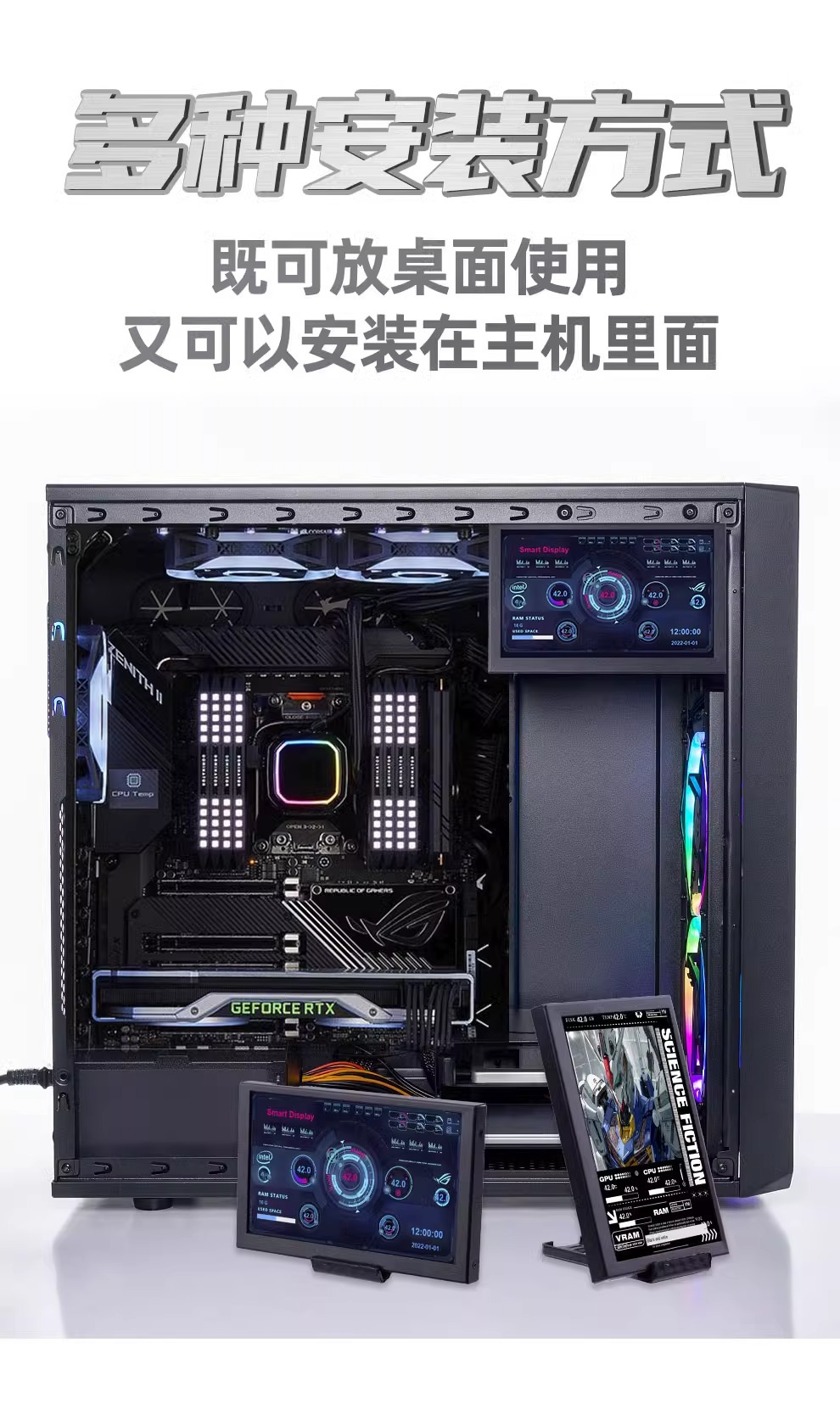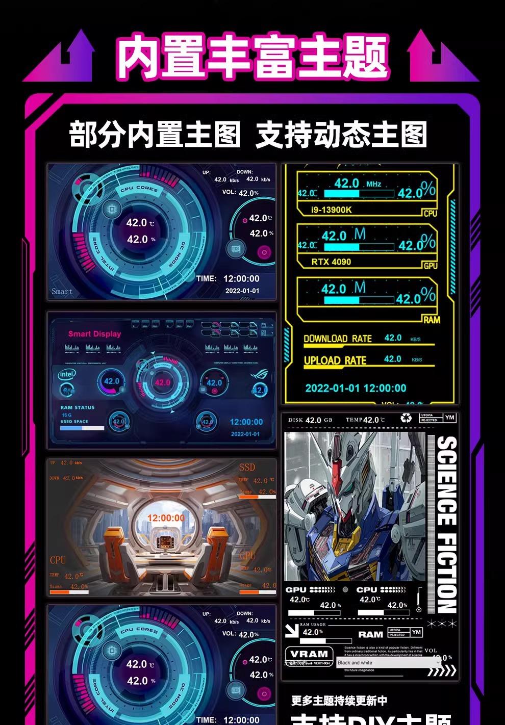 5inch USB-C корпус для вторичного экрана IPS, корпус для компьютера с вторичным экраном, мониторинг температуры видеокарты, настраиваемый тематический дизайн