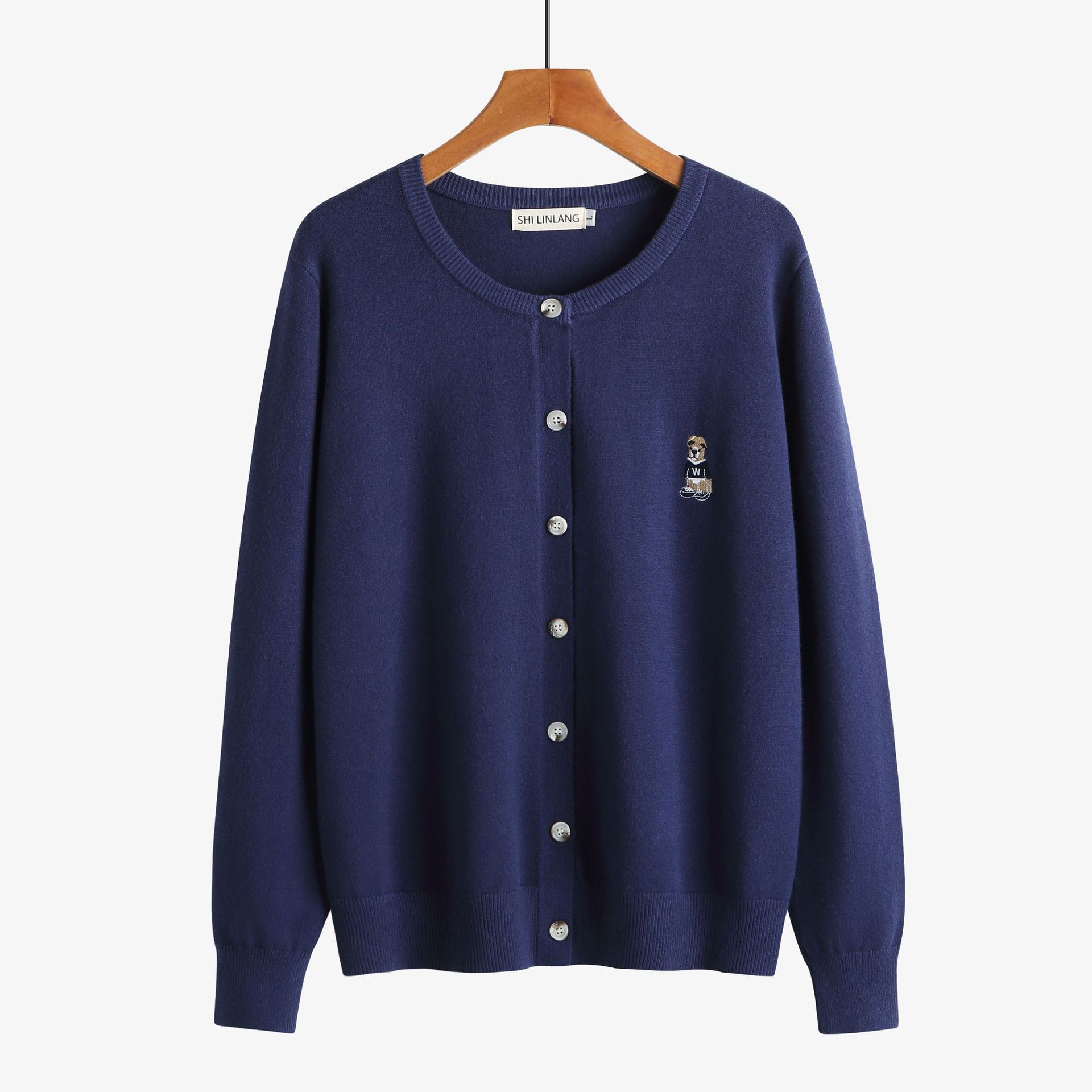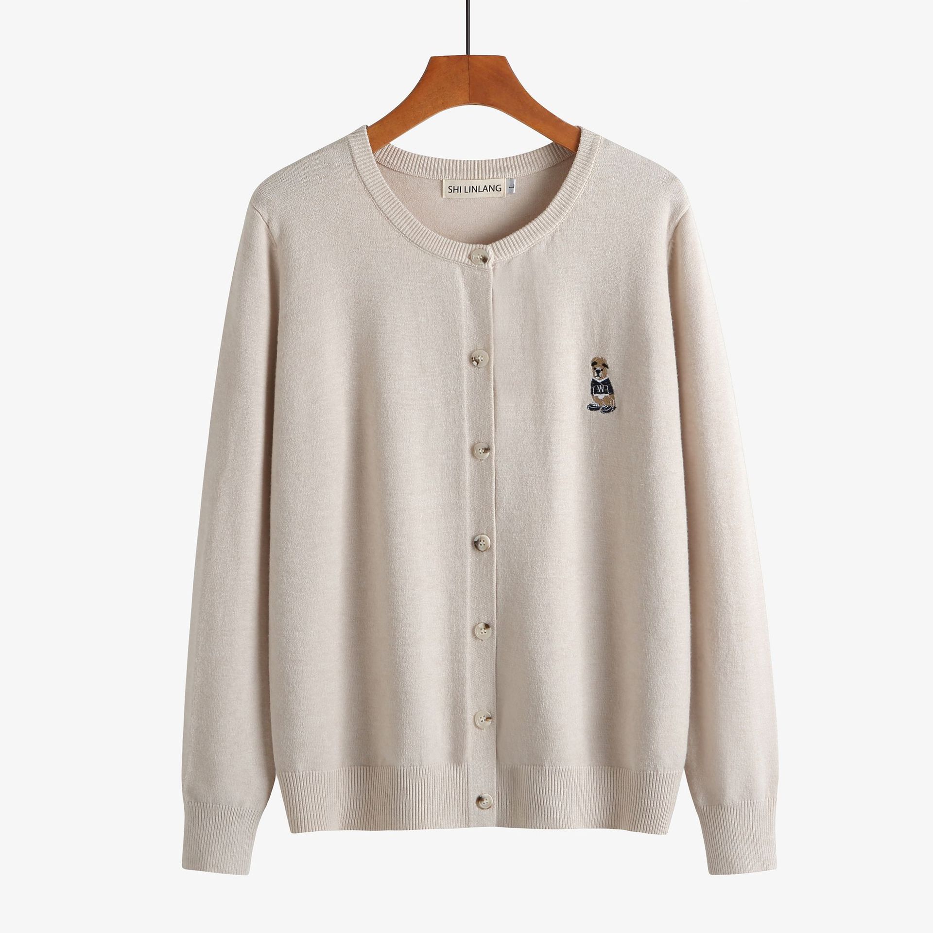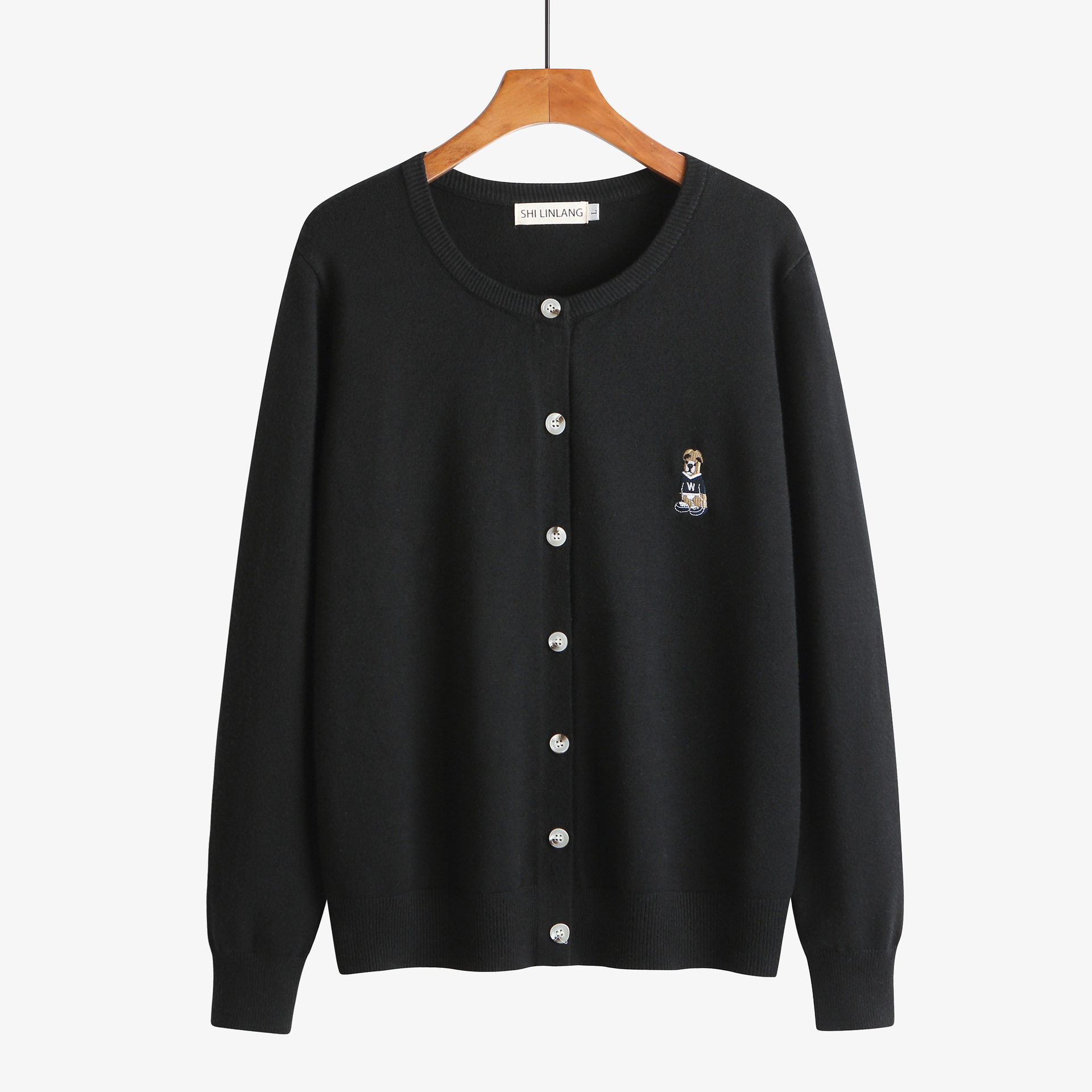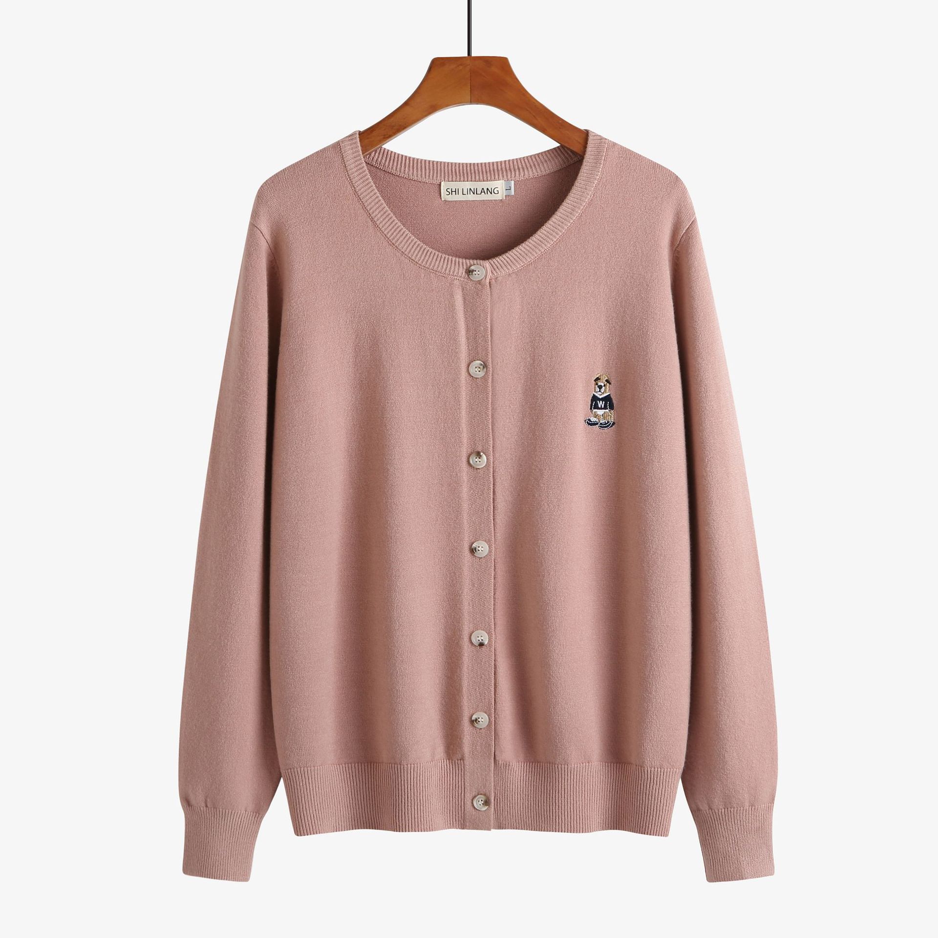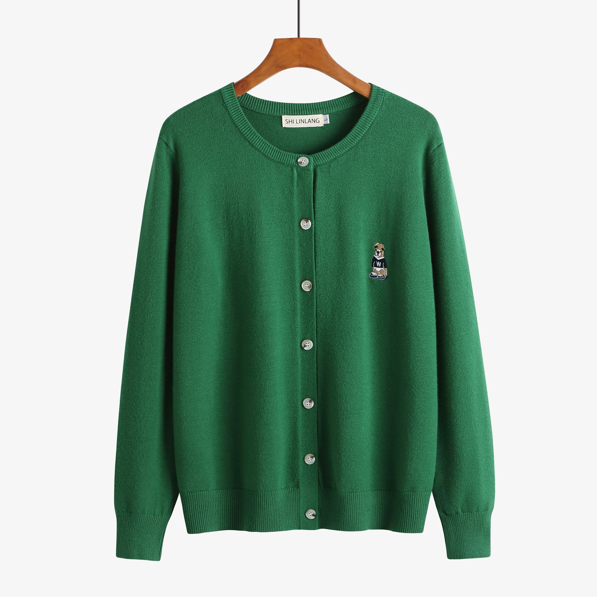 Большой размер женщины 2024 осень-зима новый медвежонок трикотаж с вышивкой кардиган с круглым вырезом толстый свитер куртка 220 кг