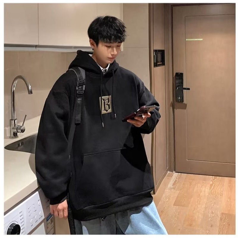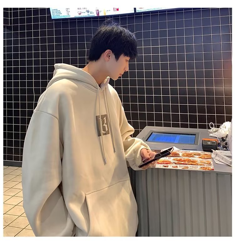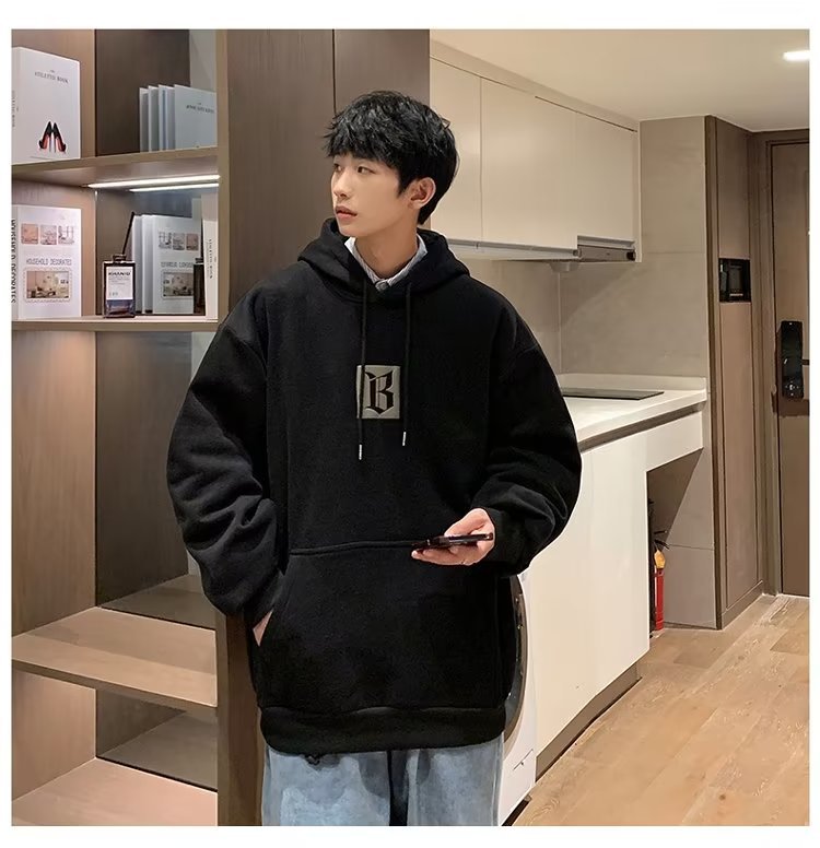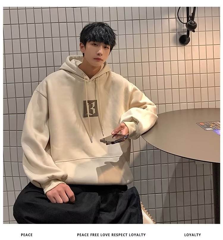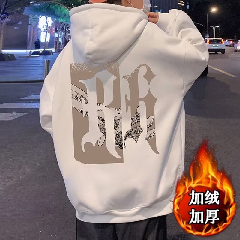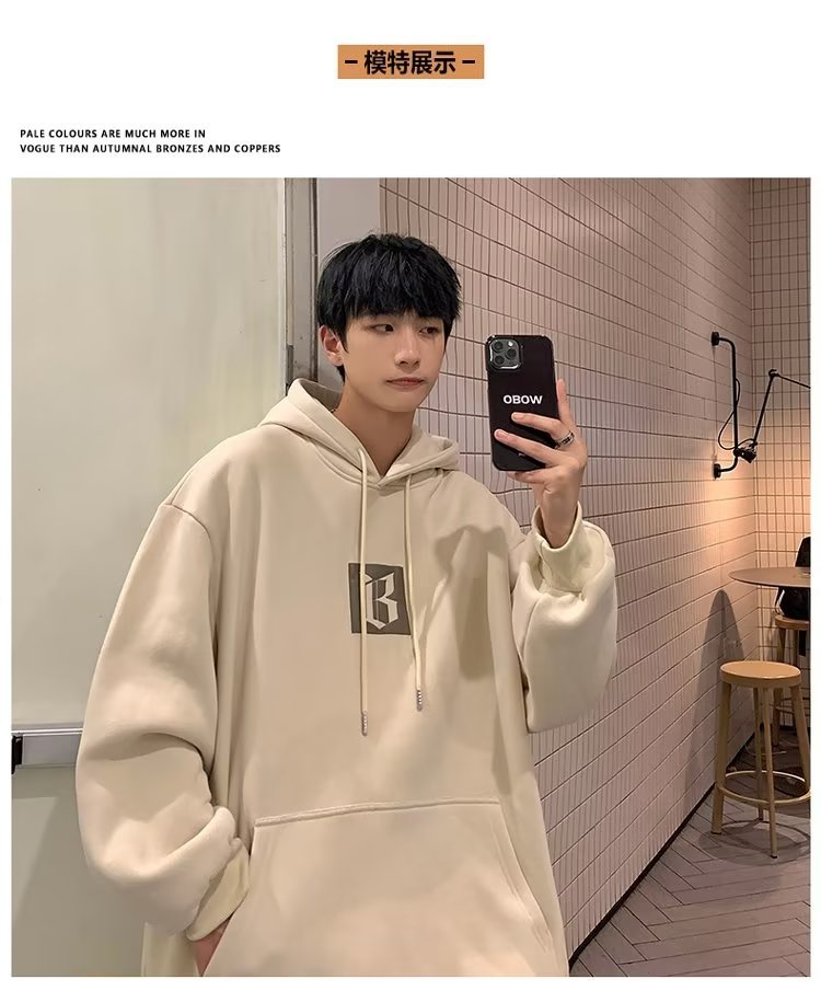 Мужская универсальная толстовка в японском стиле с капюшоном для осени и зимы, модный повседневный пуловер в стиле Харадзюку на флисовой подкладке, свободного кроя с буквенным принтом.