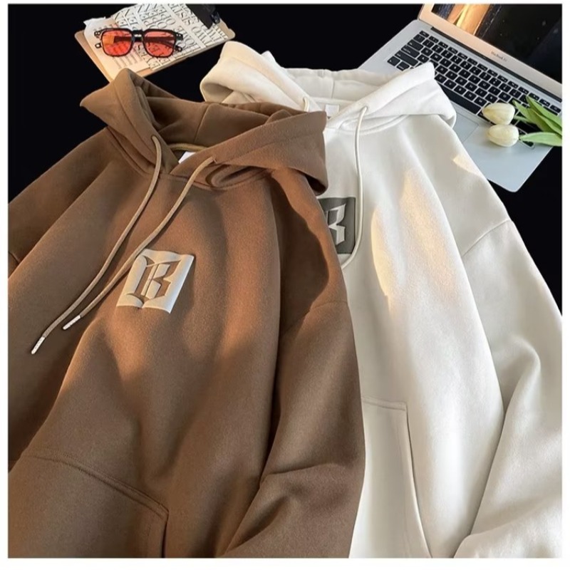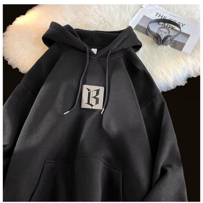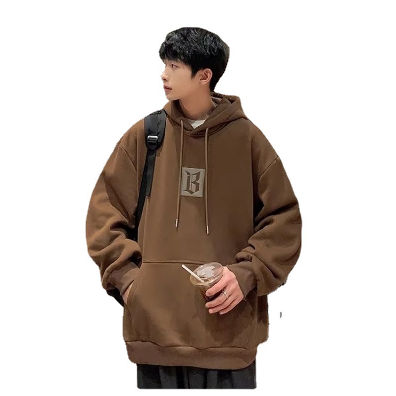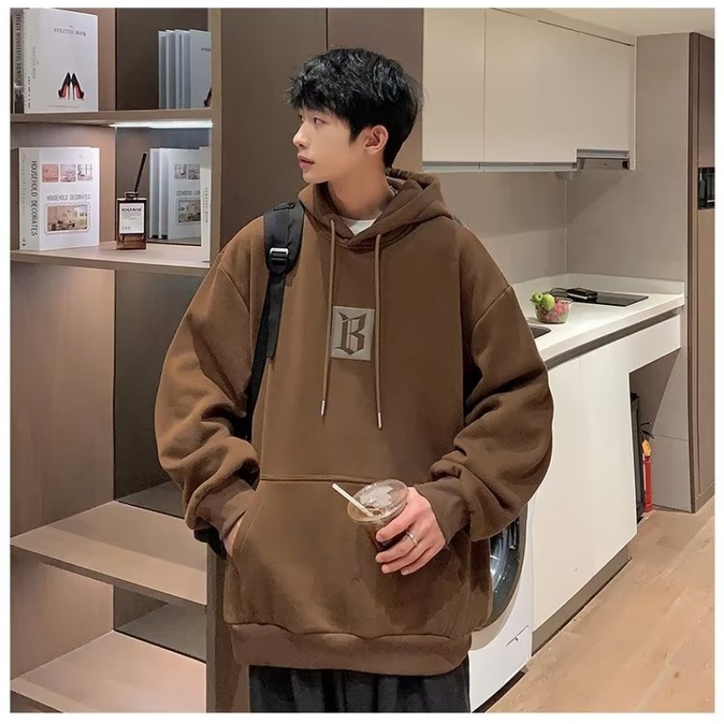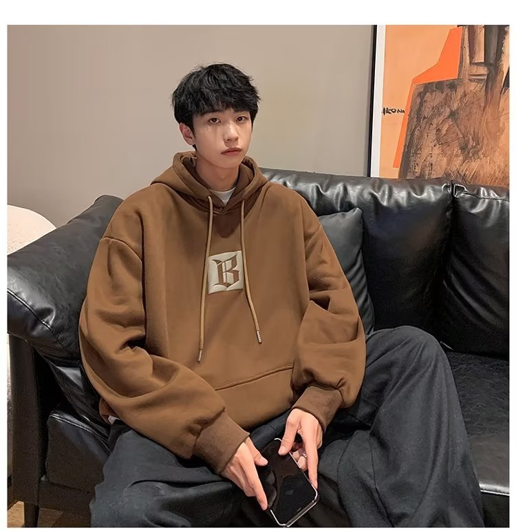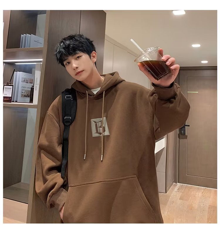 Мужская универсальная толстовка в японском стиле с капюшоном для осени и зимы, модный повседневный пуловер в стиле Харадзюку на флисовой подкладке, свободного кроя с буквенным принтом.