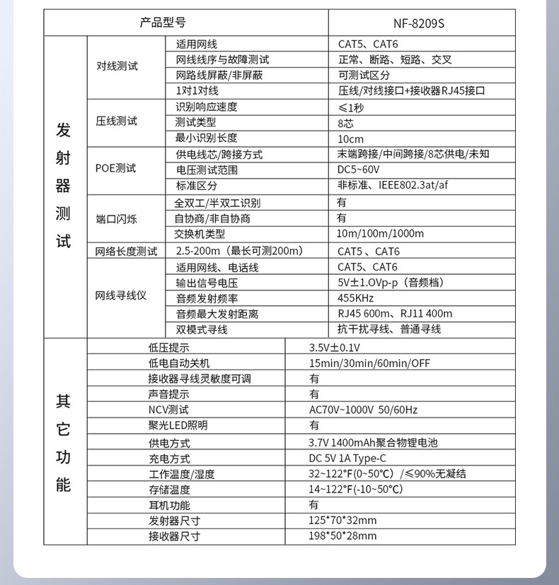 Lei крыс NF-8209S производитель оптом зарядный poe сеть тестер сетевая линия катетер катетер