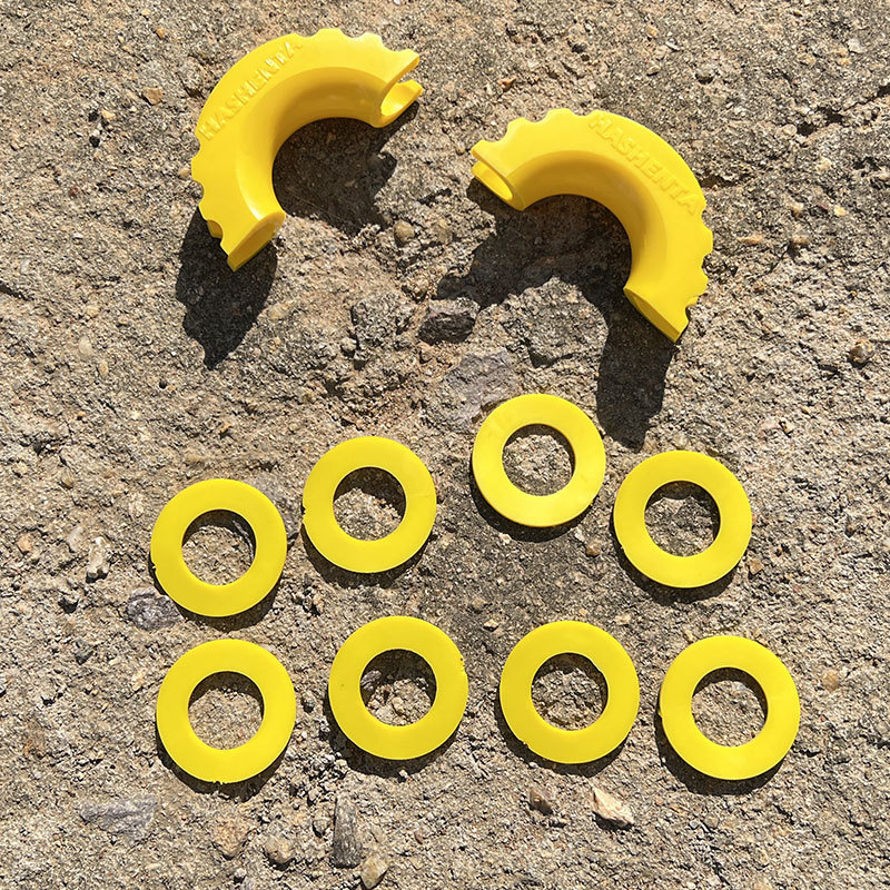 Черный (2 жакета + 8 шайб); Красный (2 рукава + 8 шайб); Желтый (2 жакета + 8 шайб); Серый (2 жакета + 8 шайб); Зеленый (2 рукава + 8 шайб); Темно-зеленый (2 рукава + 8 шайб); Белый (2 оболочки + 8 шайб); Синий (2 жакета + 8 шайб); Оранжевый (2 жакета + 8 шайб); Черная оболочка + 4 проставки