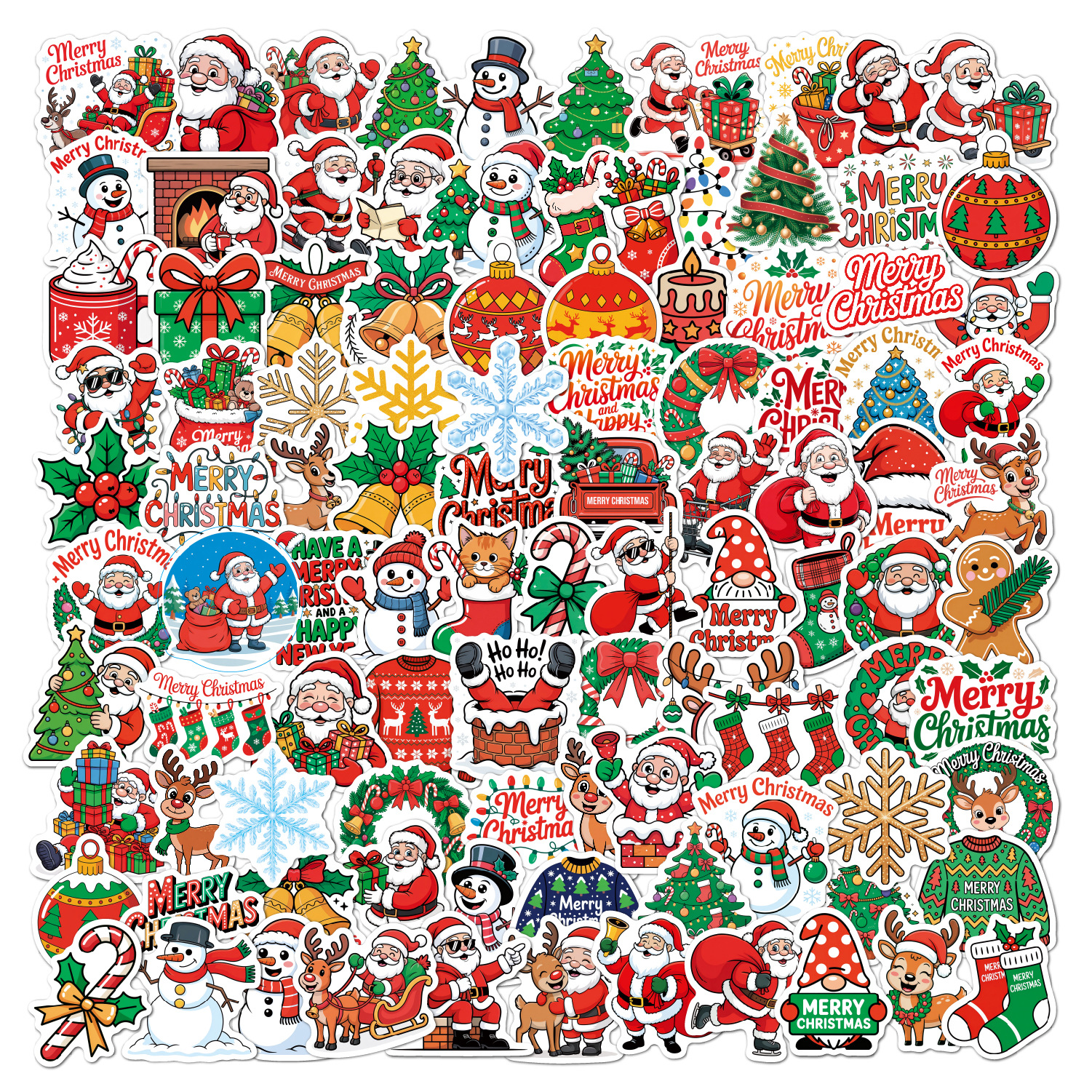 2025 Рождественские наклейки Несколько 100 голографических лазерных праздничных украшений наклейки водонепроницаемые рождественские наклейки