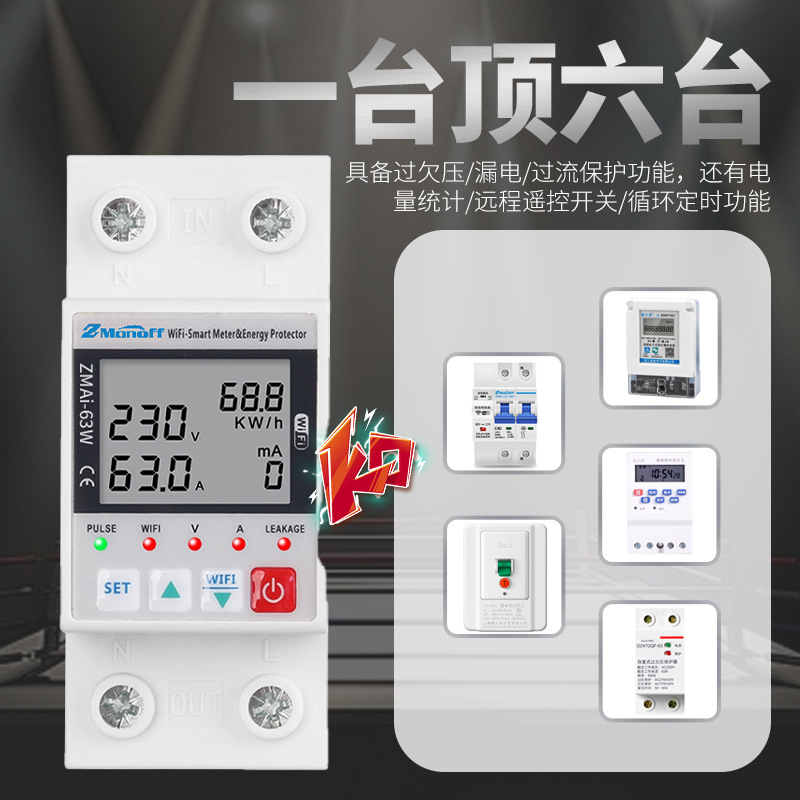 Устройство защиты от утечек с функцией автоматического повторного включения при перенапряжении и пониженном напряжении Tuya Smart WiFi.
