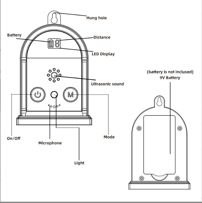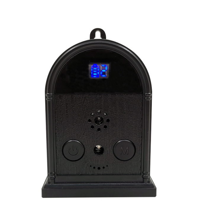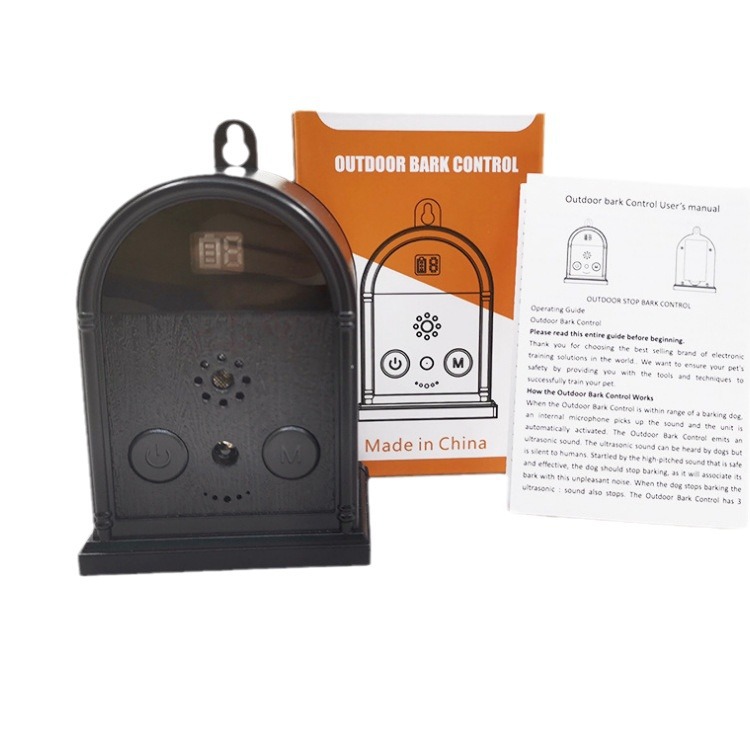 这款产品外观设计得像一个闹钟,户外超声波止吠器可以挂在树上,在屋子里的任何地方或者在你的院子里,它可以挂着、随意放在桌子上或者其他地方。当户外超声波止吠器闹钟检测到过度吠叫时,麦克风将感应吠叫并激活的部件。这时该产品将发射出一个安全的高音调超声波声,狗能听到,但是人听不到。狗受到声音的刺激,将停止吠叫。因为超声波会使狗感到不舒服,狗会停止吠叫。