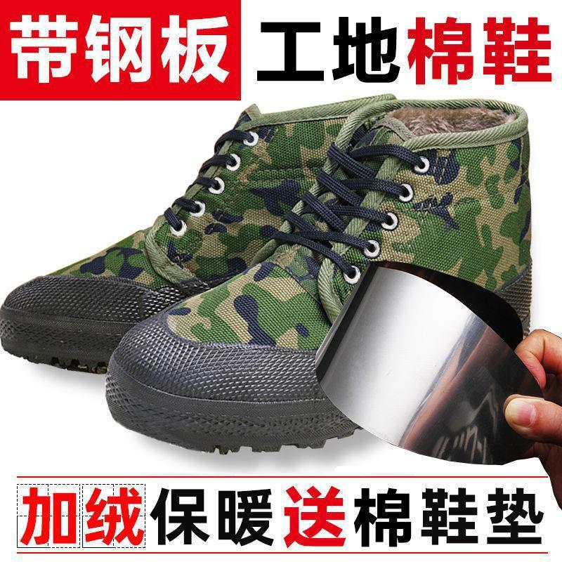 Мужские рабочие ботинки, зимние хлопковые ботинки, утепленные и защищающие от холода, высокие, для защиты труда, камуфляжные, нескользящие, износостойкие, в стиле камуфляжной военной формы.