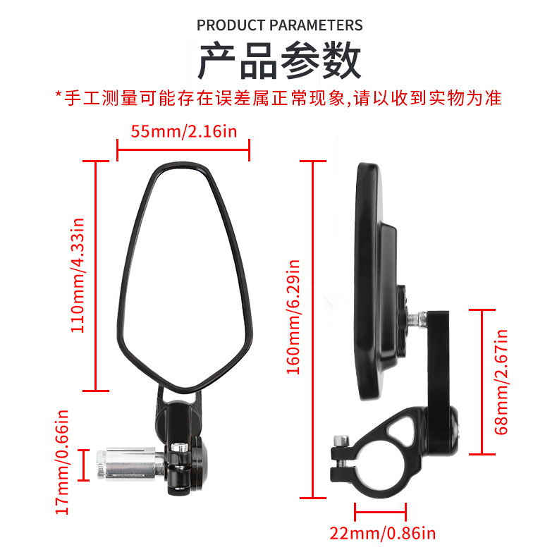 Установка мотоцикла Chunfeng Разъем руля Зеркало заднего вида Электрический автомобиль Зеркало заднего вида Светоотражающее зеркало Зеркало на руль из алюминиевого сплава