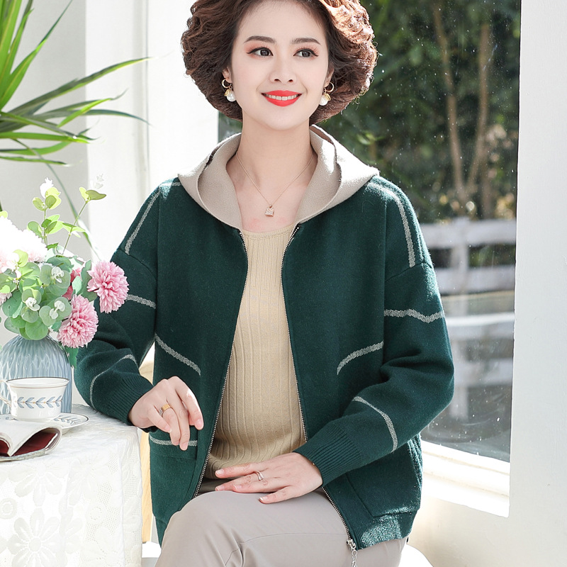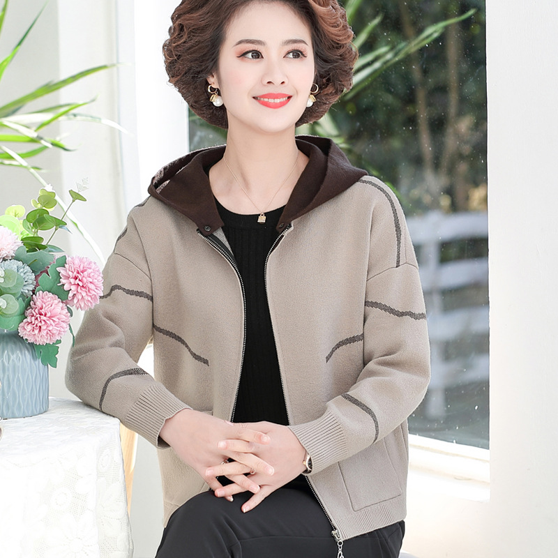 Осенний кардиган для женщин среднего возраста (40-50 лет) с капюшоном, вязаный, осенне-зимний стиль