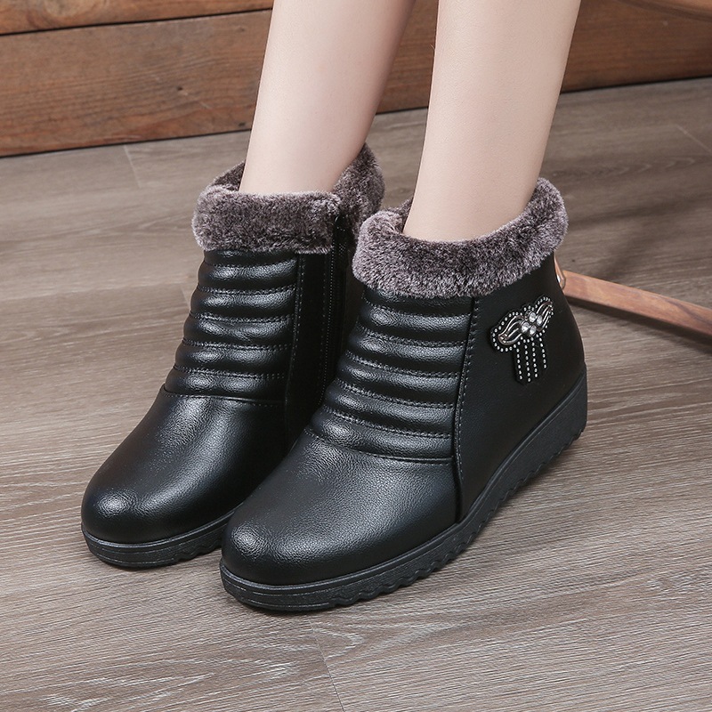 Хлопковая обувь для мам, женская зимняя теплая хлопковая обувь на флисовой подкладке, черные туфли без шнуровки, женские противоскользящие ботинки для пожилых людей с мягкой подошвой