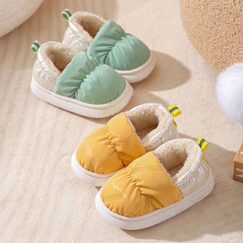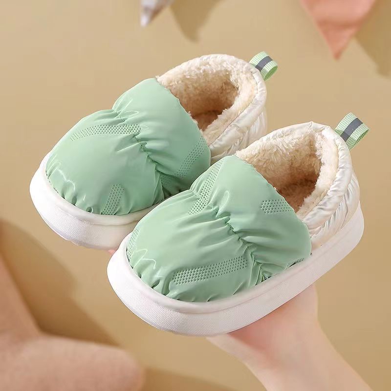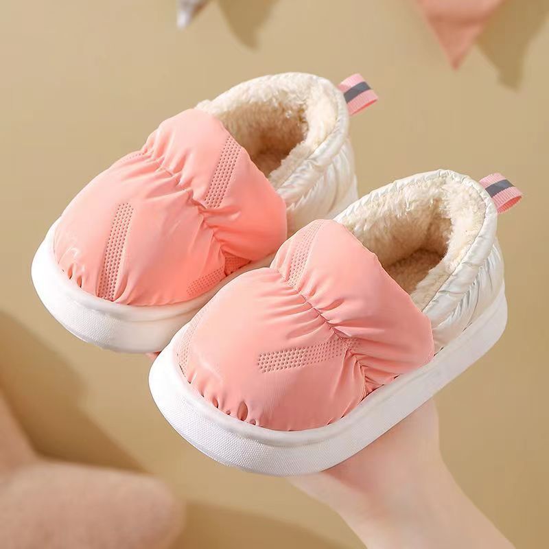 Осенне-зимние хлопковые тапочки, мужские домашние теплые плюшевые непромокаемые домашние туфли на толстой подошве, однотонная хлопковая обувь для пар, стиль для родителей и детей для девочек