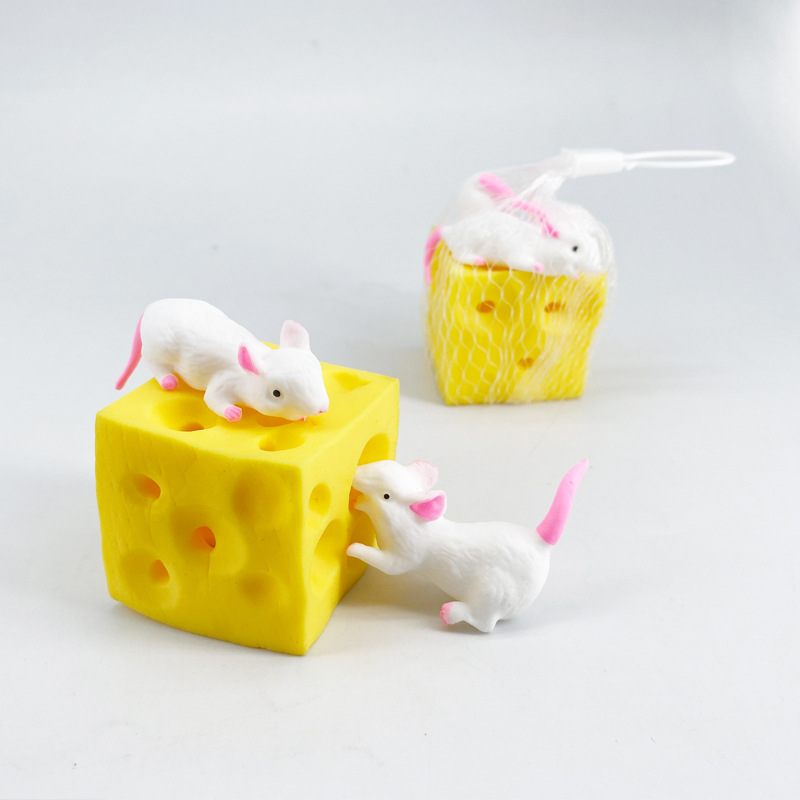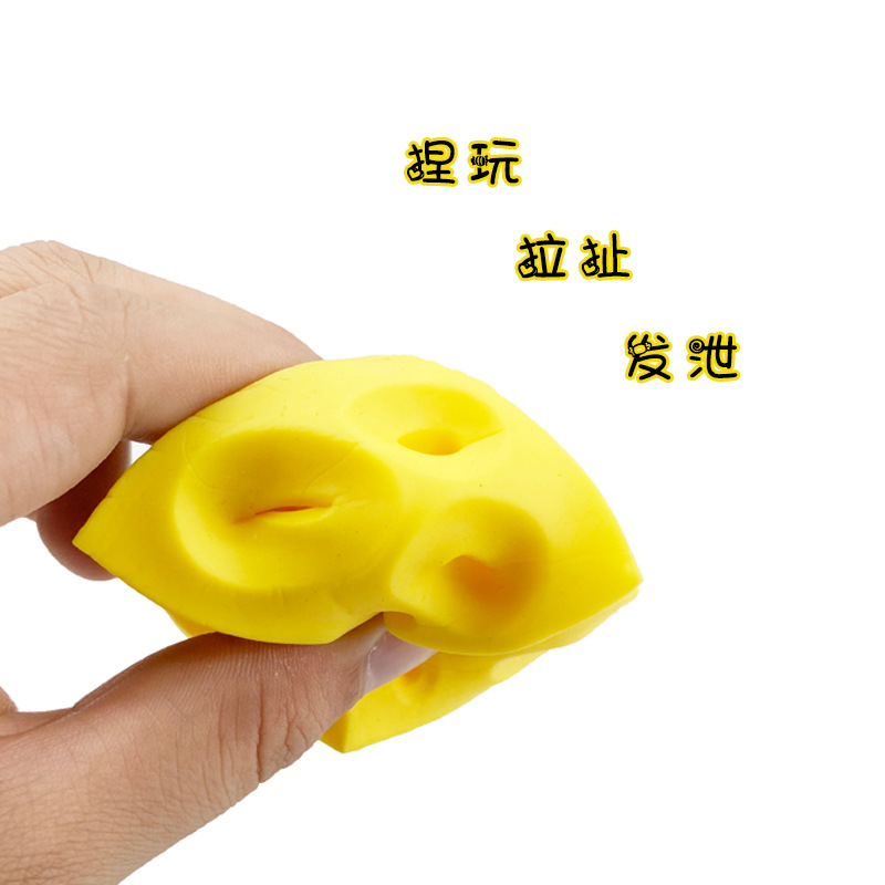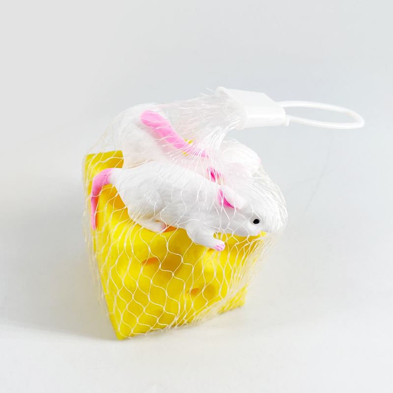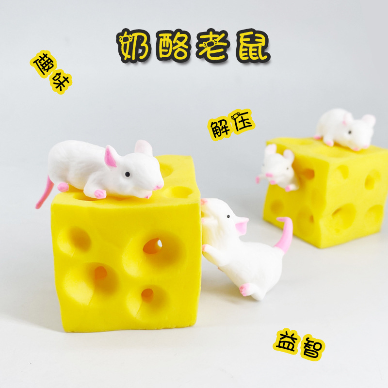 产品包含1块奶酪2只老鼠,可随意捏玩拉扯,老鼠可以钻进洞内,也可以拉出来,十分发泄解压。