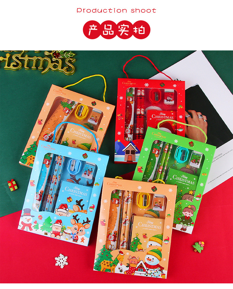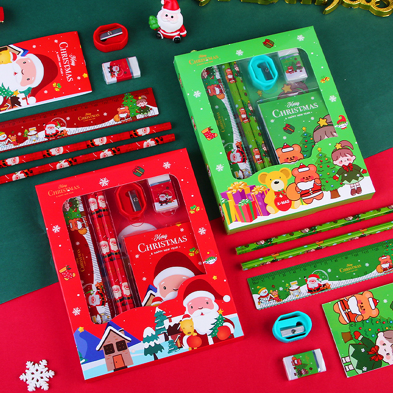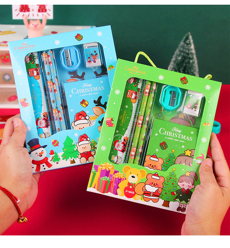 Набор канцелярских принадлежностей в подарочной упаковке, рождественский, креативный, мультяшный, 6 предметов, портативная подарочная коробка, оптом, рождественский набор для студентов в подарочной коробке