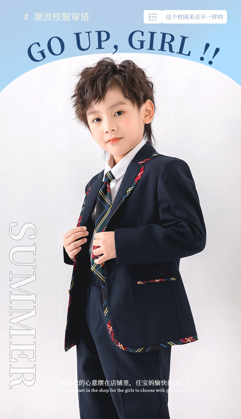 комплект из двух предметов для мальчиков; комплект из двух предметов для девочек; костюм-тройка для мальчика; комплект из трех предметов для девочек; Костюм-тройка для мальчика (рубашка с короткими рукавами); Костюм-тройка для девочки (рубашка с короткими рукавами); 6805 жилет; 6806 жилет; одинарная куртка; одинарная юбка; брюки