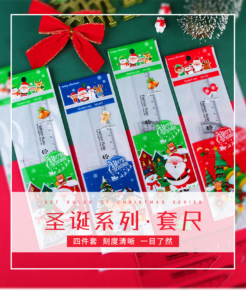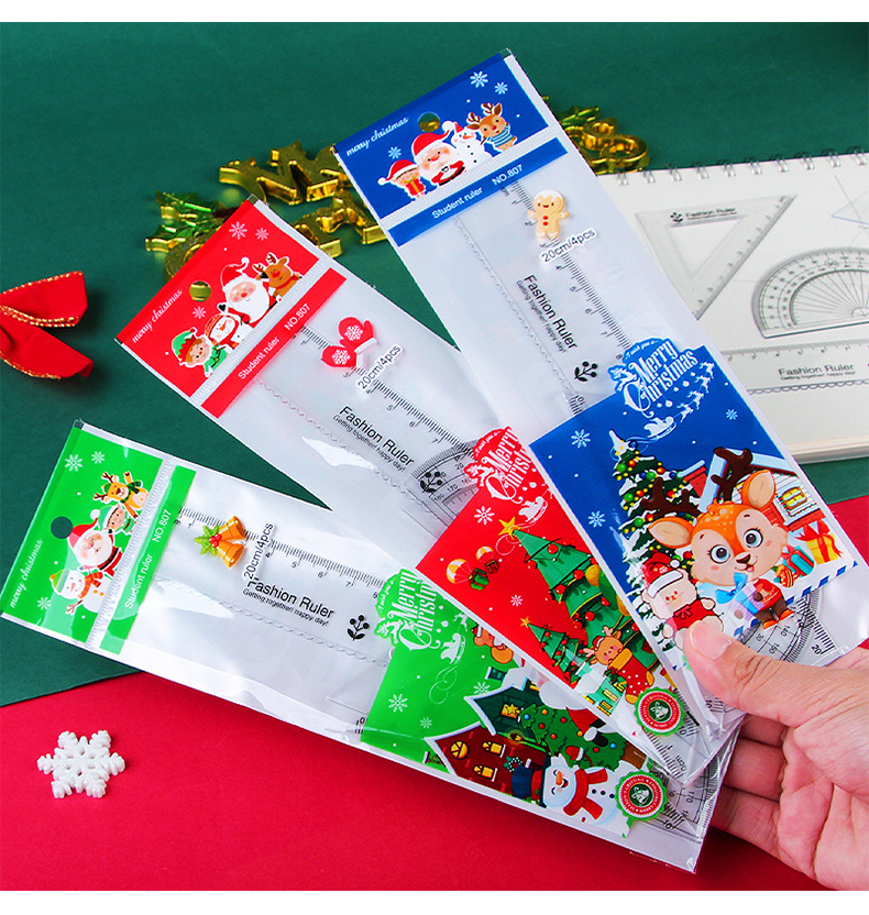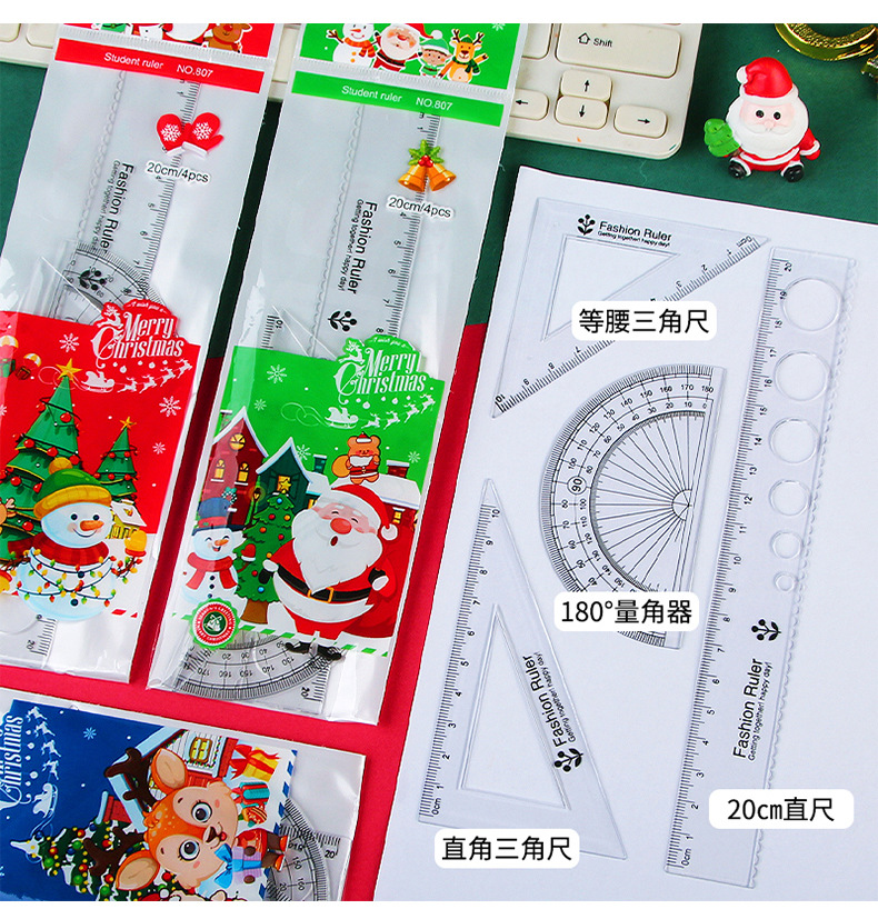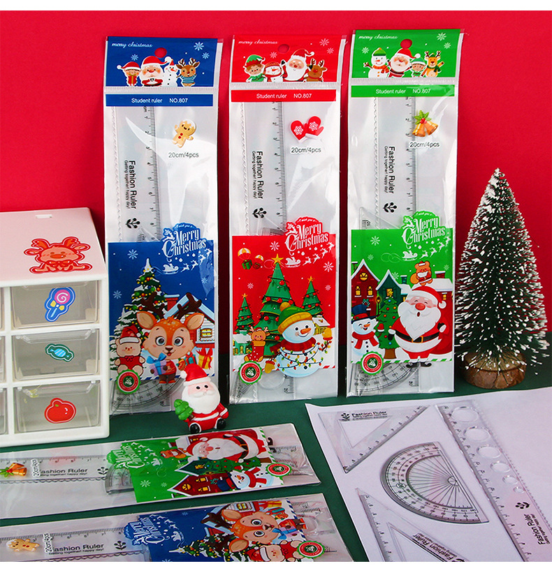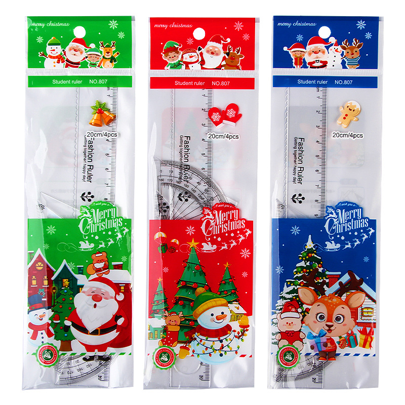 Мультфильм Рождественский набор линейка студент линейка треугольник экзамен инструмент для рисования линейка из четырех частей Рождественский подарок