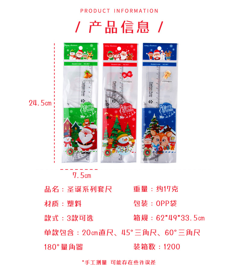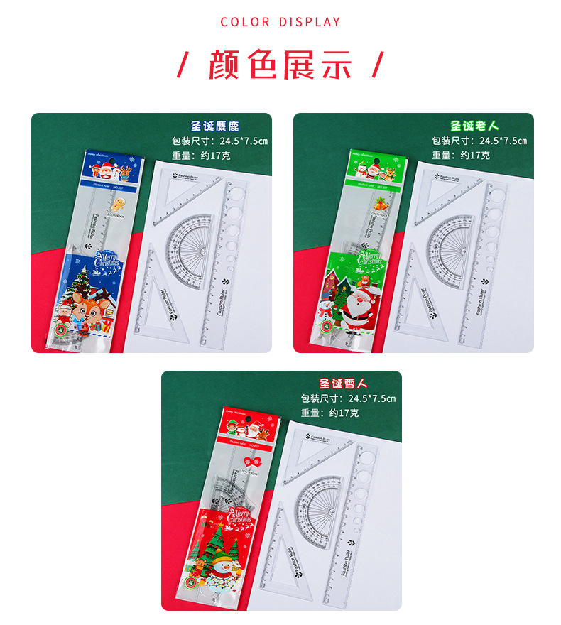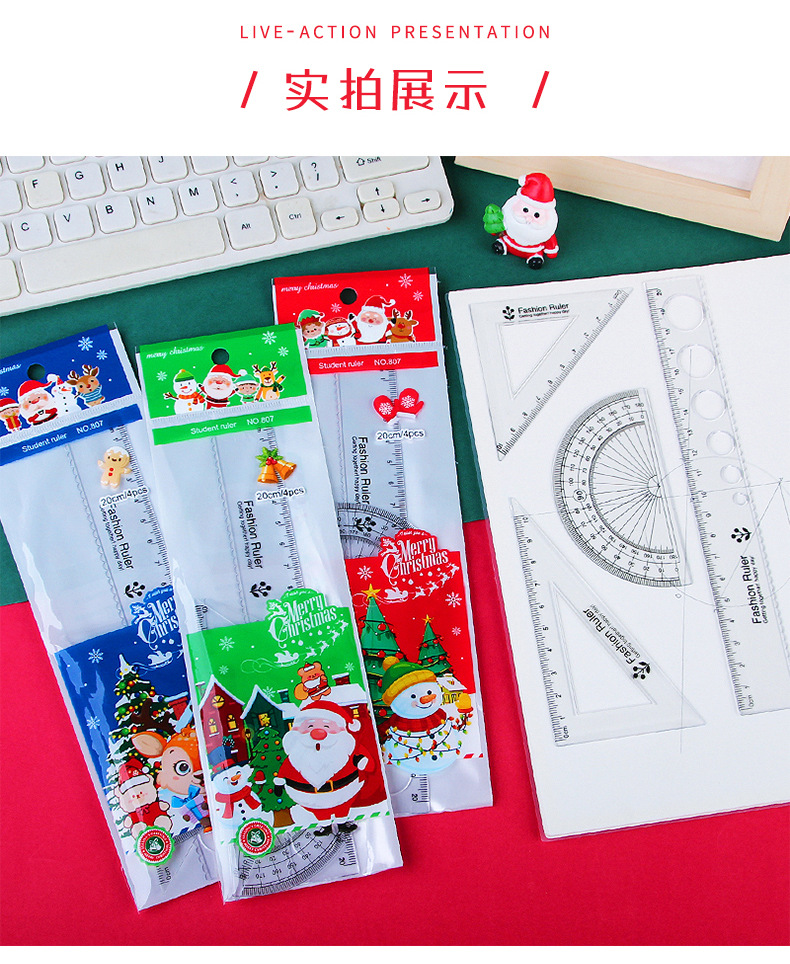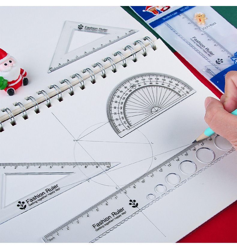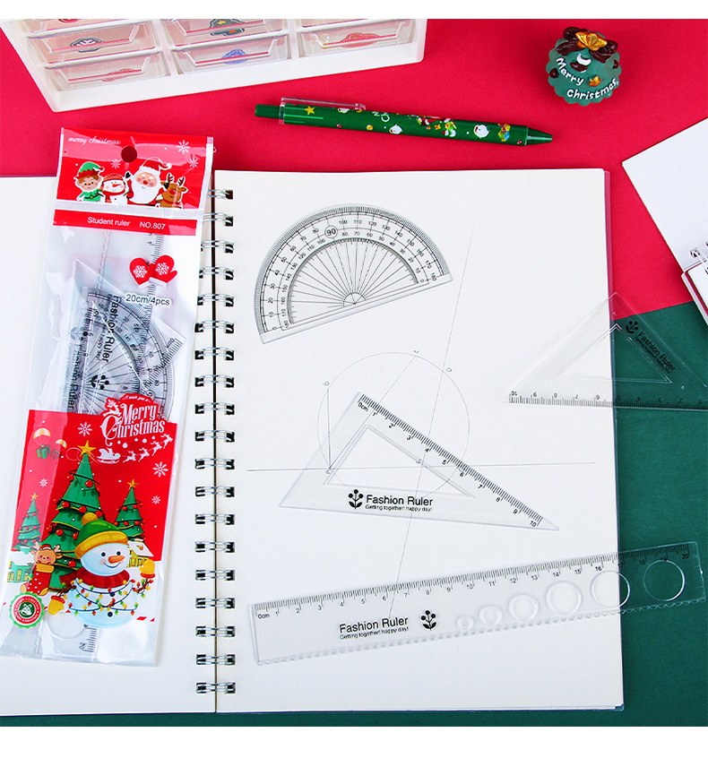 Мультфильм Рождественский набор линейка студент линейка треугольник экзамен инструмент для рисования линейка из четырех частей Рождественский подарок