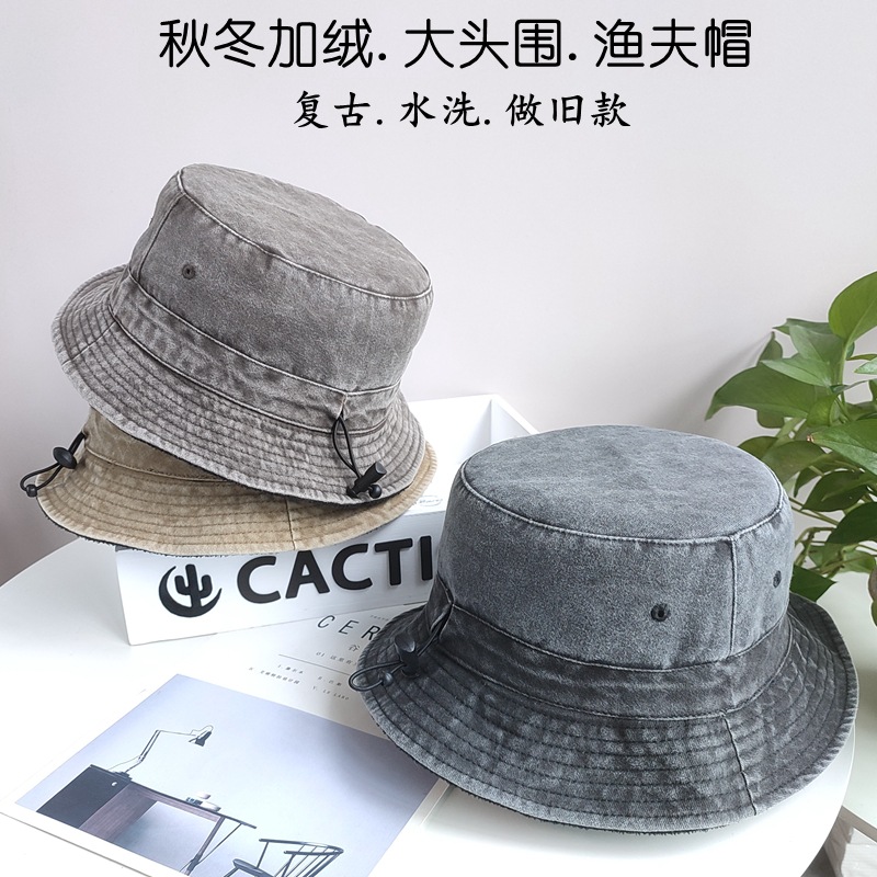 Старая стирка XXL Плюшевая шляпа рыбака для женщин Осень и Зима Супер большой размер подходит для больших головных поводков