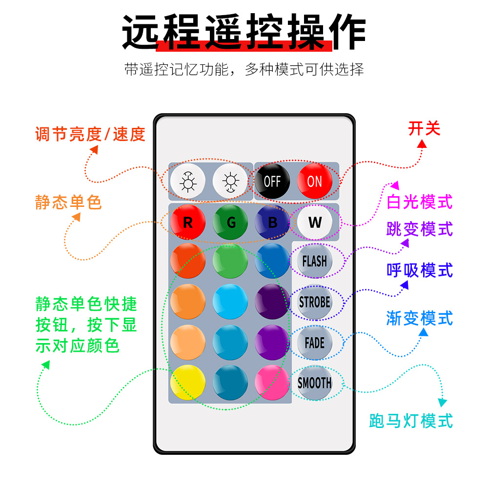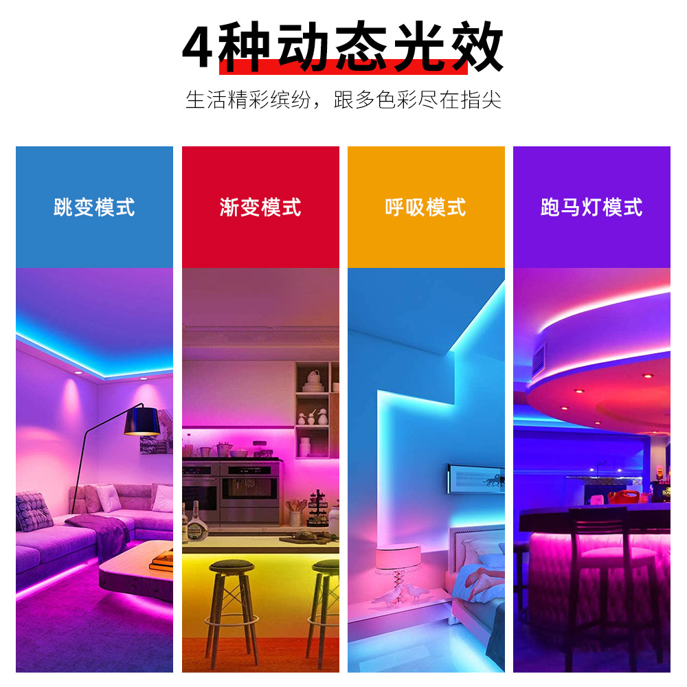 Qianrun Lighting Светодиодная лента для улицы RGB с дистанционным управлением, 2835, водонепроницаемая, высокая яркость, декоративная красочная атмосферная световая лента, 5 В