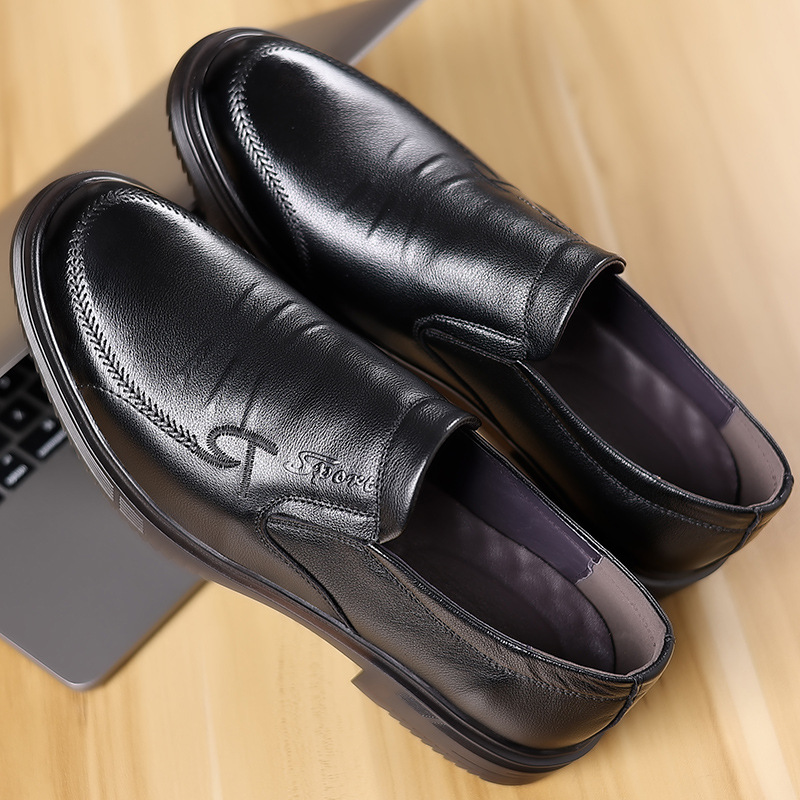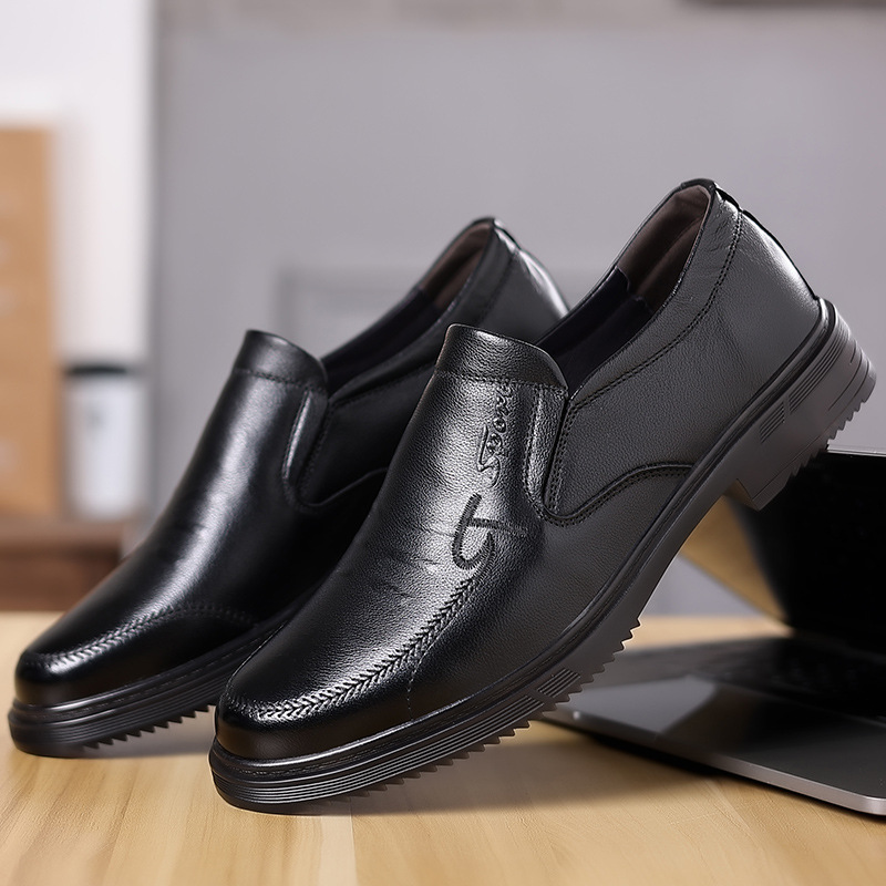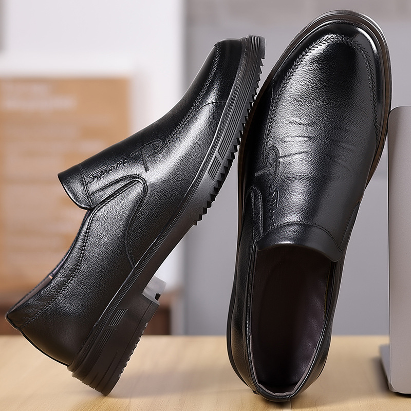 Новая весенне-осенняя мужская обувь первого слоя из воловьей кожи, деловая повседневная кожаная обувь из натуральной кожи, Мужская одиночная обувь, обувь для пап без шнуровки