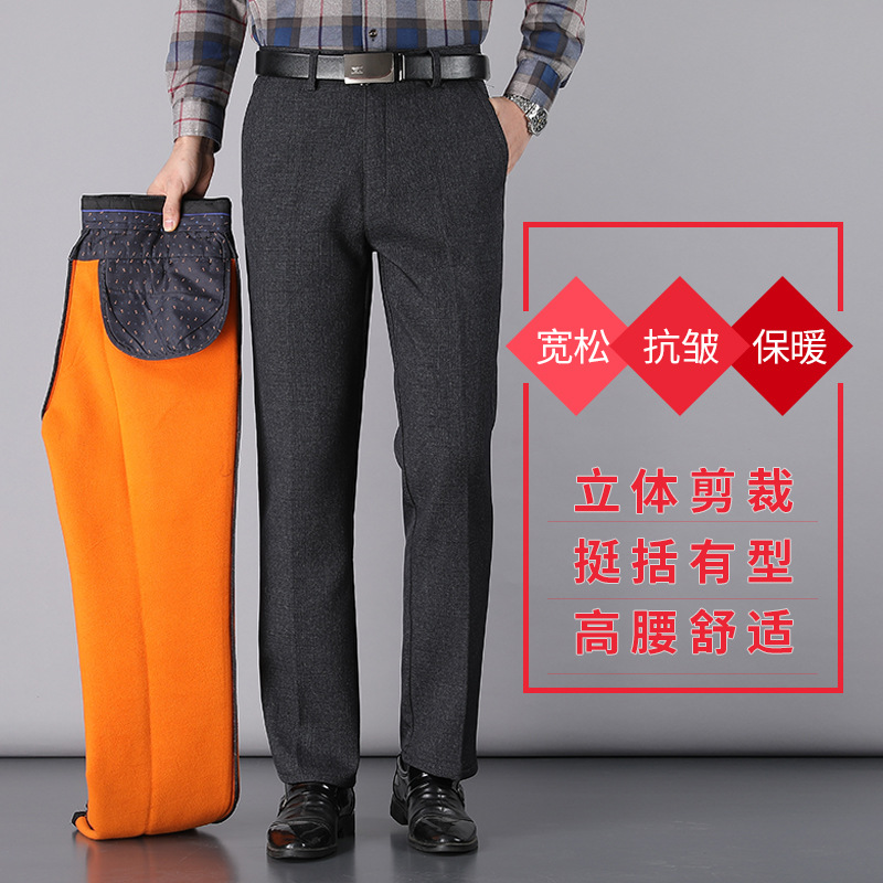 Оптовая продажа на заказ, золотой бархатный костюм, брюки на флисовой подкладке, осенне-зимние повседневные мужские брюки среднего возраста, отец среднего и пожилого возраста, длинные брюки