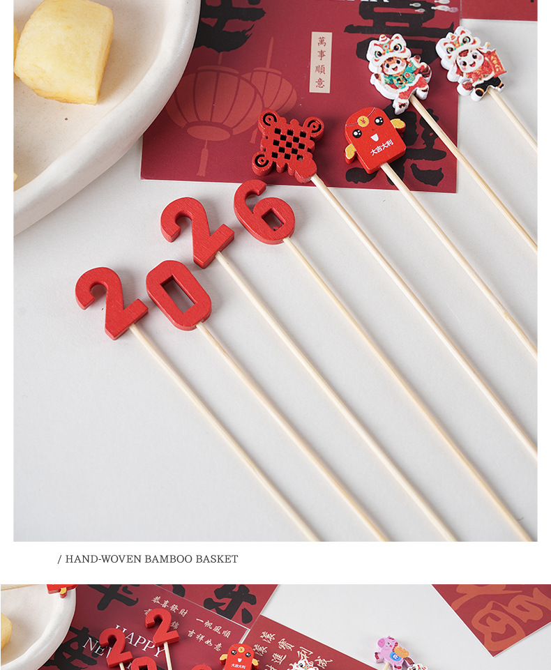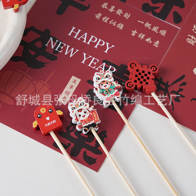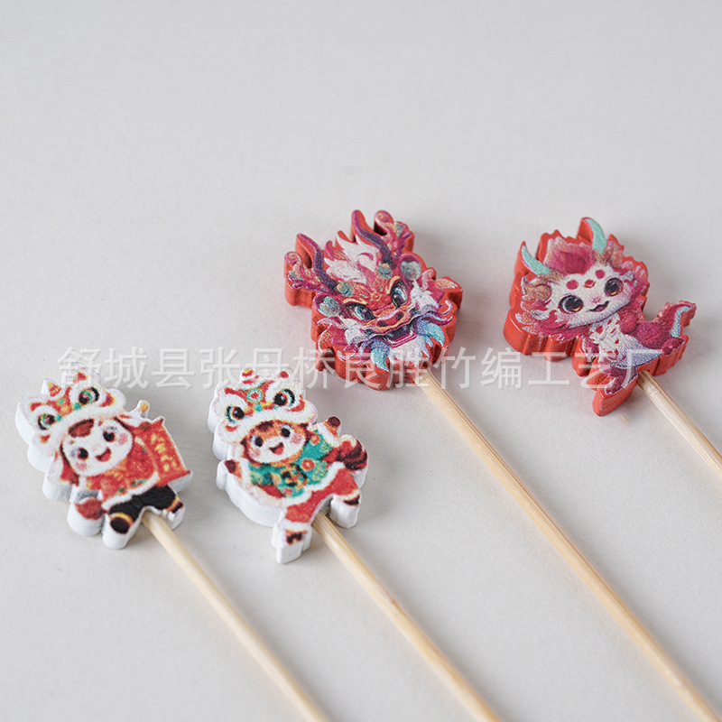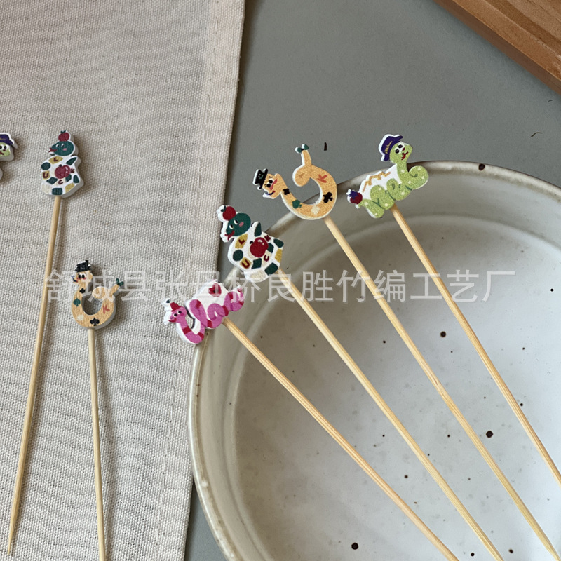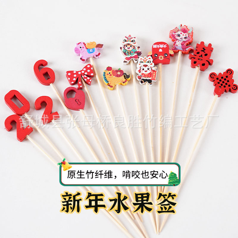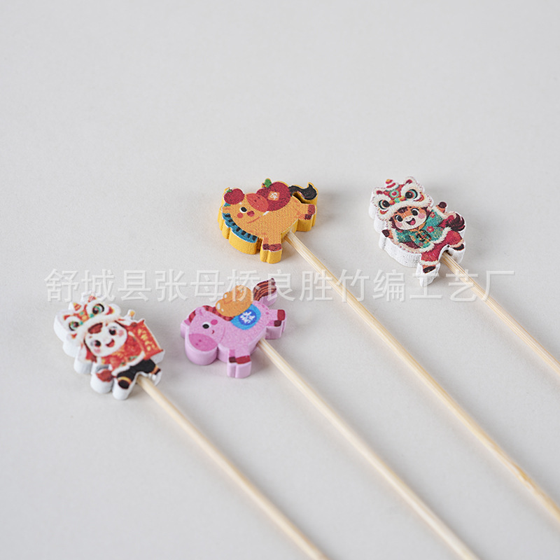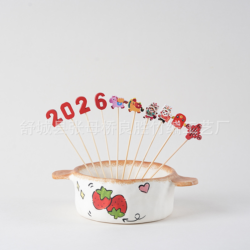 Новинка 2026: Праздничные бамбуковые шпажки для фруктов «Год Лошади», милые фигурки животных, для конфет и кандирированных фруктов, оптом от производителя