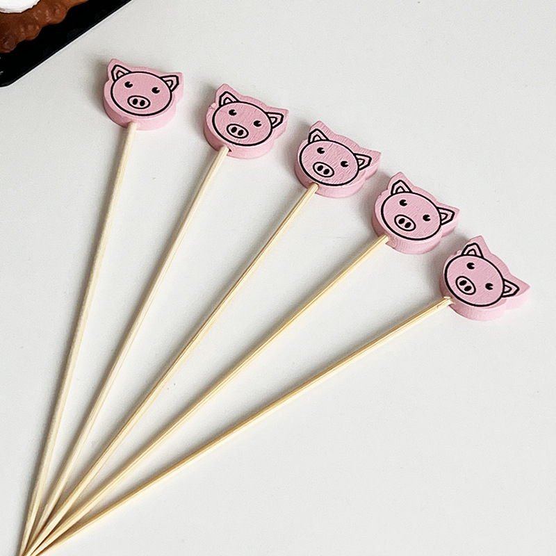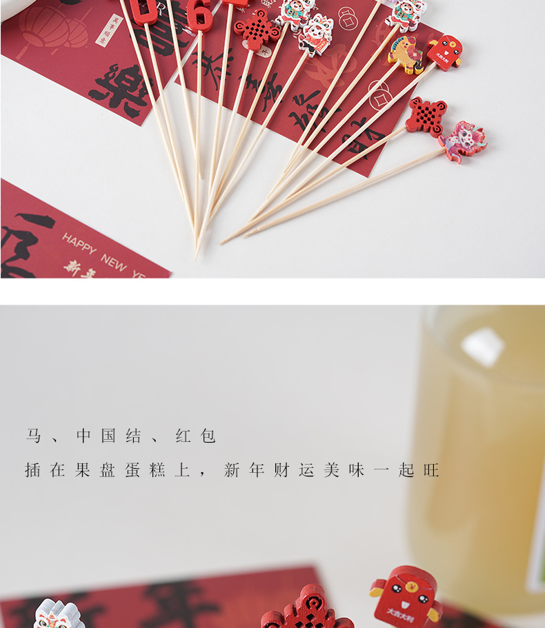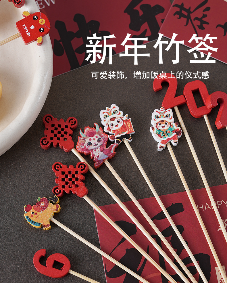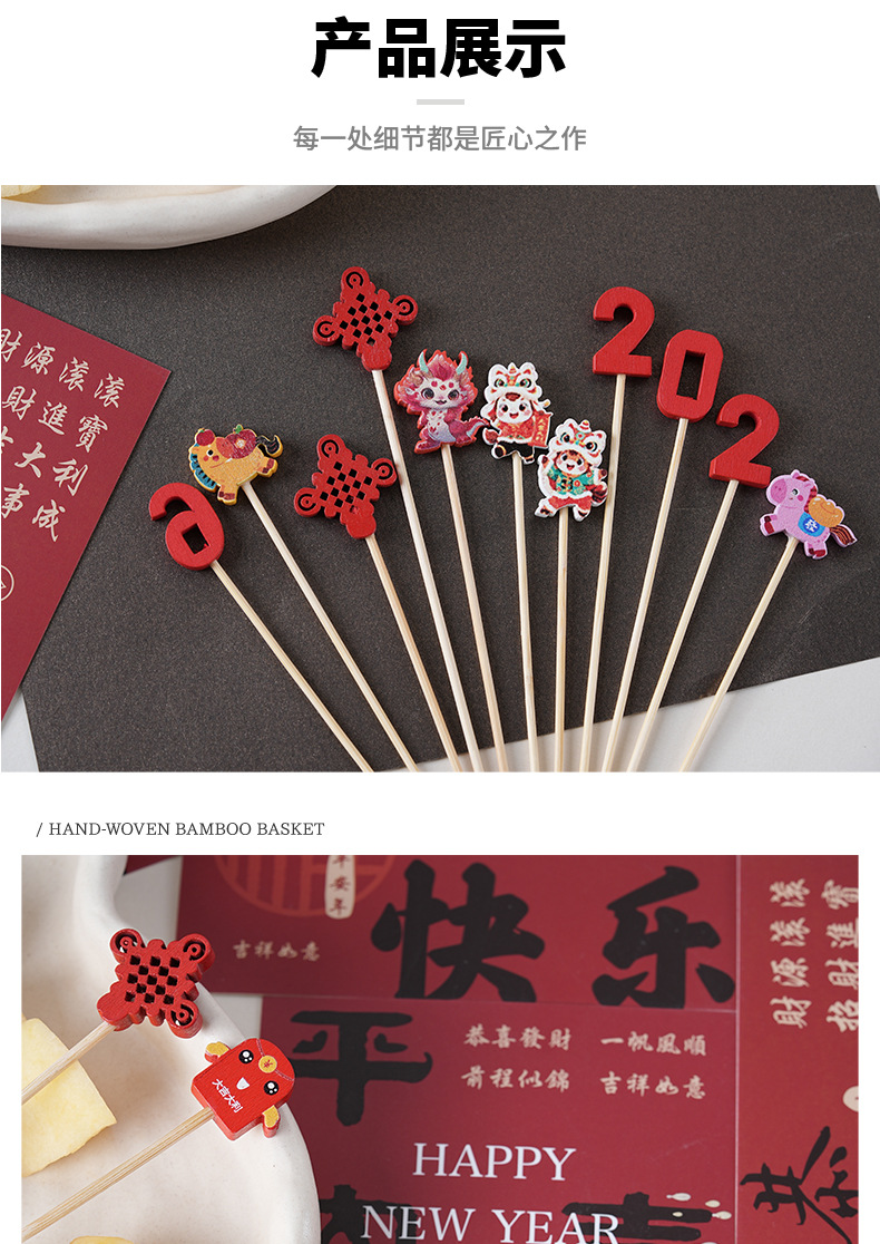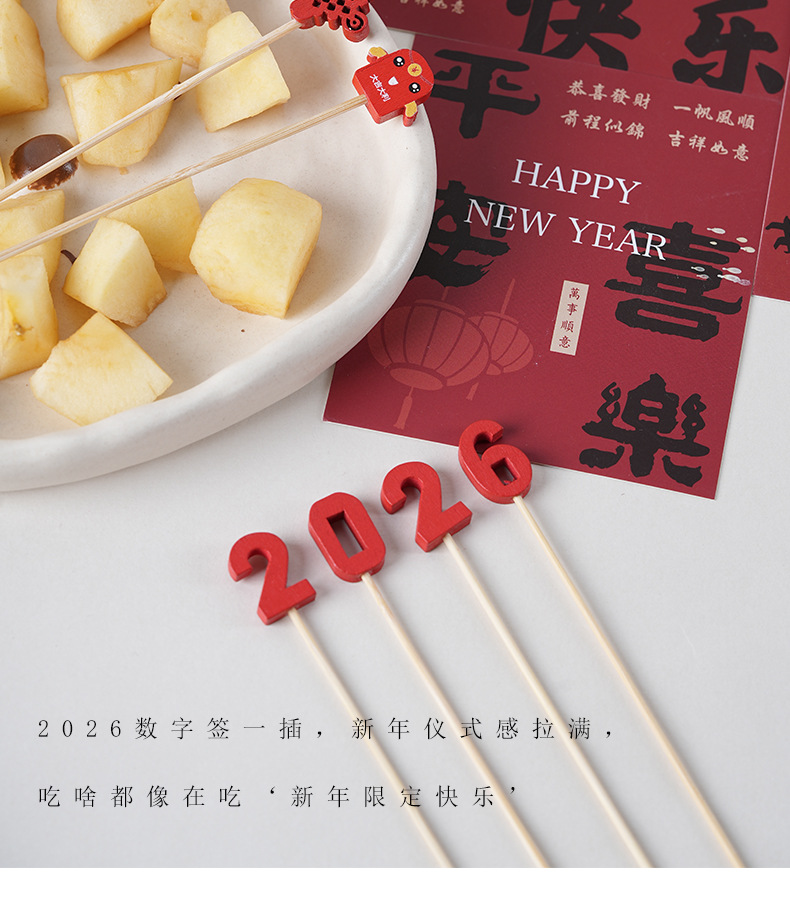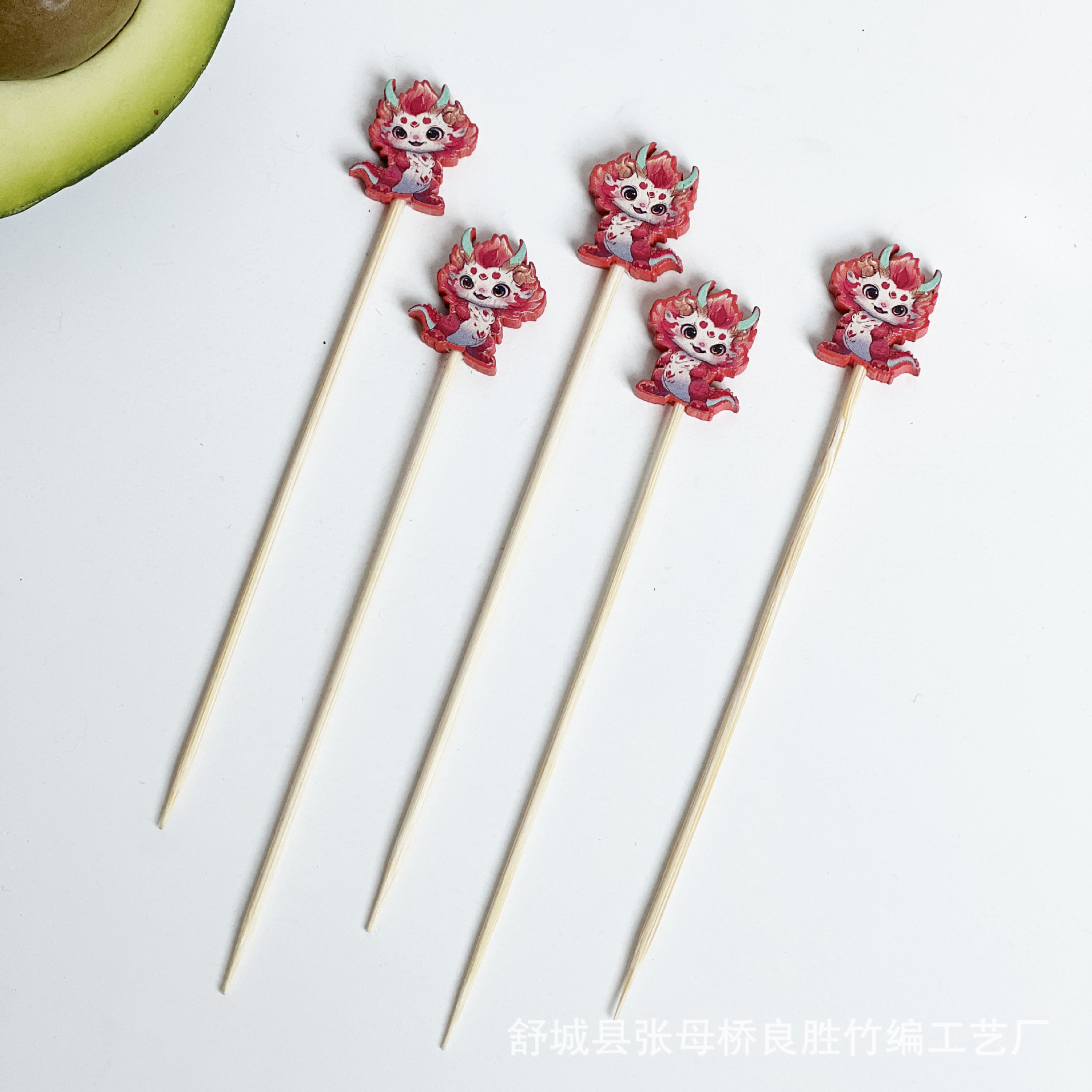 Новинка 2026: Праздничные бамбуковые шпажки для фруктов «Год Лошади», милые фигурки животных, для конфет и кандирированных фруктов, оптом от производителя