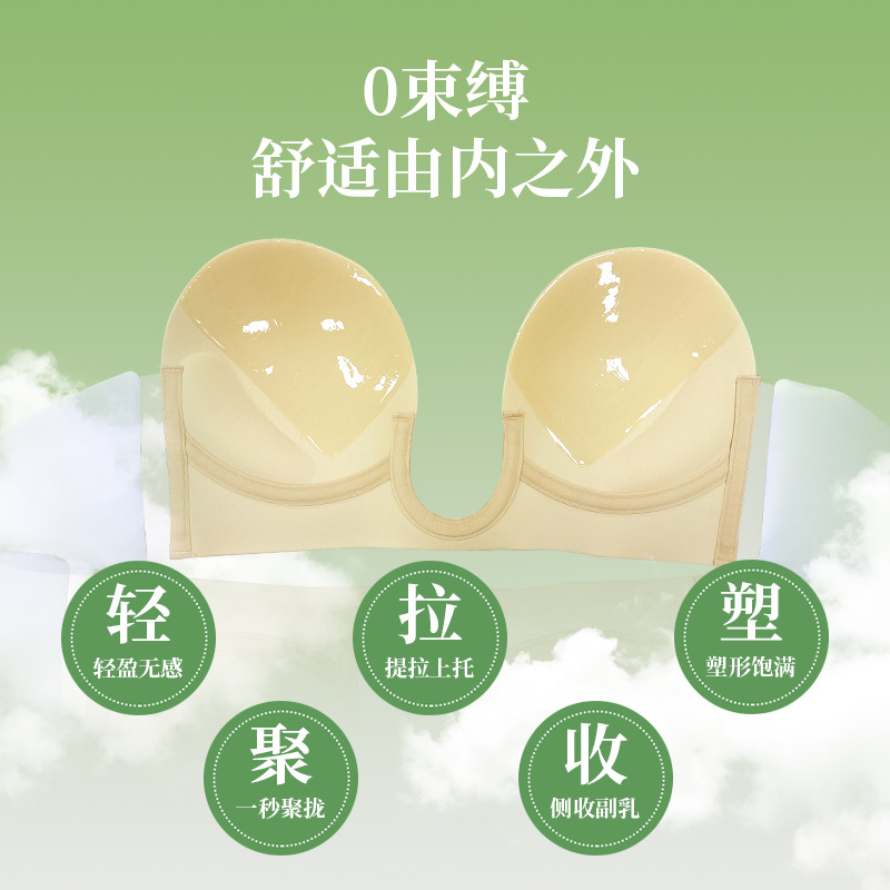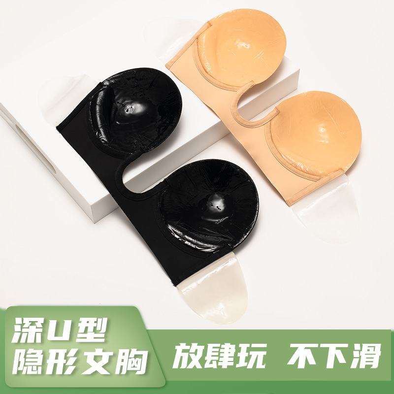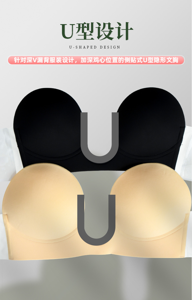 Трансграничная глубокая U-образная невидимая бесшовная лифчик-бандо с антипротивоскользящими боковыми вставками и секретным креплением для груди.