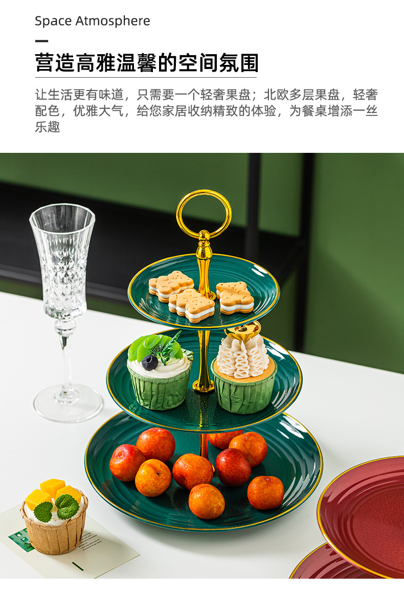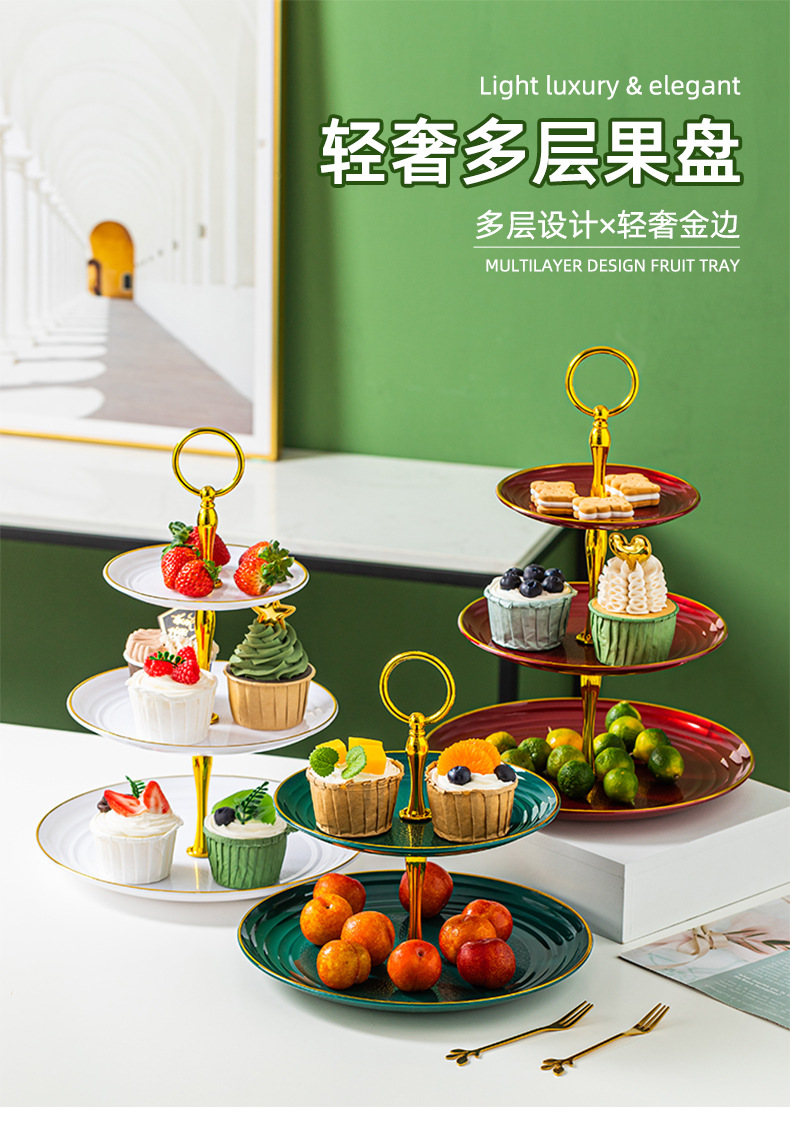 Фруктовая тарелка в европейском стиле Трехслойный диспенсер Пластиковая тарелка для сухофруктов Тарелка для свадебного торта Пномпень Фруктовая тарелка Легкая Роскошная подставка для торта