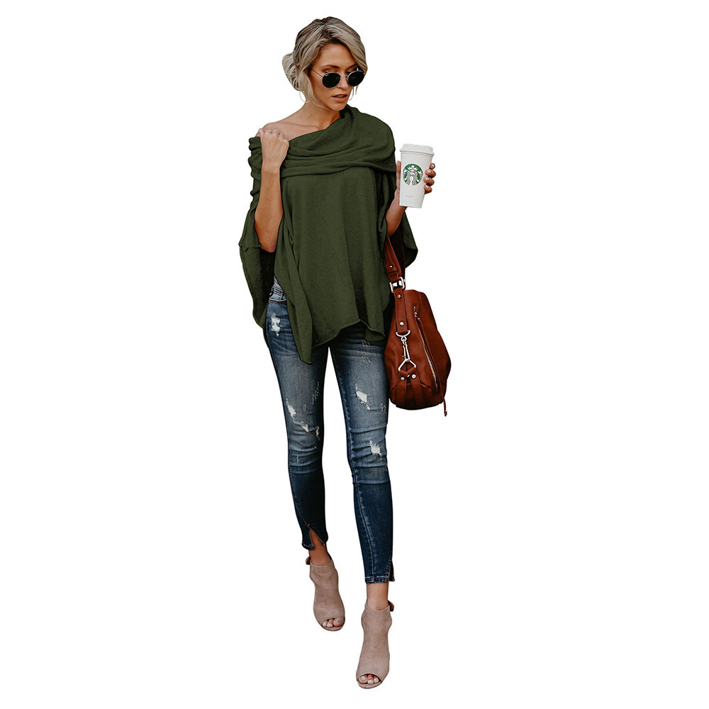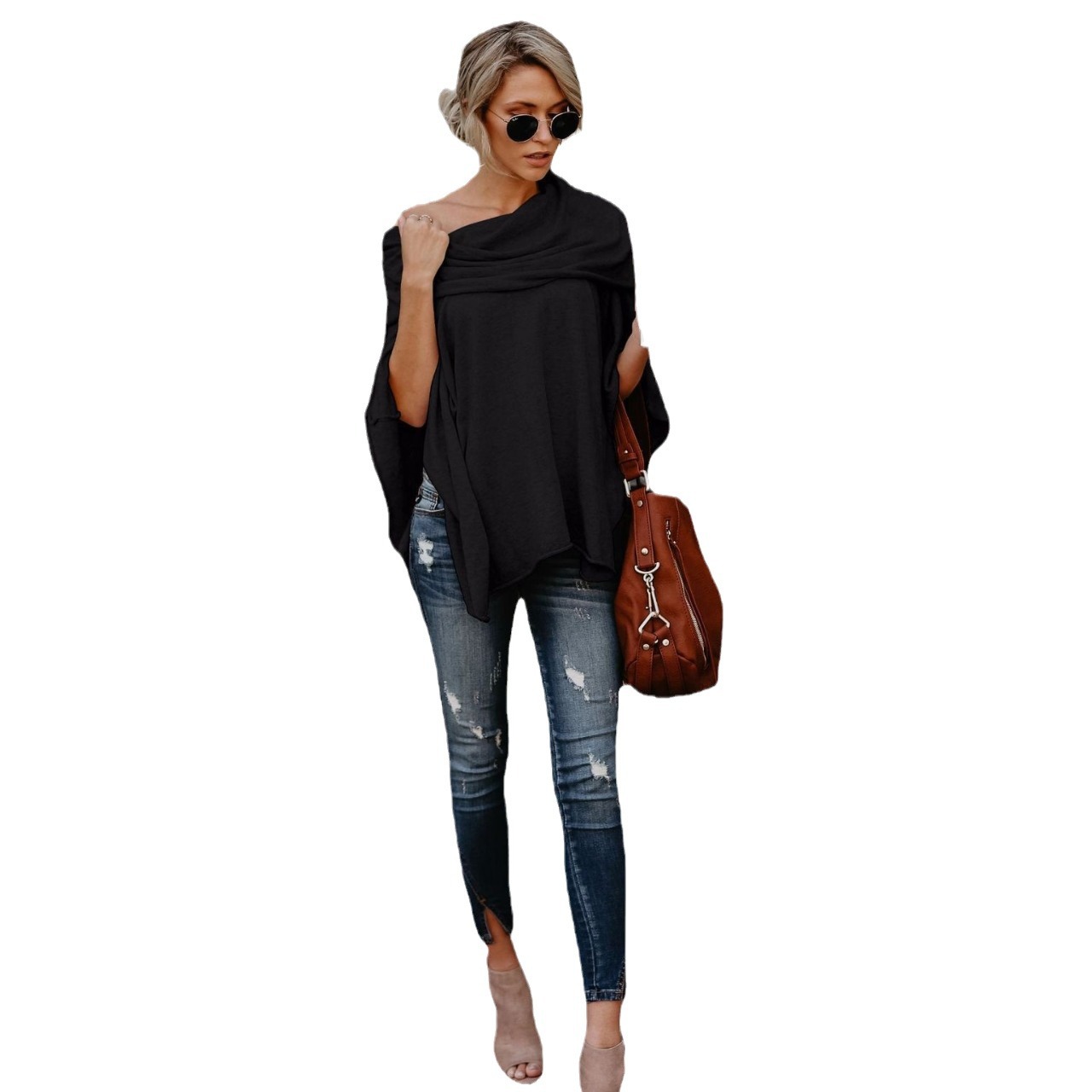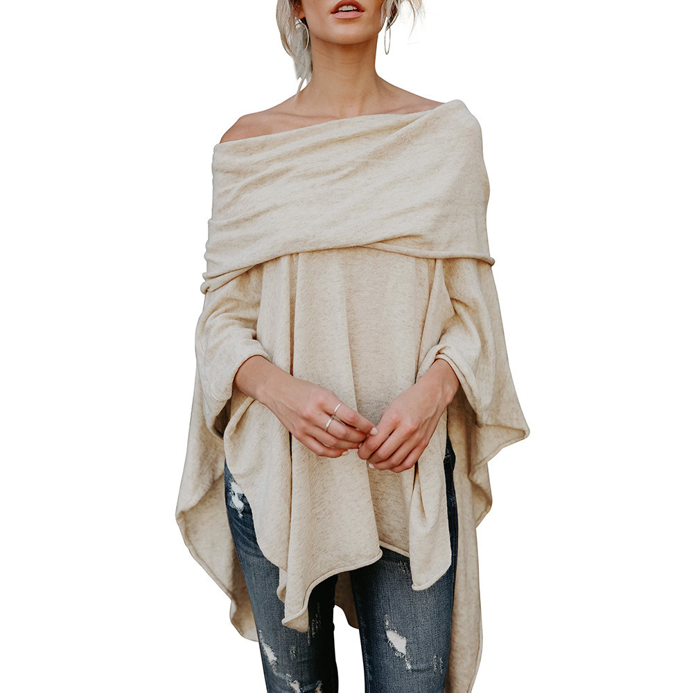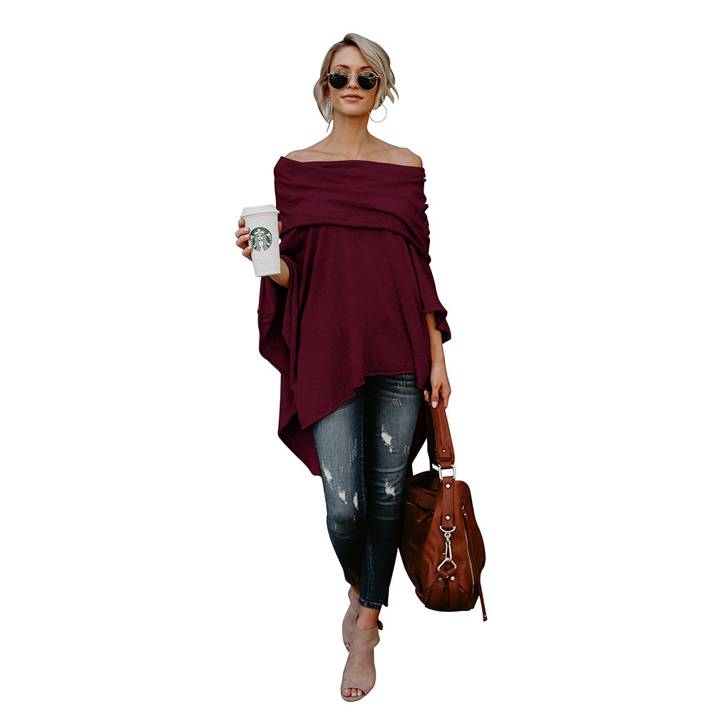 Универсальный женский топ с открытыми плечами в Европе и Америке, Универсальный женский трикотаж больших размеров, рубашка с асимметричным подолом, рубашка с открытыми плечами, Ночная одежда