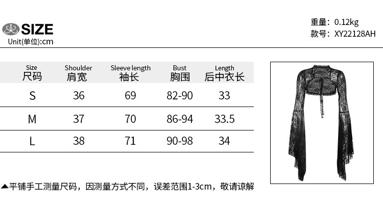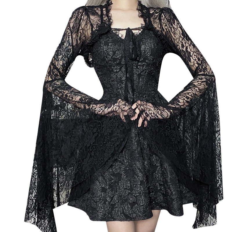 XY22128 новый готический стиль, кружевной кардиган с рукавами-трубой, небольшой жилет, топ, женская темная блузка в европейском и американском стиле